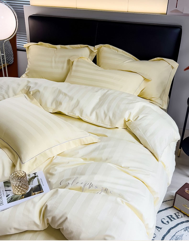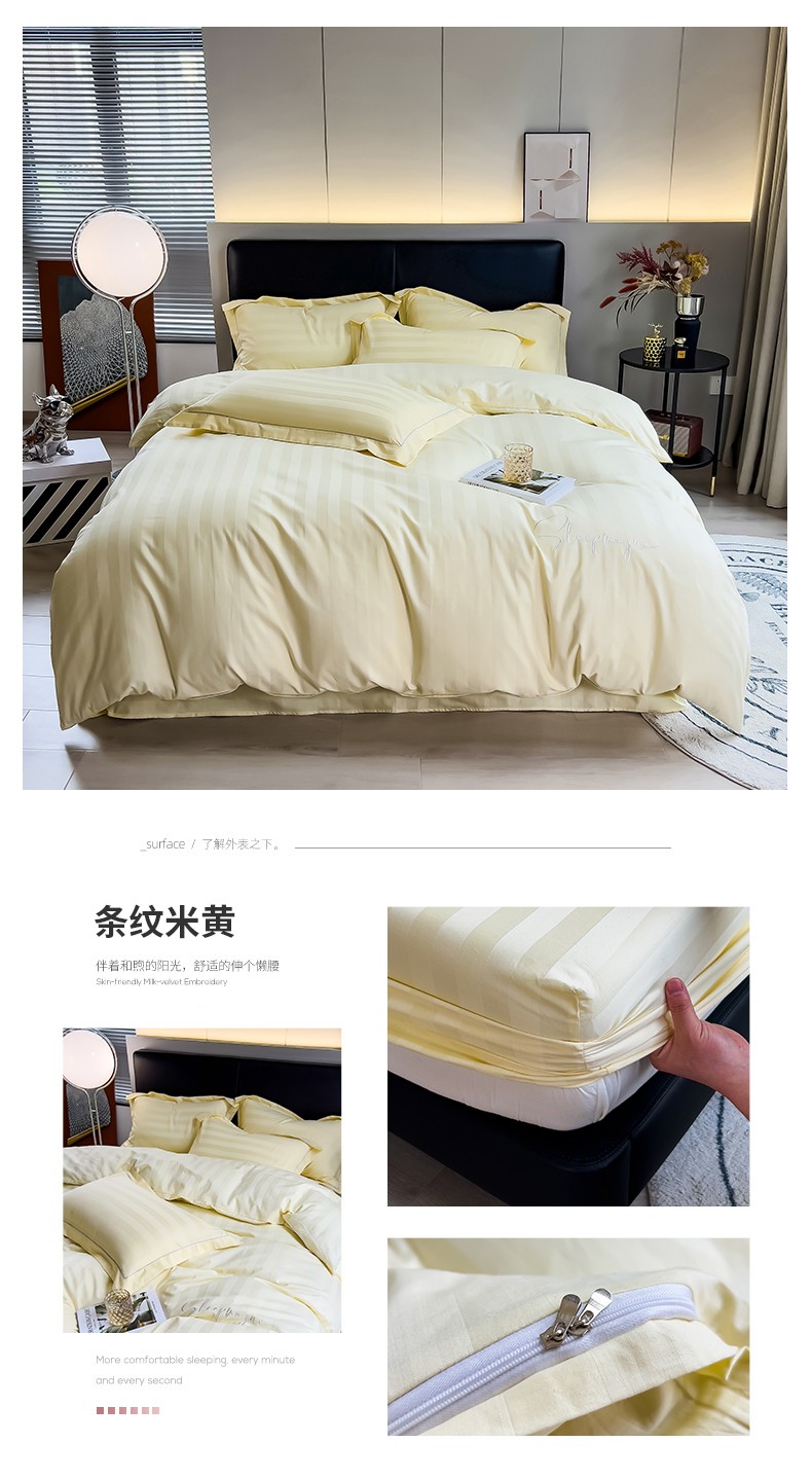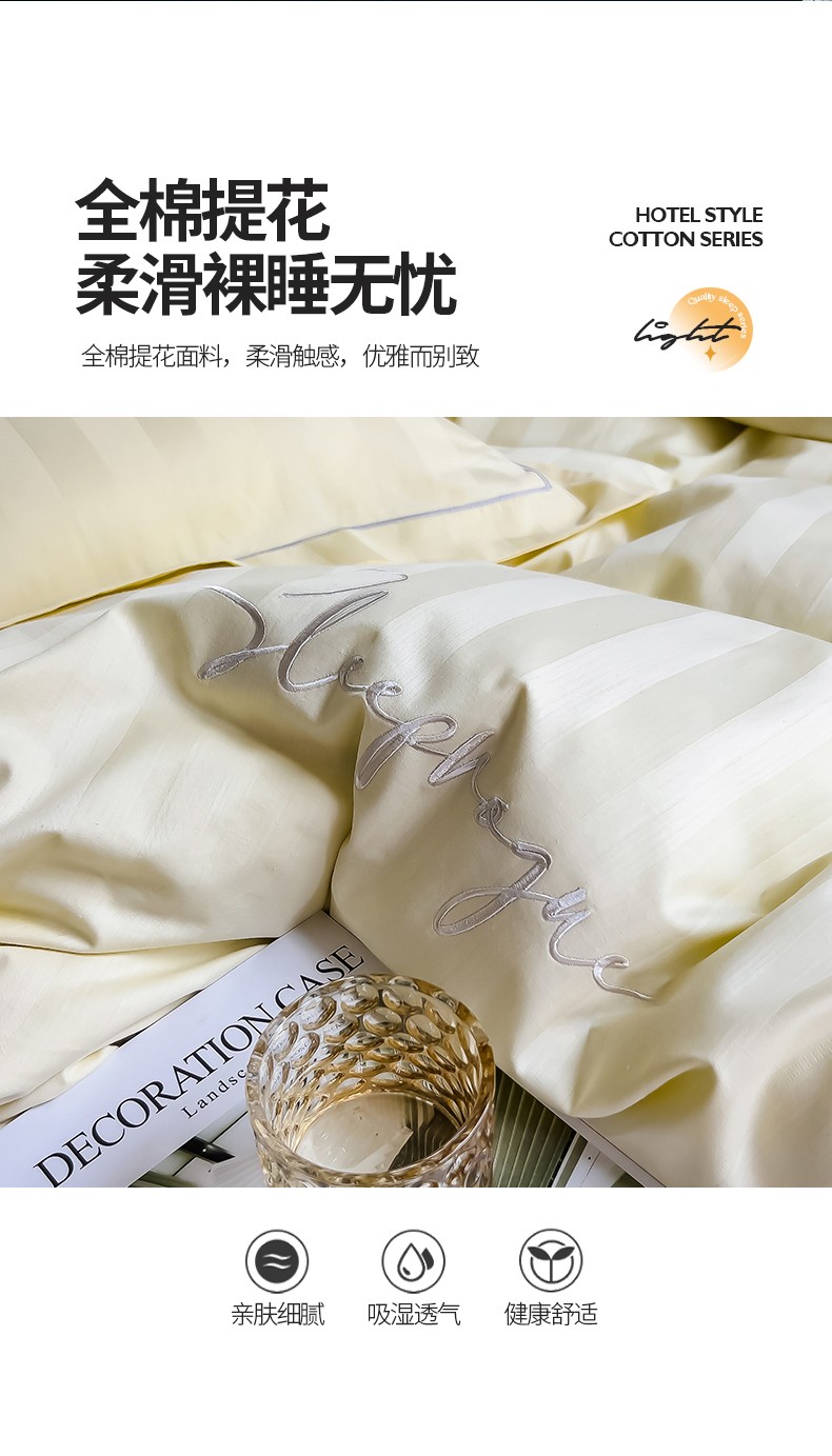 当前位置: 91家纺网 > 商品网购 > 床品套件 > 四件套 > 长绒棉四件套 > 慕尚 2025新款60支长绒棉提花条纹系列四件套 条纹米黄