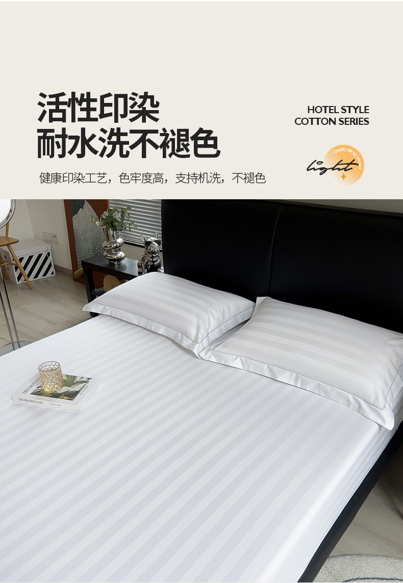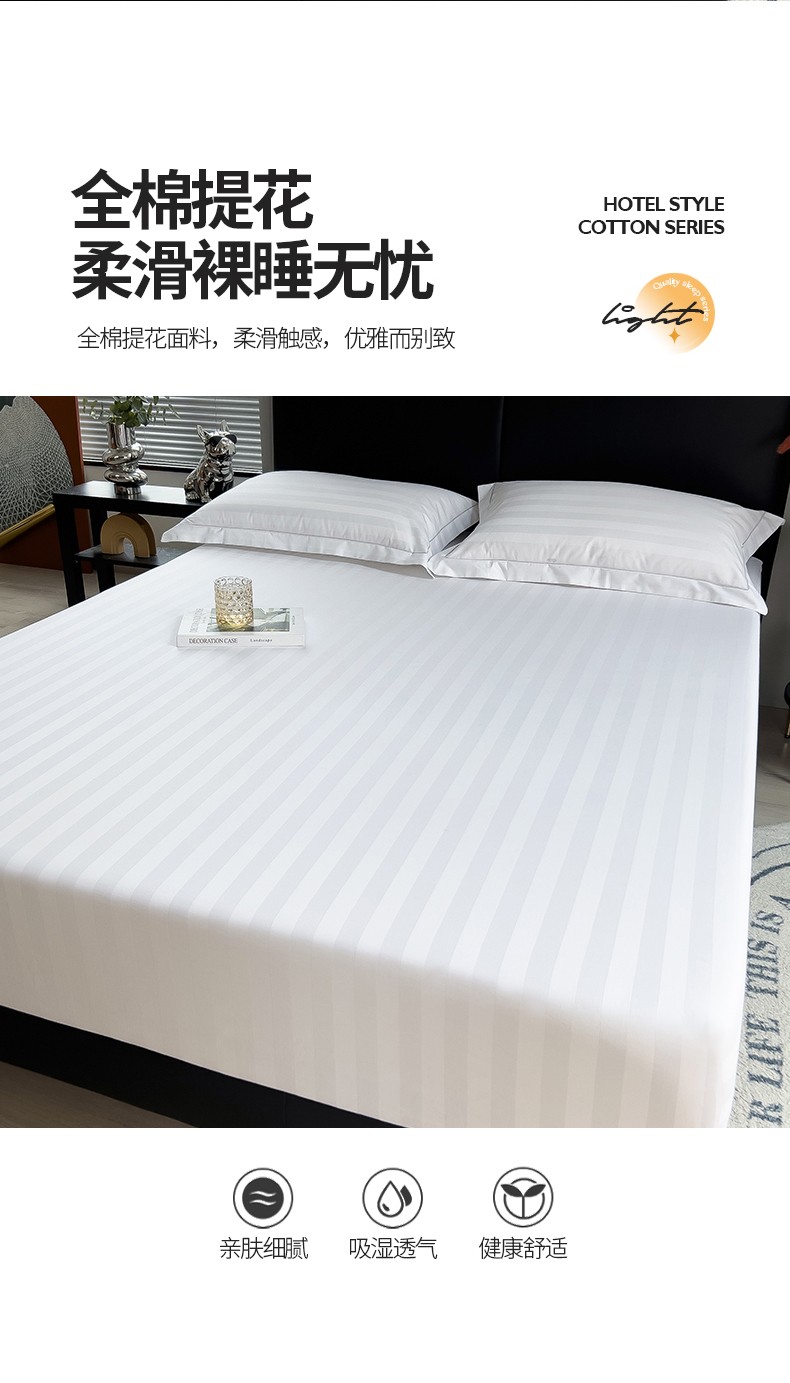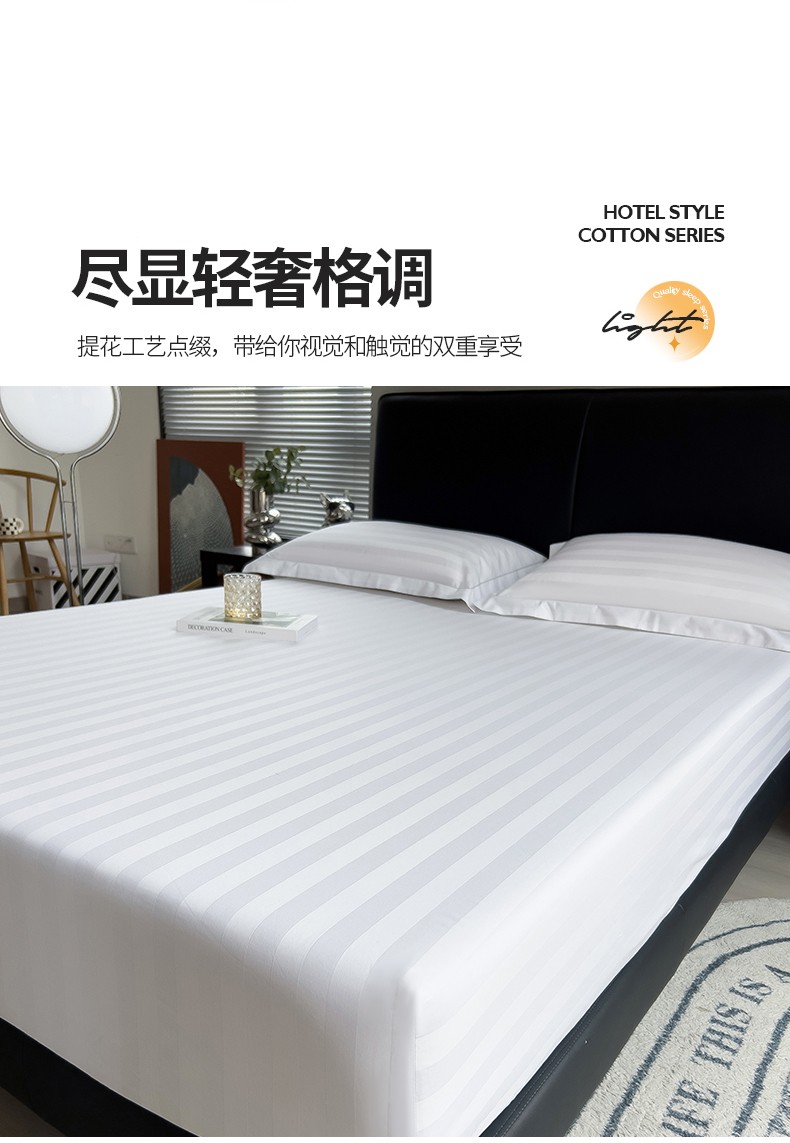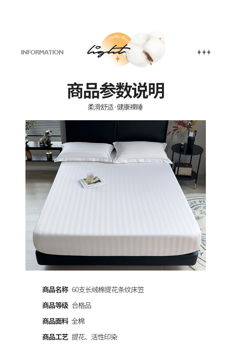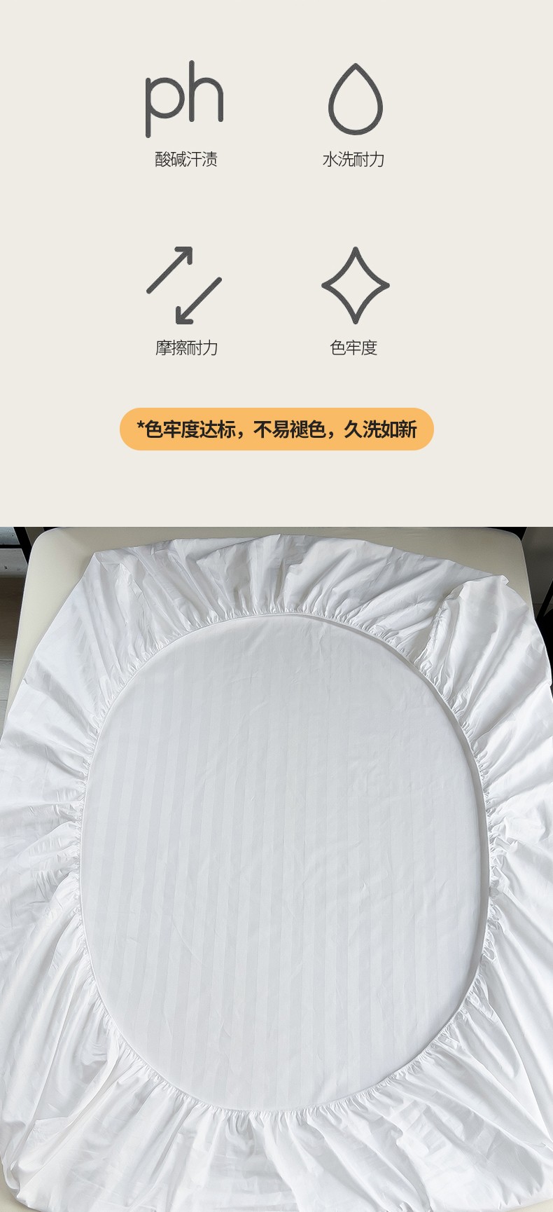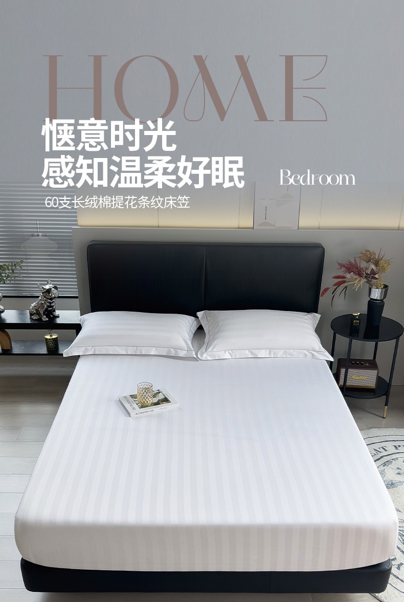 商品名称:慕尚 2025新款60支长绒棉提花条纹系列单品床笠 条纹白色