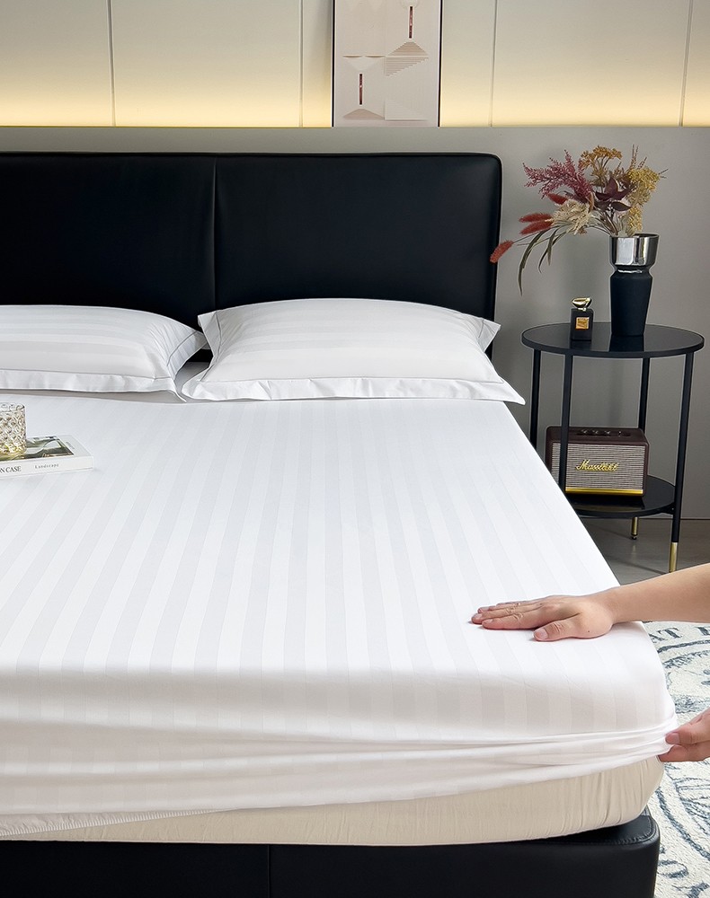 慕尚 2025新款60支长绒棉提花条纹系列单品床笠 条纹白色