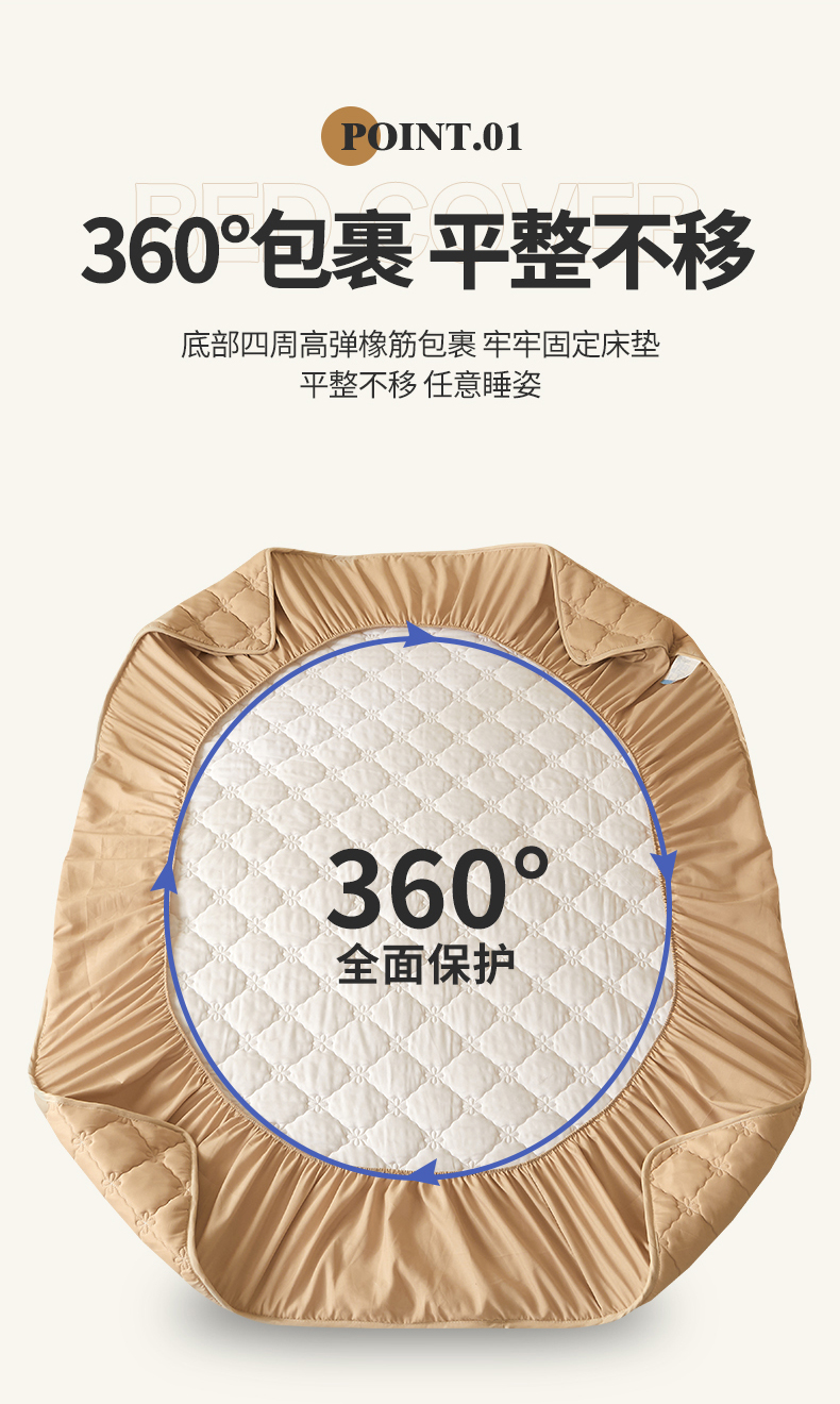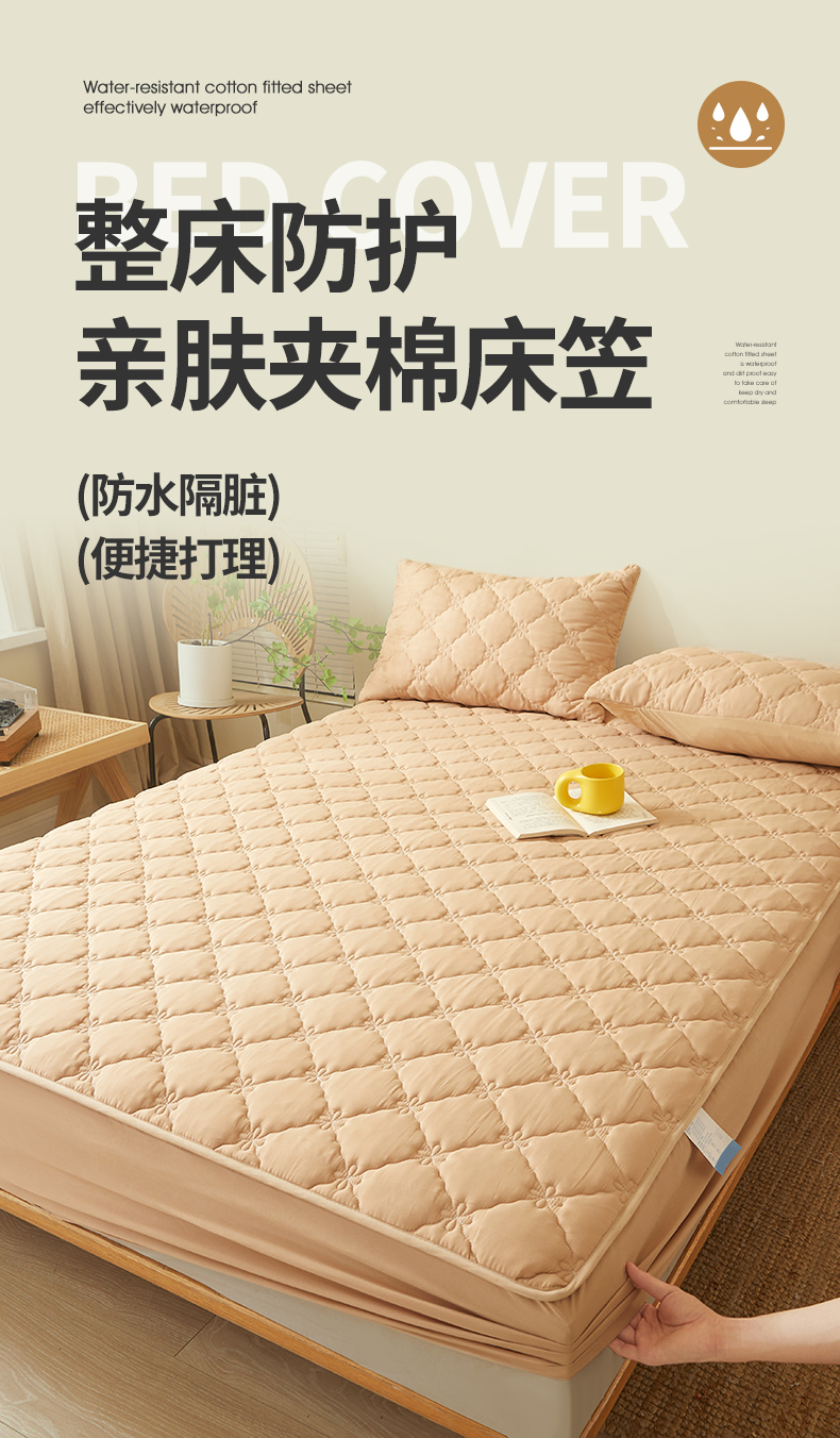 乐逸2023新款亲肤夹棉防水床笠 花悦防水驼