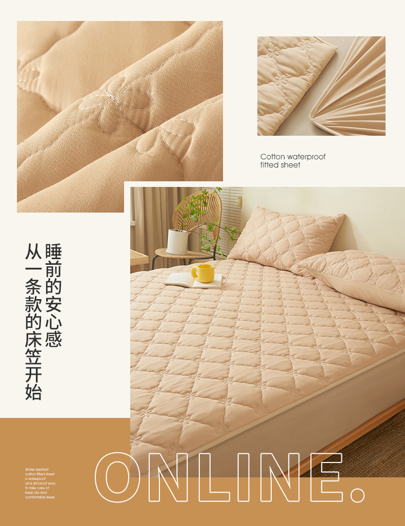 商品名称:乐逸2023新款亲肤夹棉防水床笠 花悦防水驼