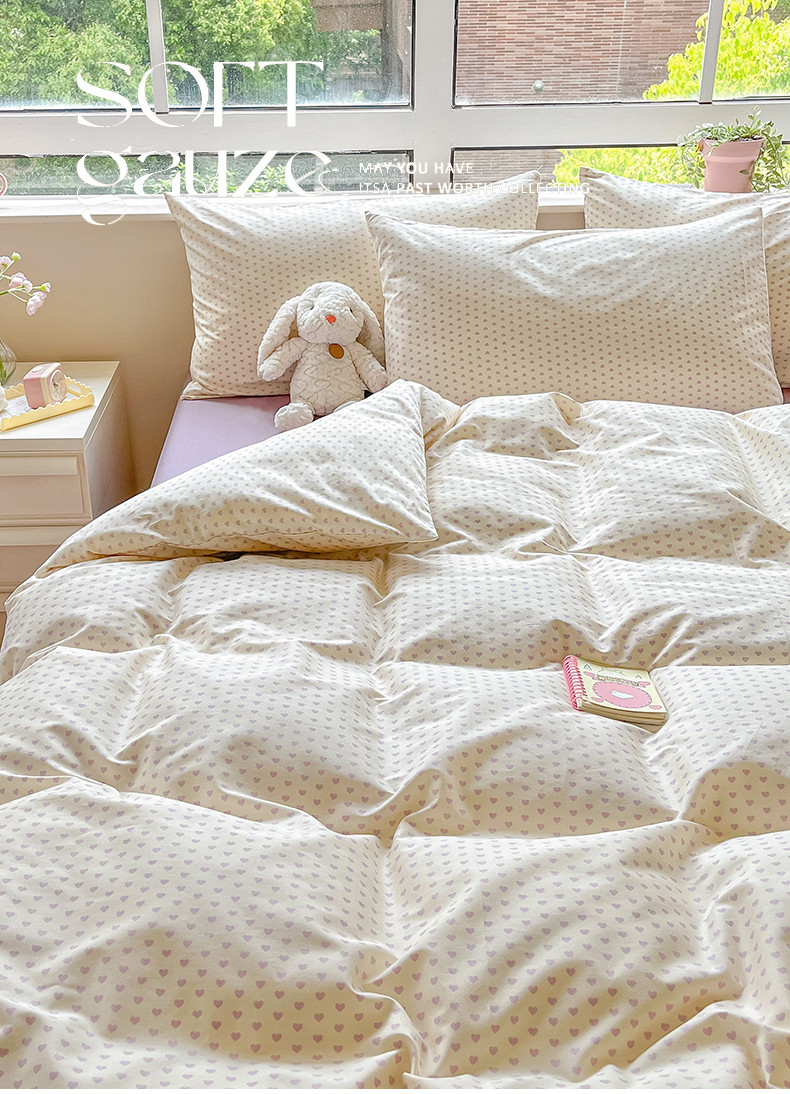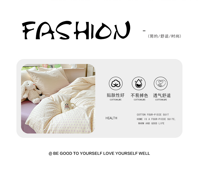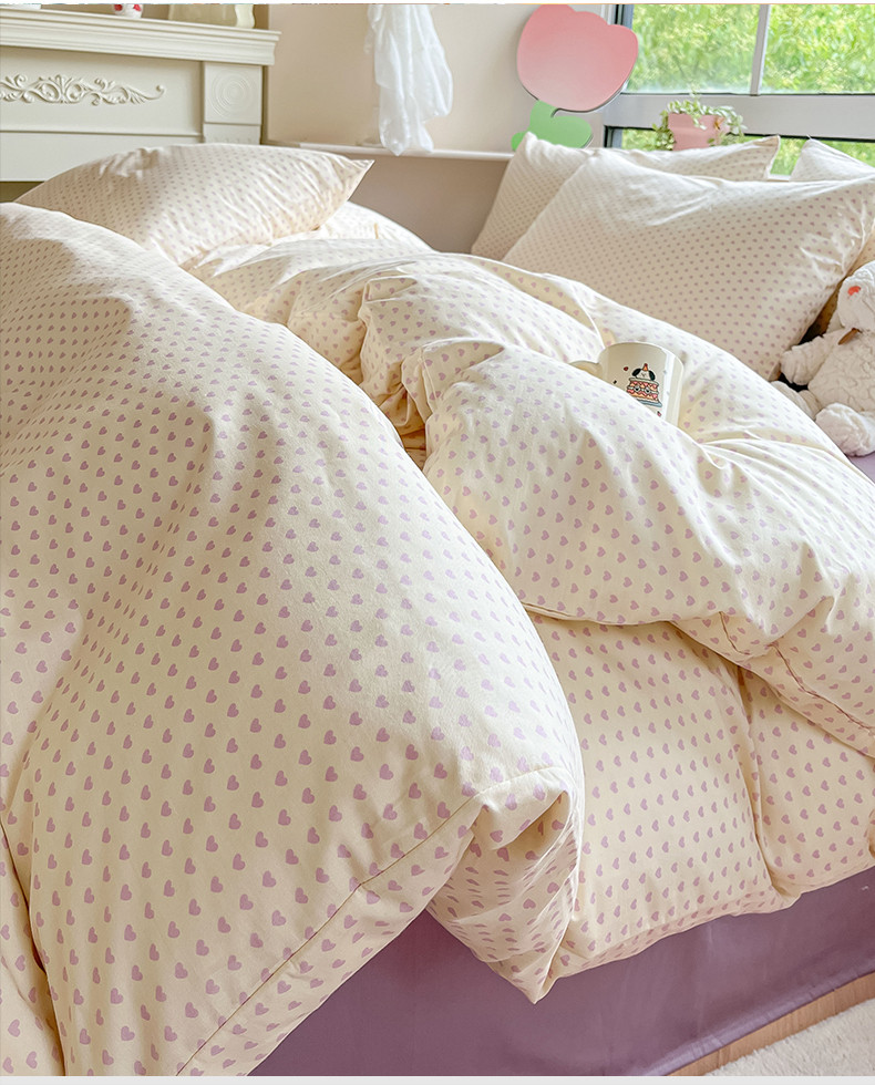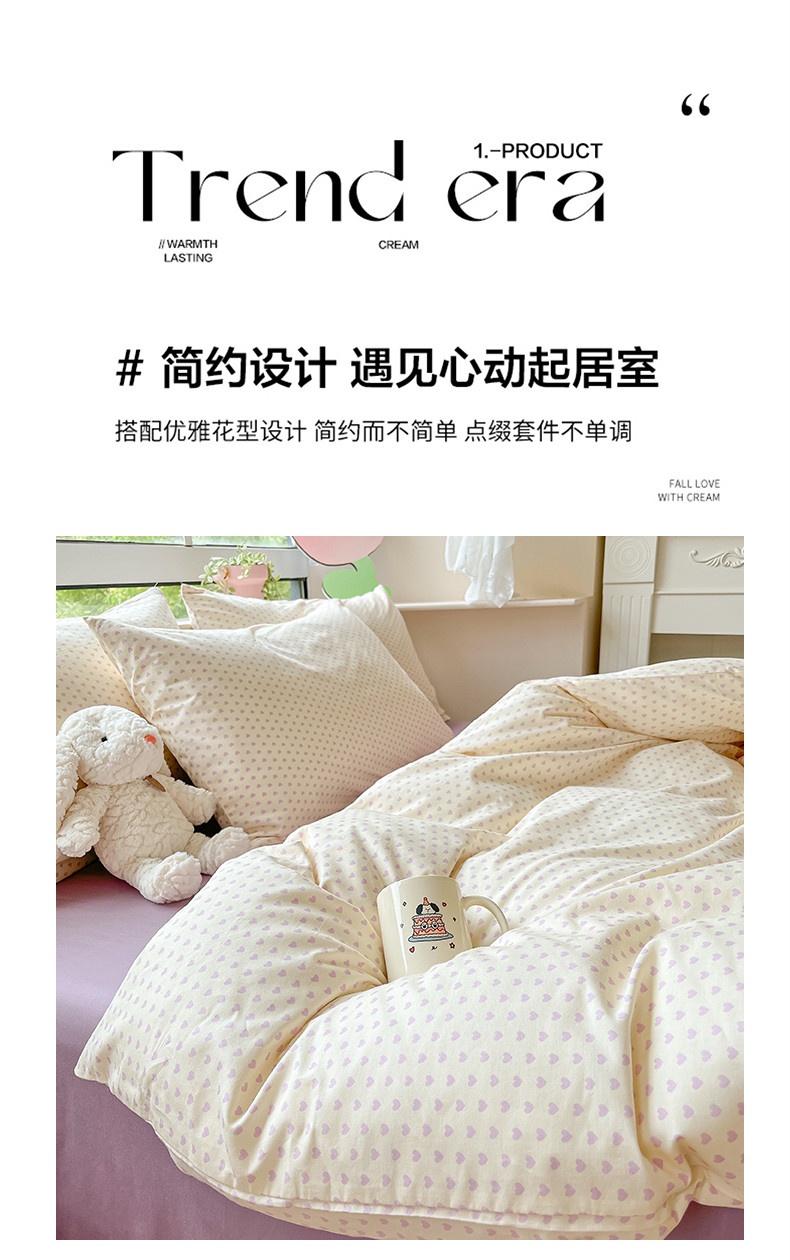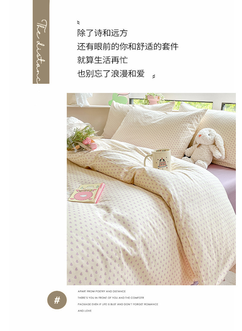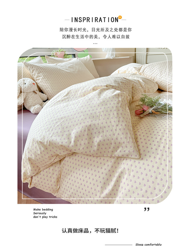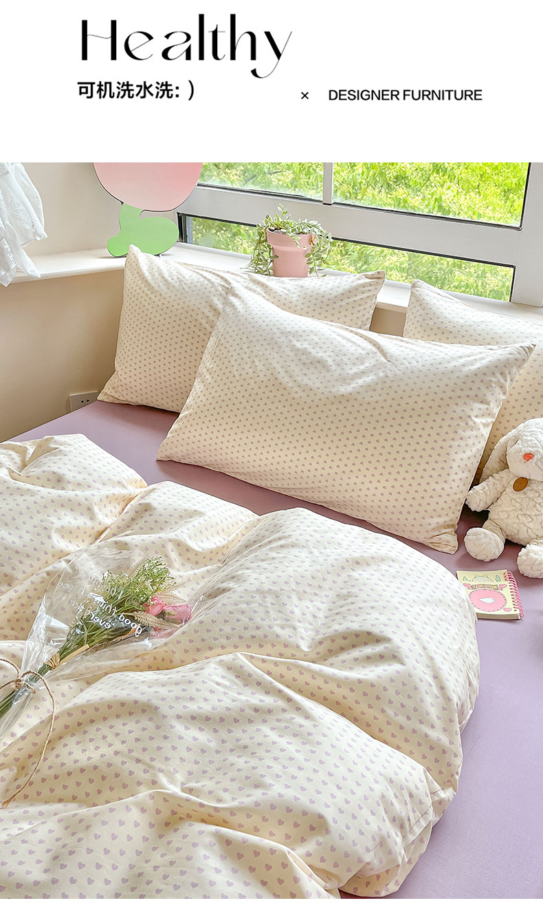 商品名称:柠馨 2023新款13376可爱系列全棉印花四件套 心恋