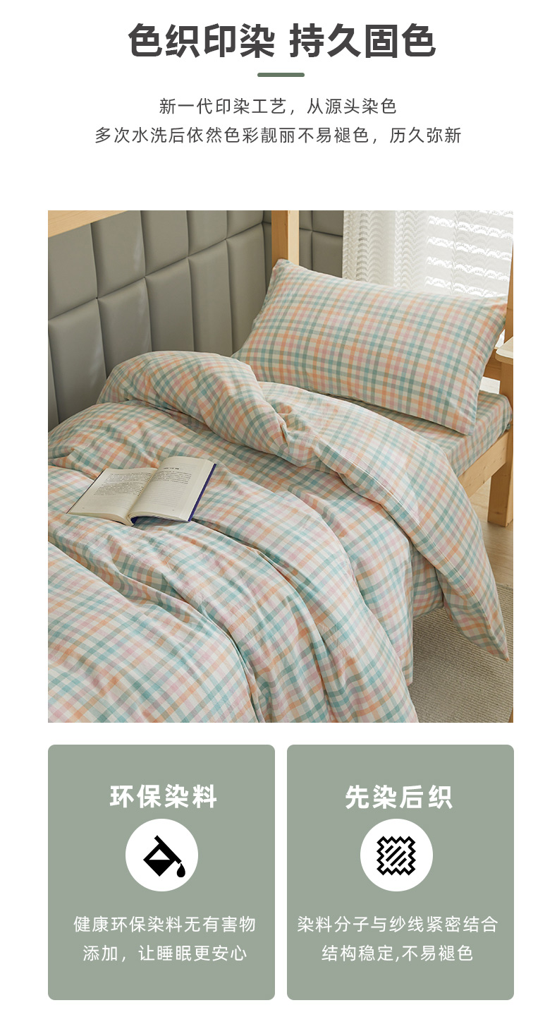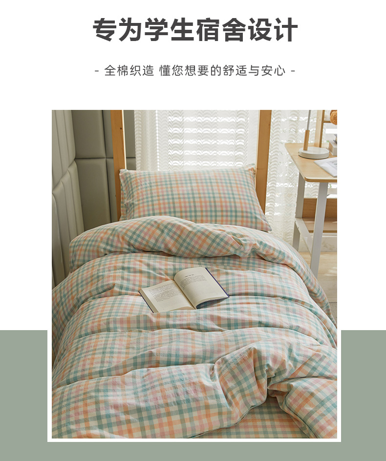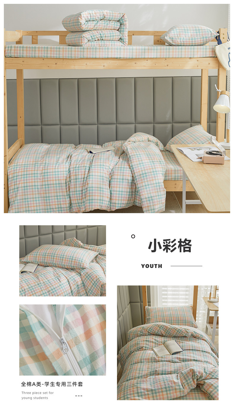 当前位置: 91家纺网 > 商品网购 > 床品套件 > 四件套 > 全棉普通四件套 > 柠萌 A类全棉色织水洗棉简约条纹格子学生季宿舍上下铺三件套 小彩格