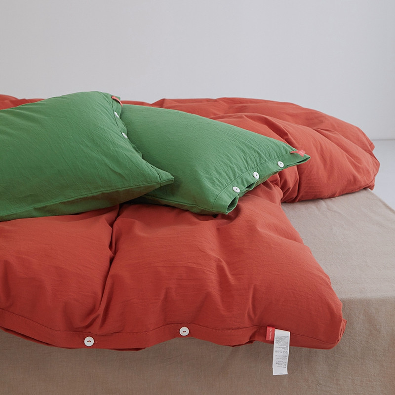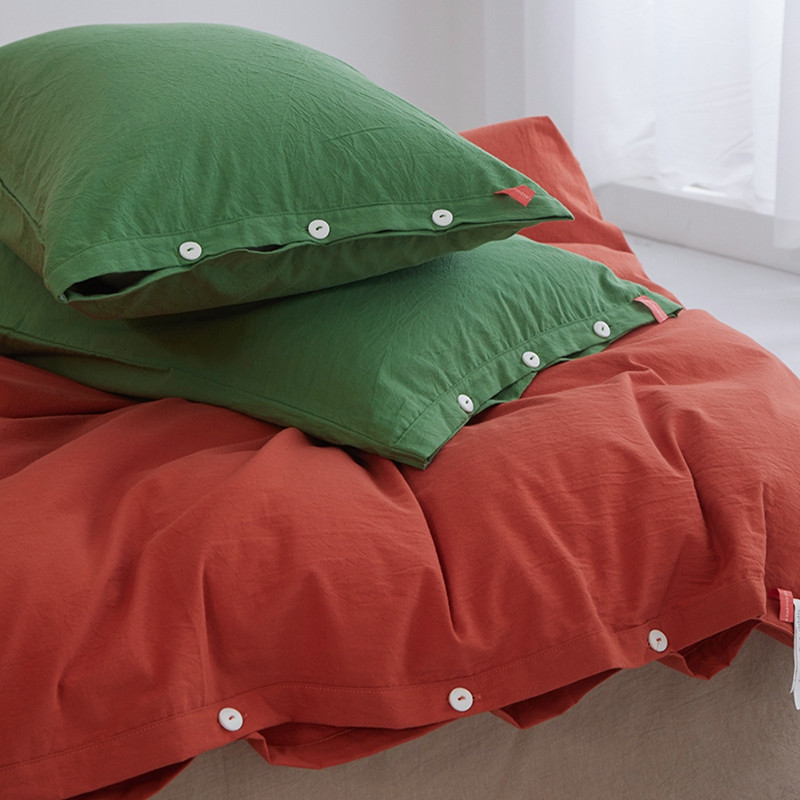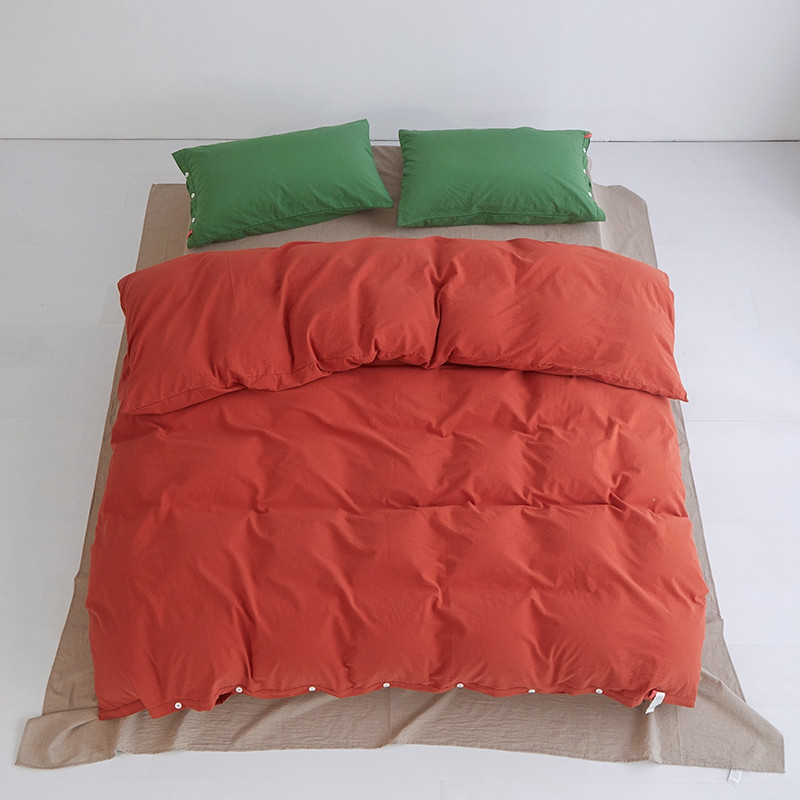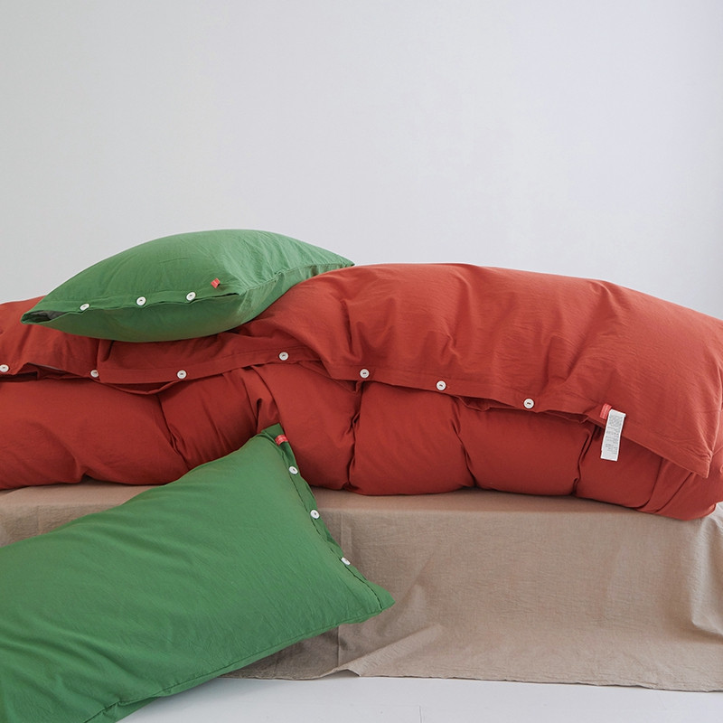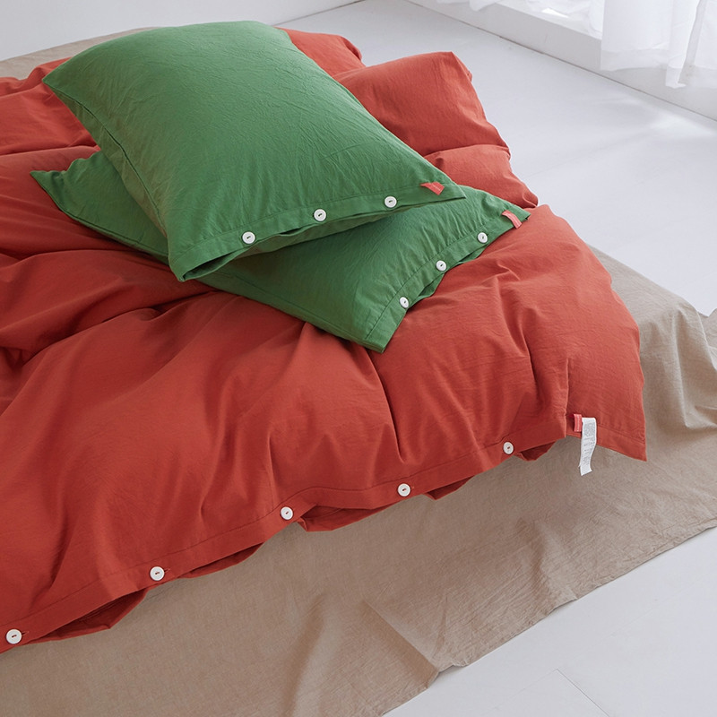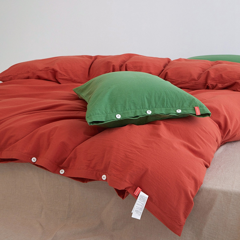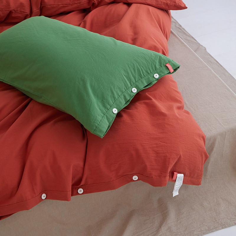 当前位置: 91家纺网 > 商品网购 > 床品套件 > 四件套 > 水洗棉四件套 > 水洗棉全棉纽扣款工艺混搭拼色四件套(系列二) 砖红+米驼(军绿军绿)