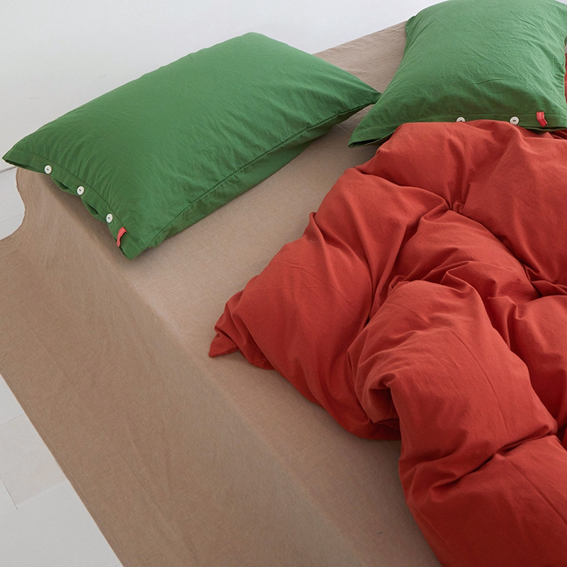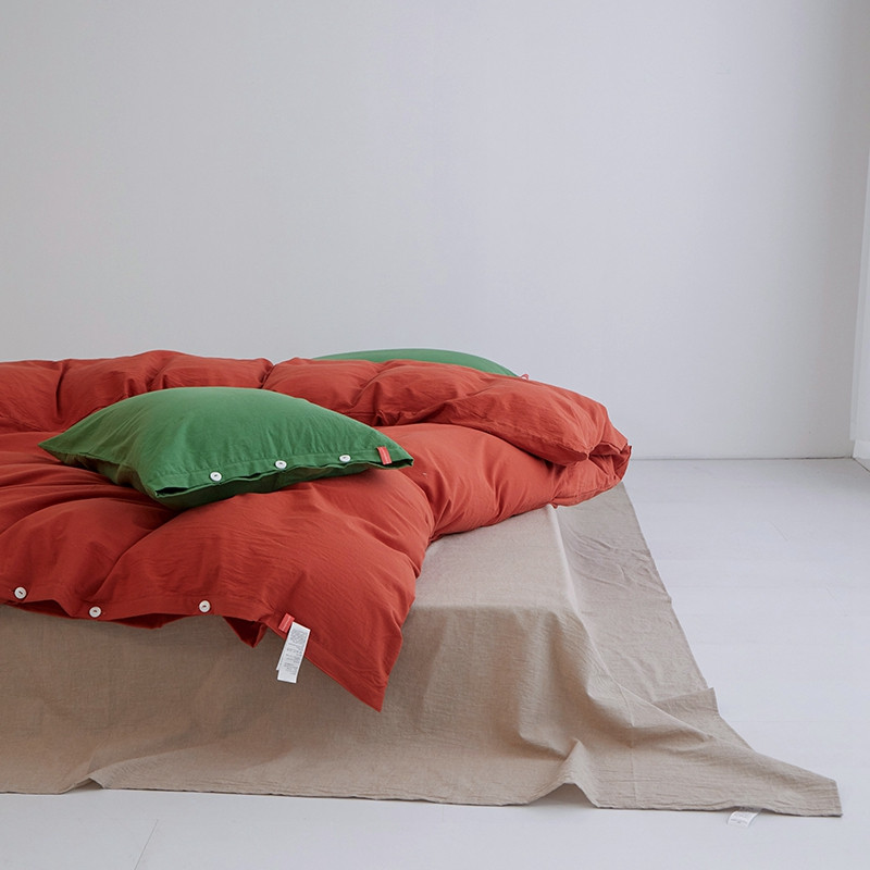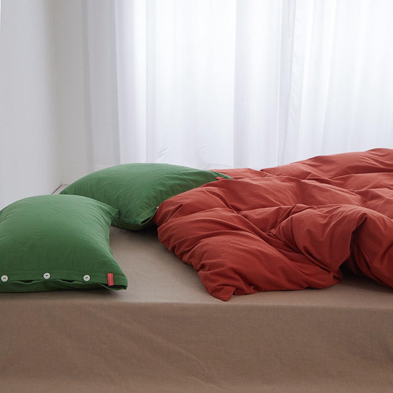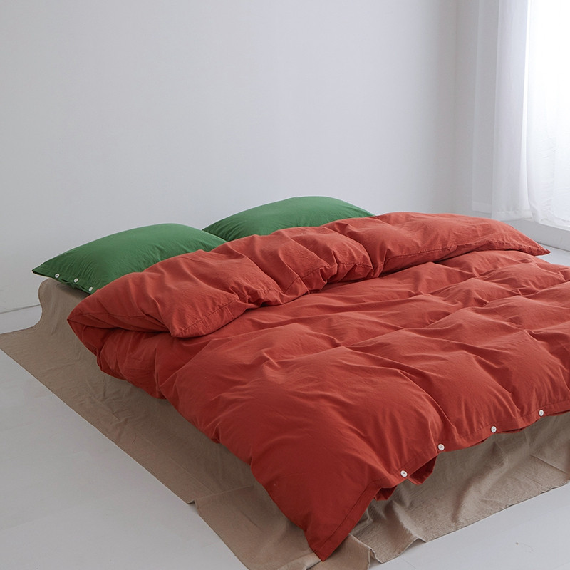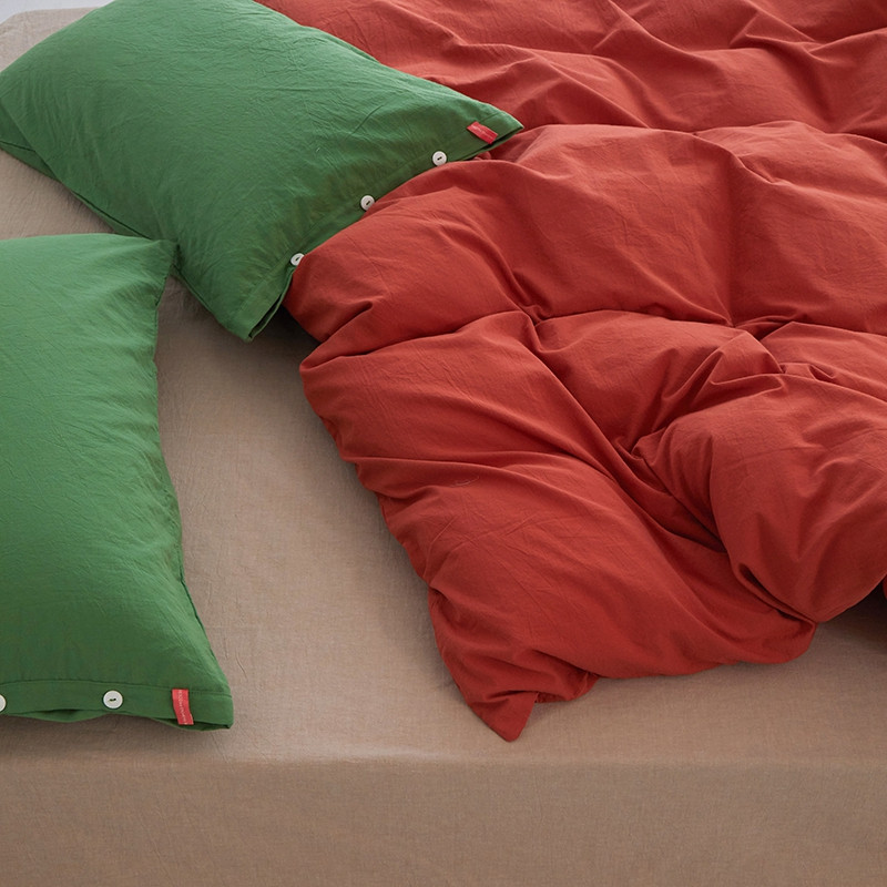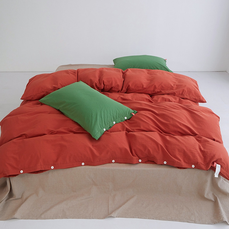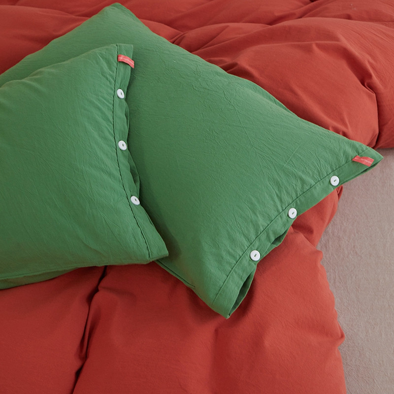 当前位置: 91家纺网 > 商品网购 > 床品套件 > 四件套 > 水洗棉四件套 > 水洗棉全棉纽扣款工艺混搭拼色四件套(系列二) 砖红+米驼(军绿军绿)