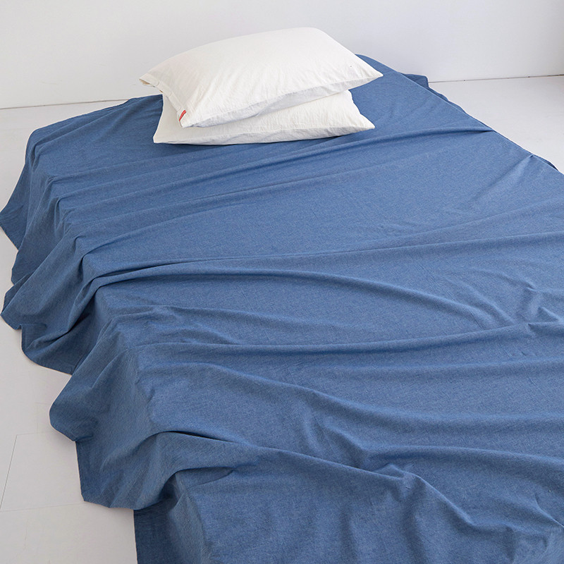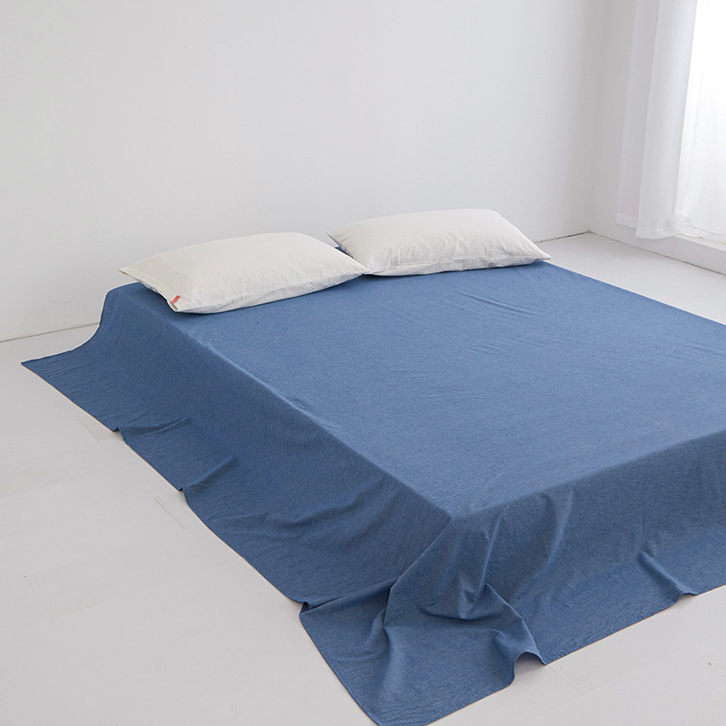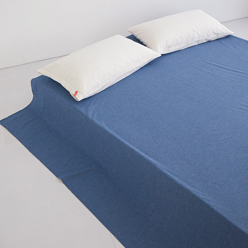 安莱生活 2023新款水洗棉全棉色织高支高密纽扣款工艺单品床单 深蓝