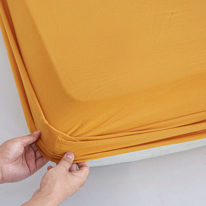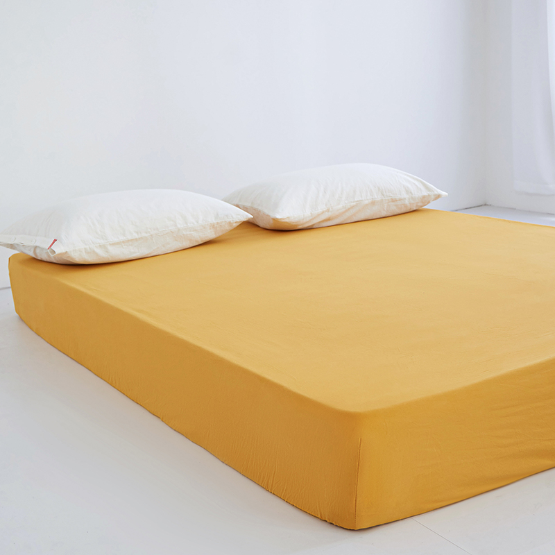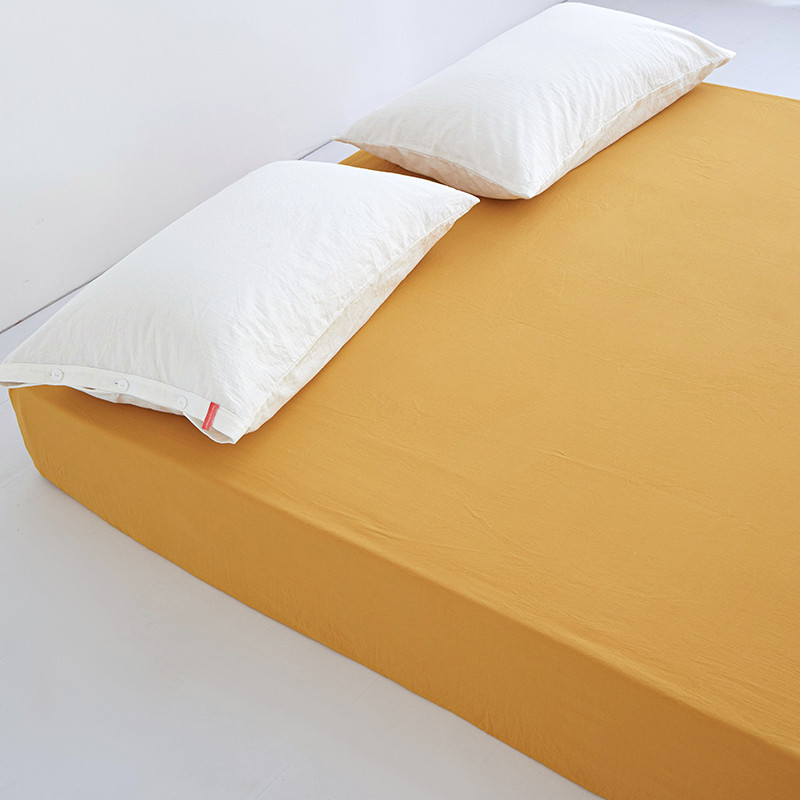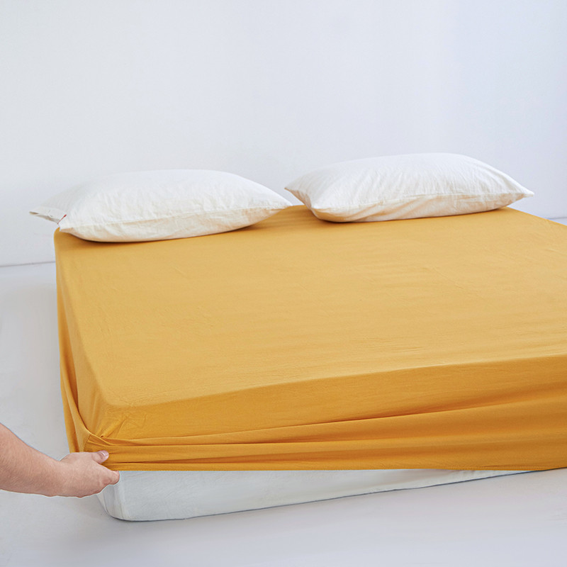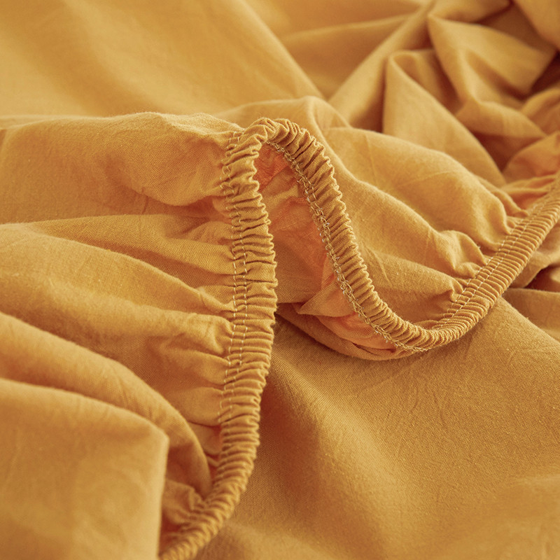 商品名称:安莱生活 2023新款水洗棉全棉色织高支高密纽扣款工艺单品床笠 姜黄
