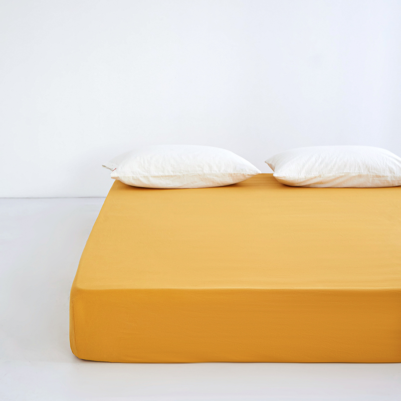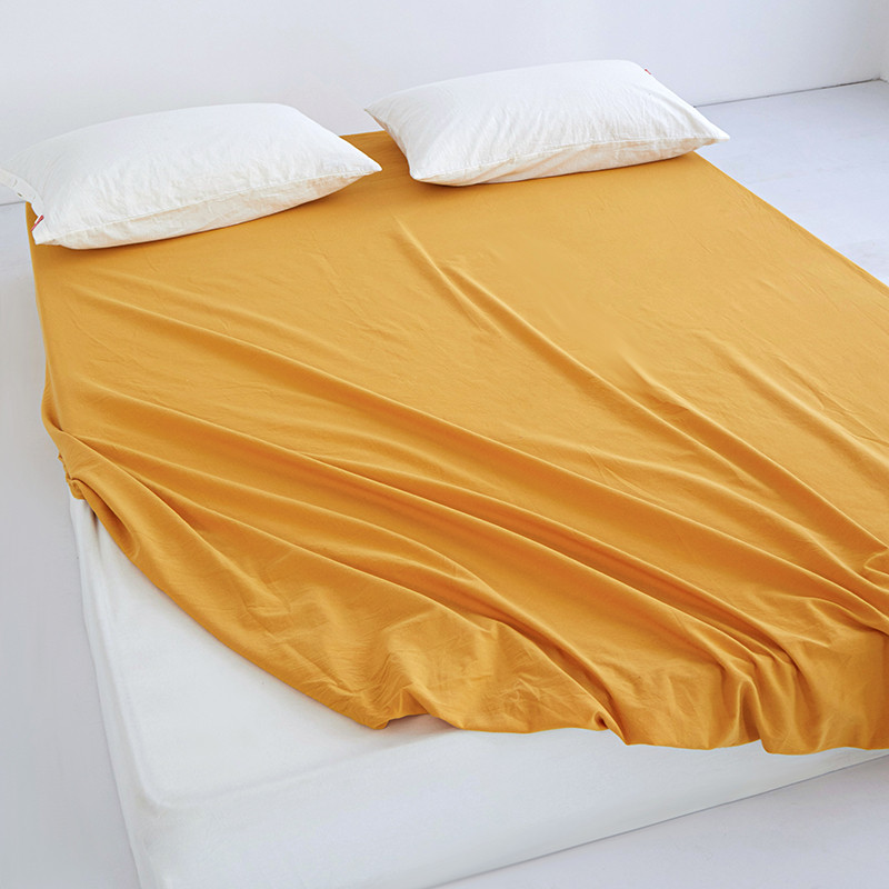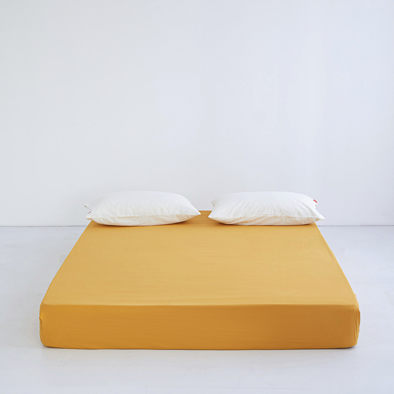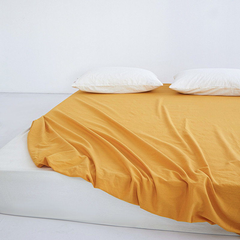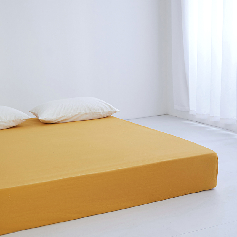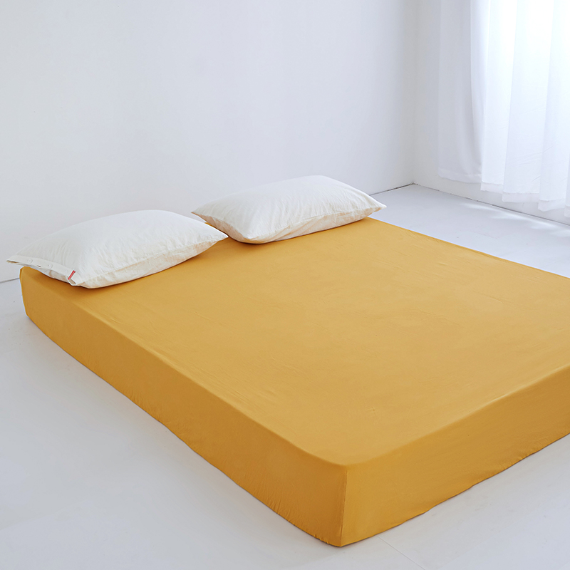商品名称:安莱生活 2023新款水洗棉全棉色织高支高密纽扣款工艺单品床笠 姜黄