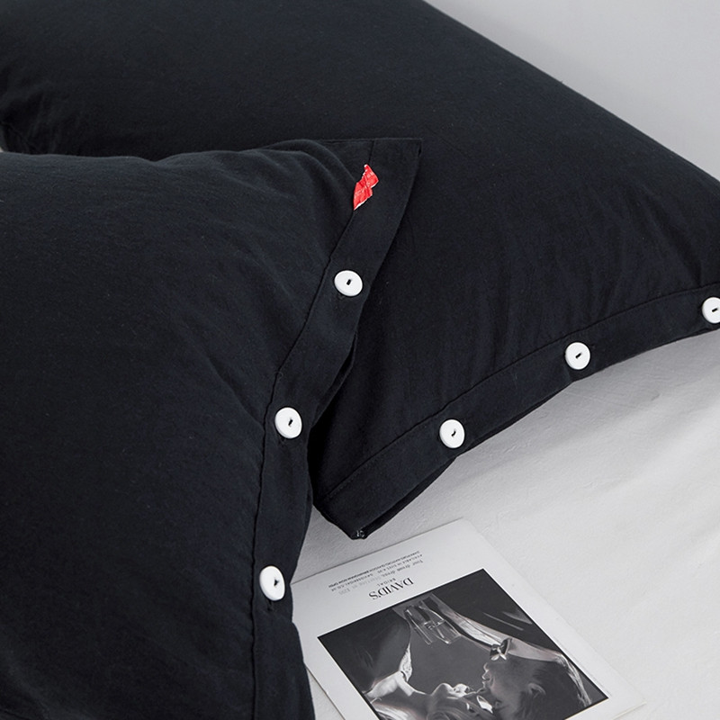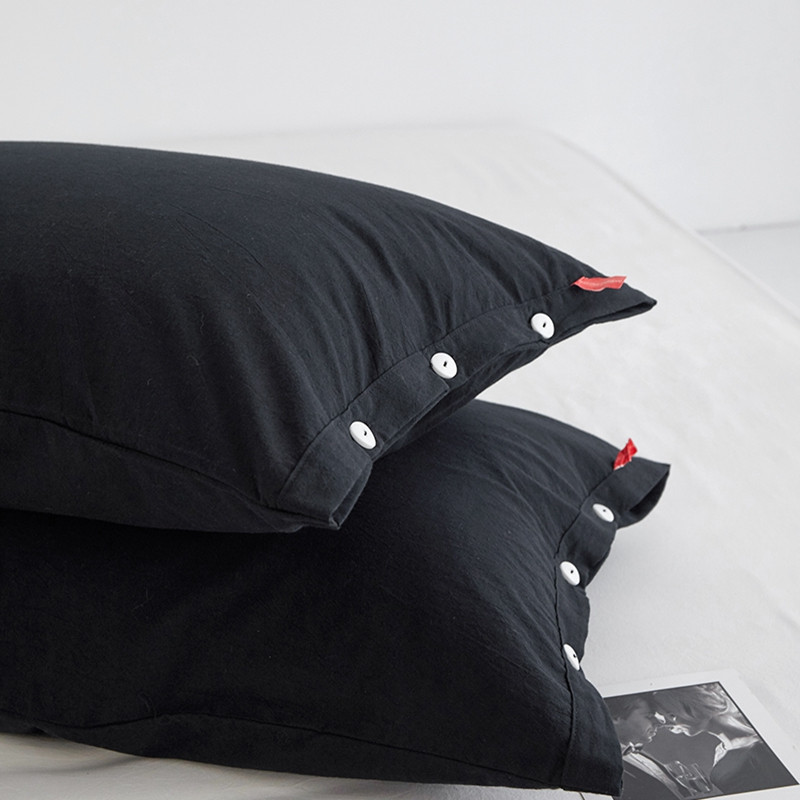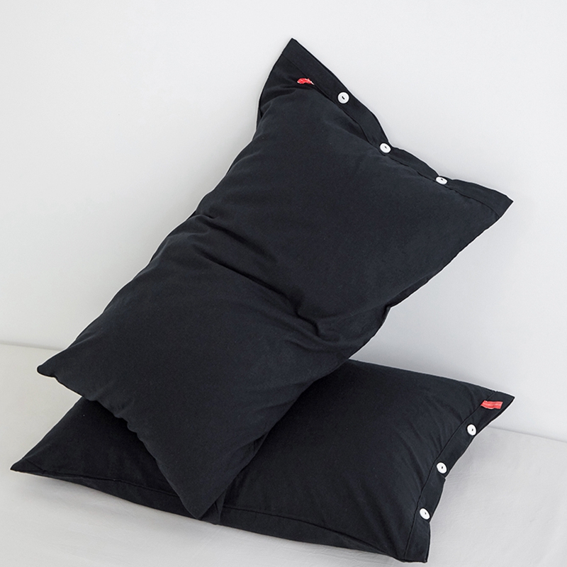 安莱生活 2023新款水洗棉全棉色织高支高密纽扣款工艺单品枕套 炭黑