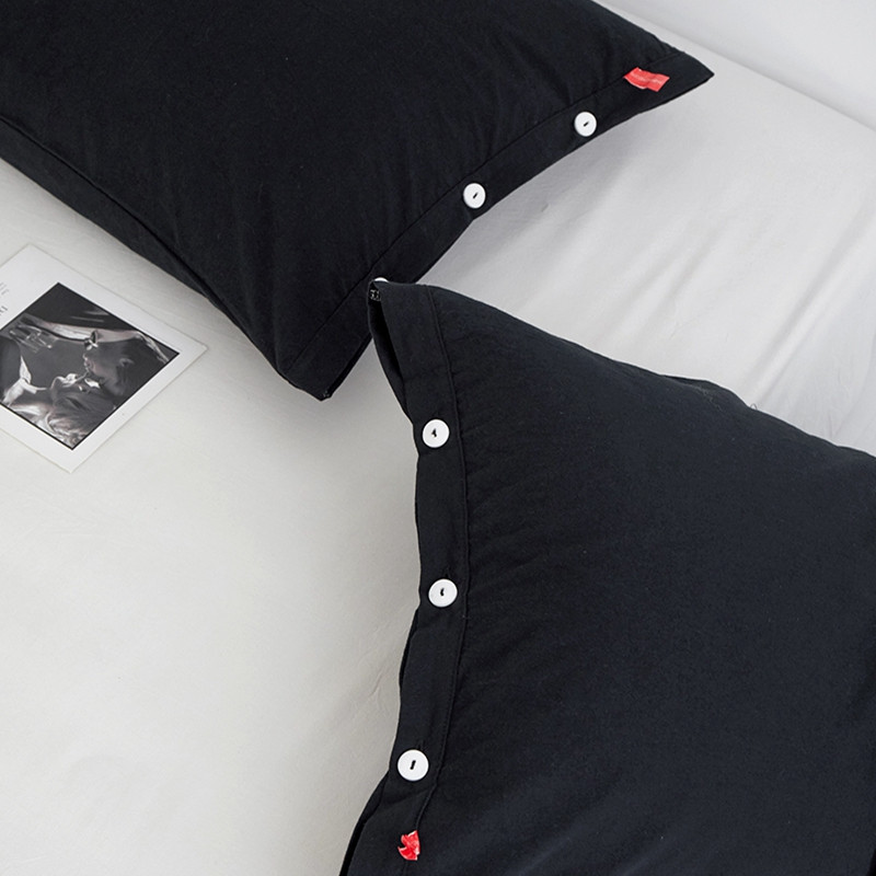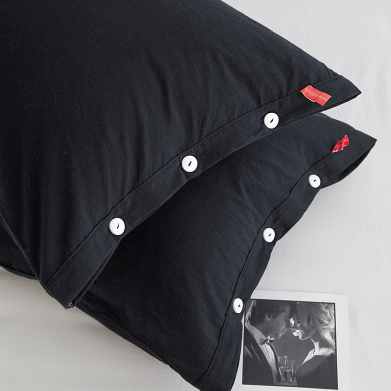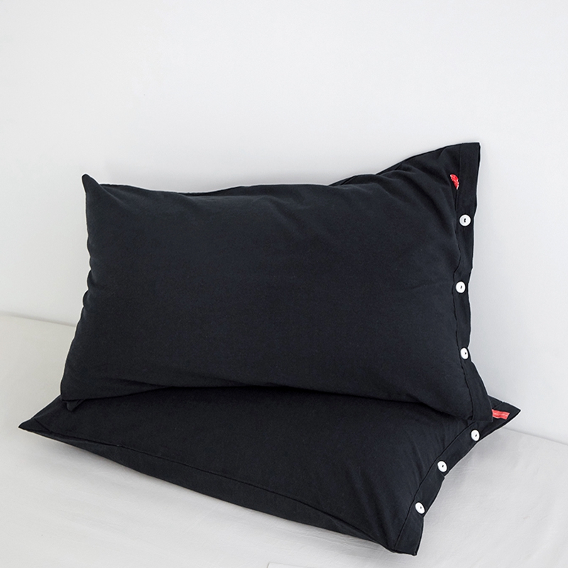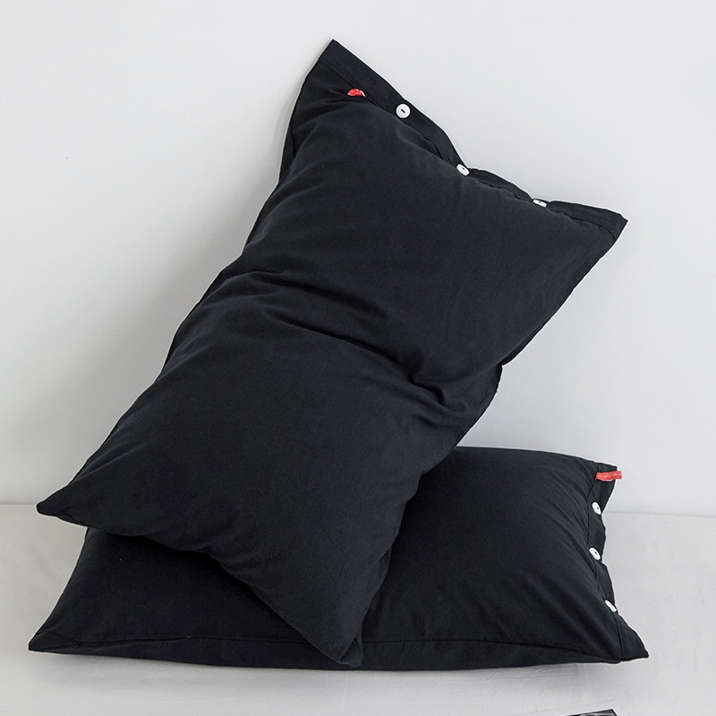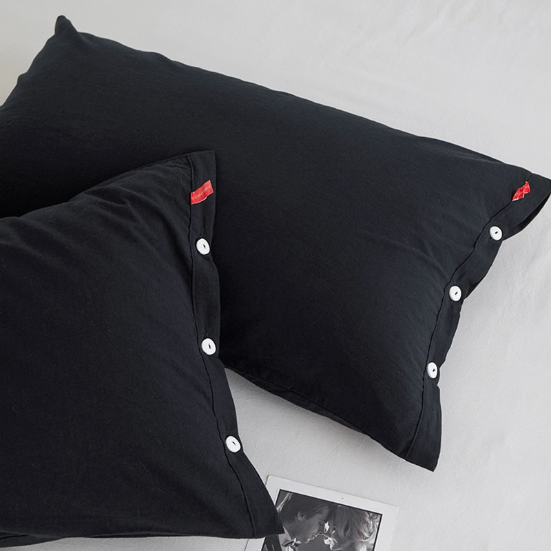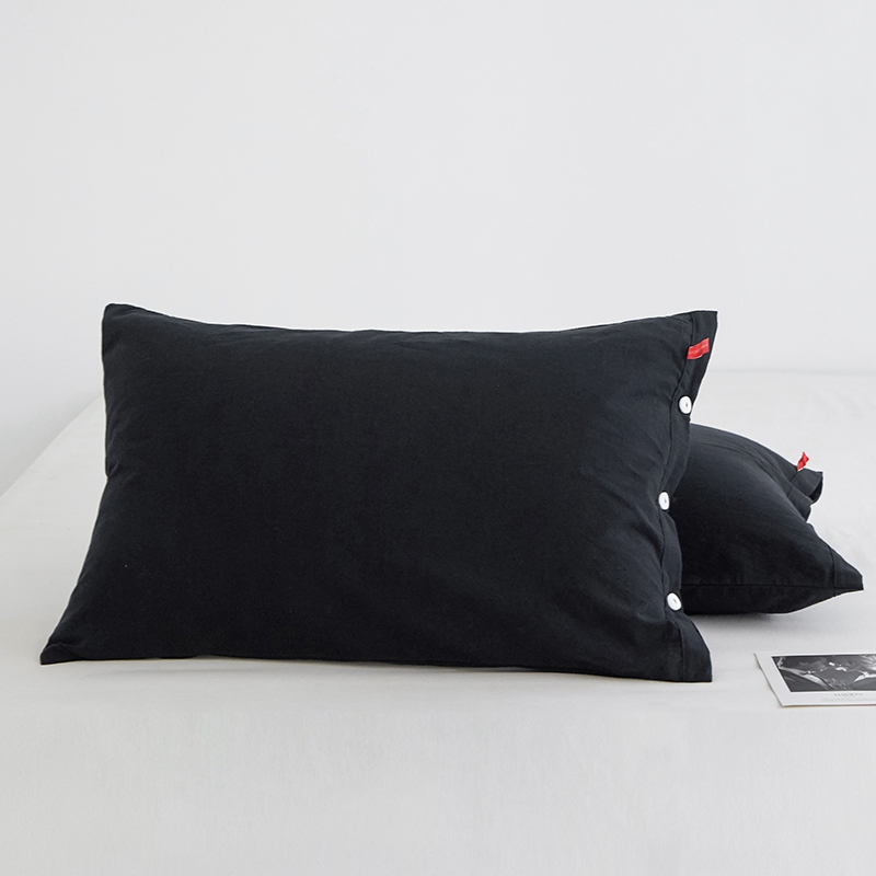 商品名称:安莱生活 2023新款水洗棉全棉色织高支高密纽扣款工艺单品枕套 炭黑