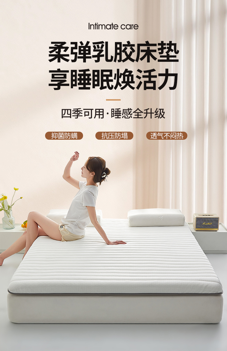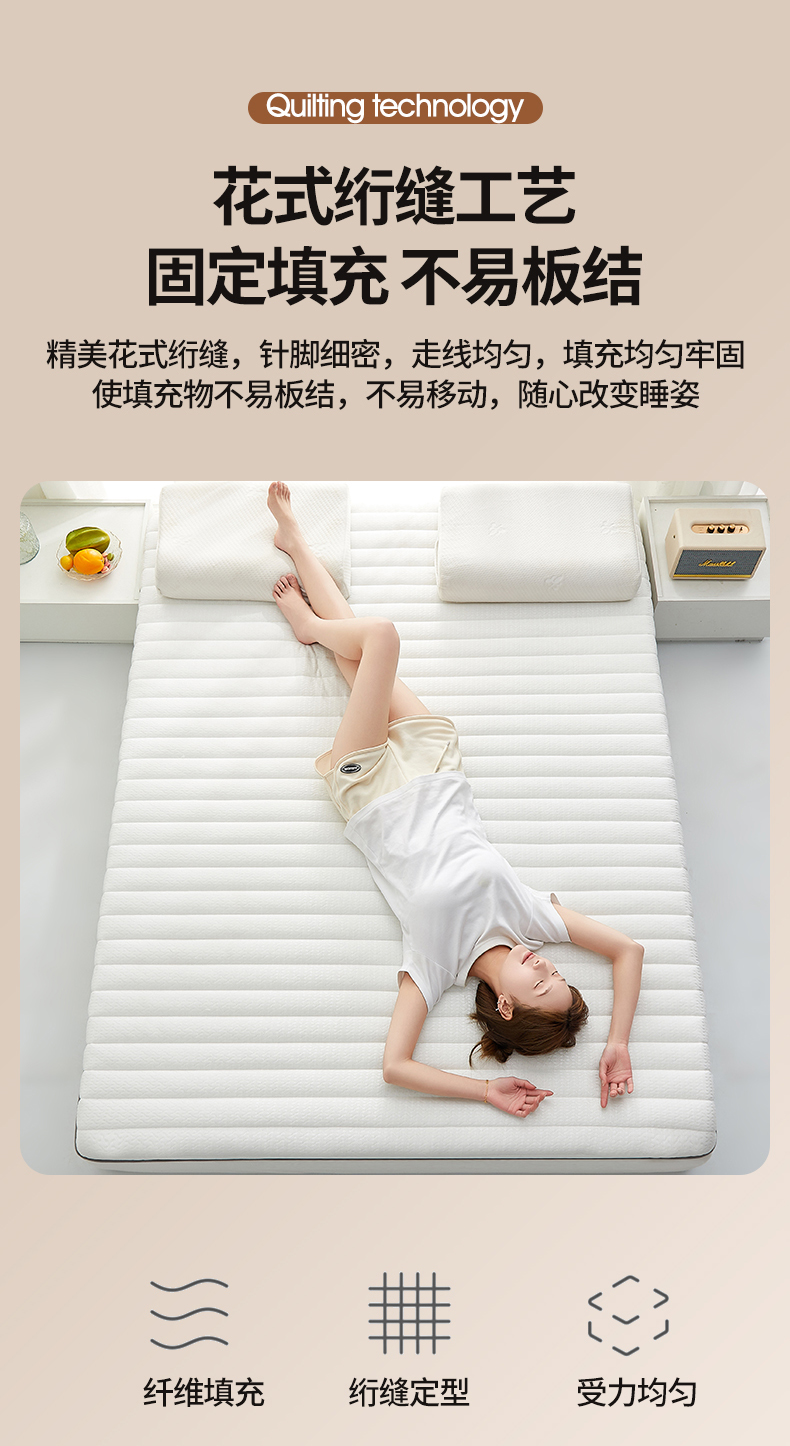 • 91家纺网 家纺一手货源 找家纺 鑫梦莱 2025新款加厚针织棉乳胶床垫 简约白(厚度约9cm)
