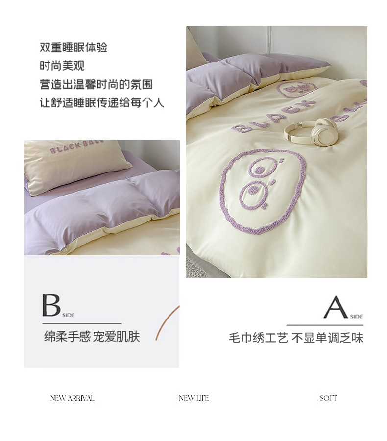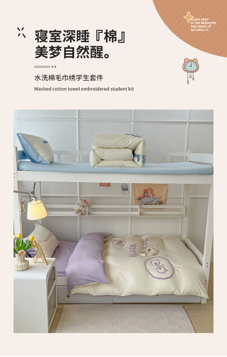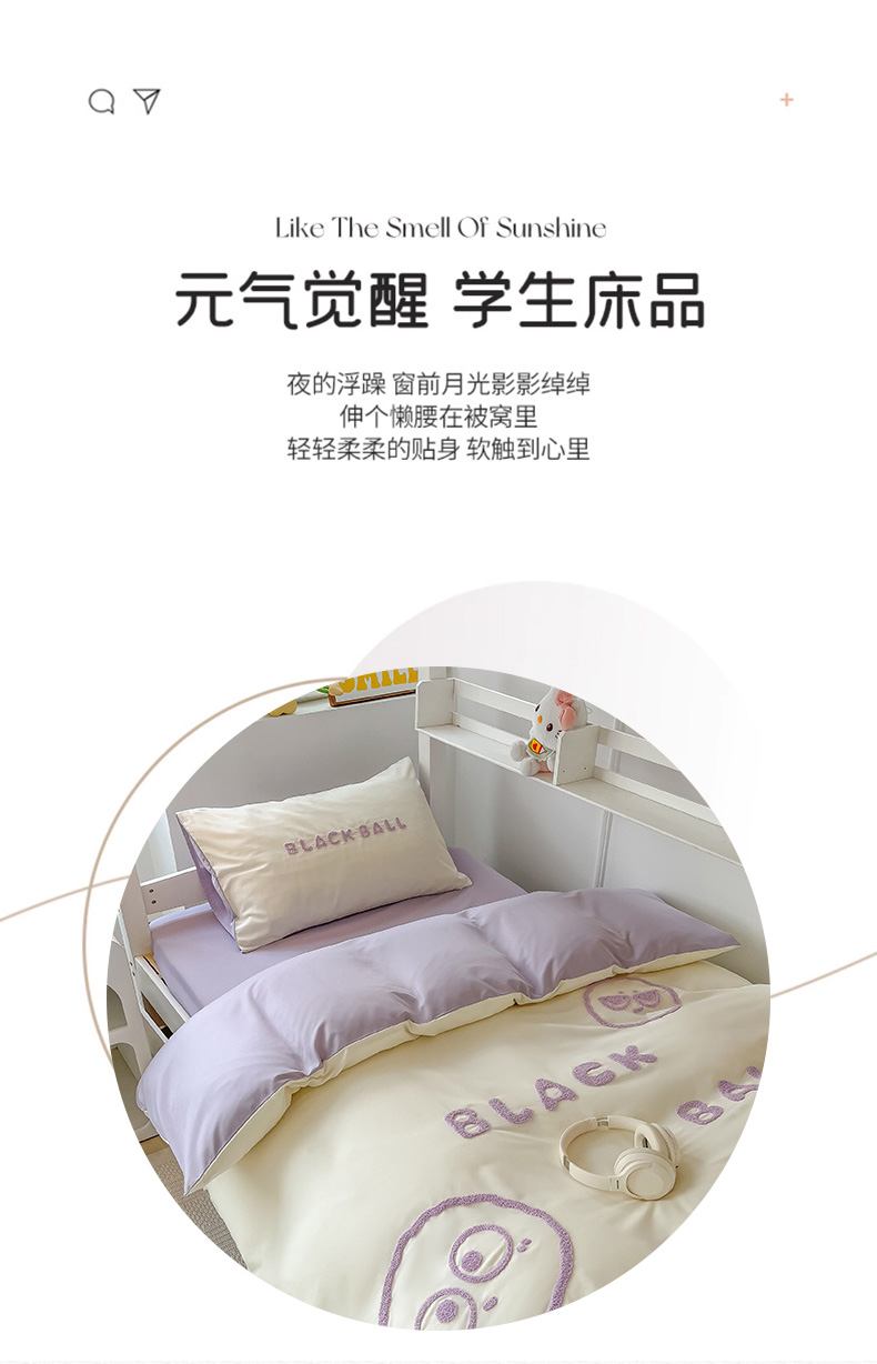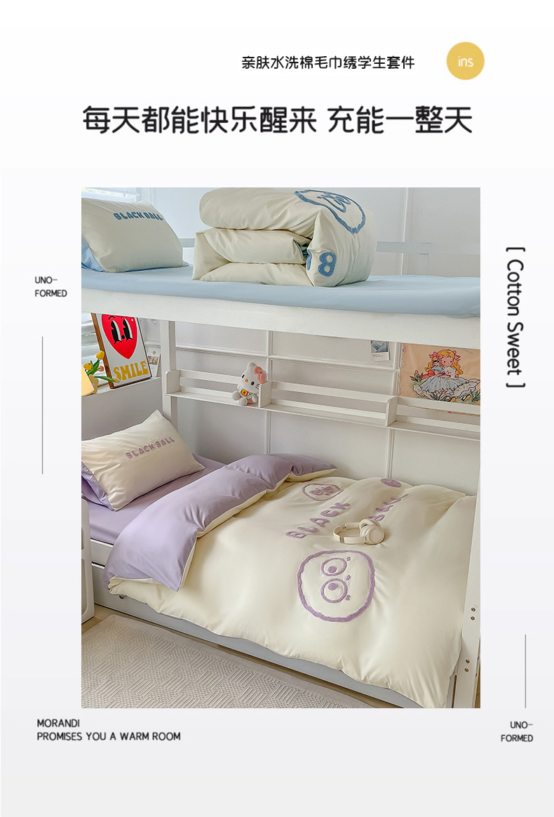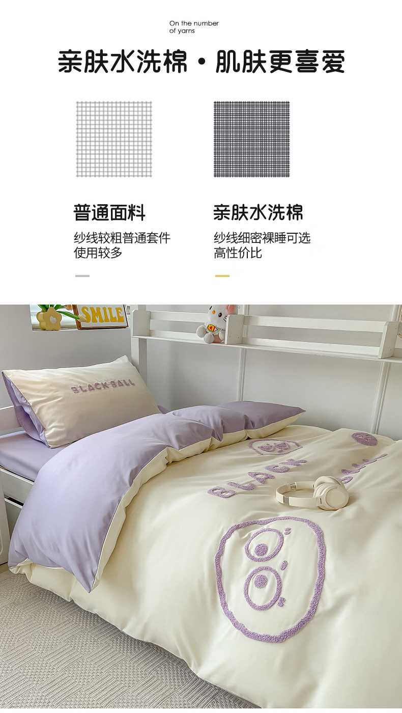 当前位置: 91家纺网 > 商品网购 > 床品套件 > 四件套 > 水洗棉四件套 > 眠帛 2023新款水洗棉毛巾绣煤球系列学生三件套六件套 煤球浅紫