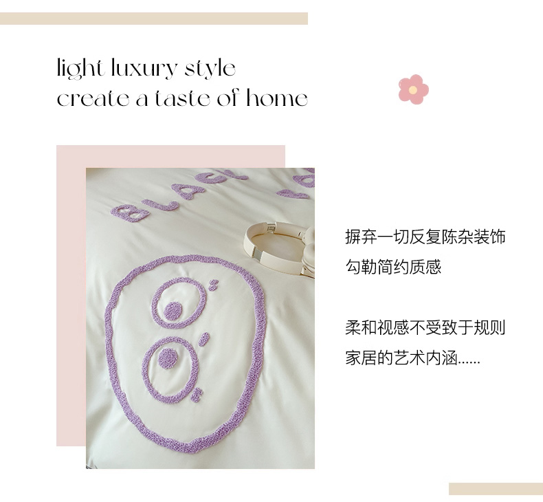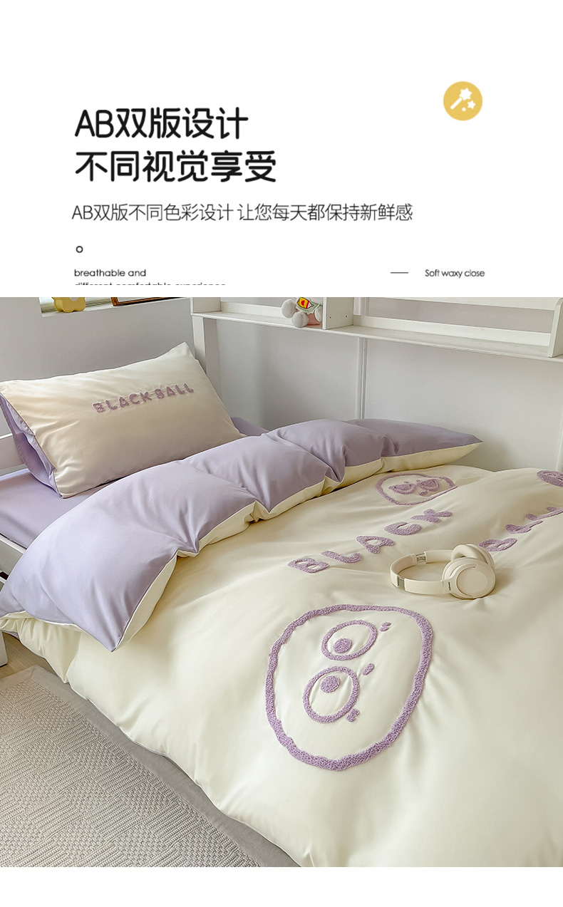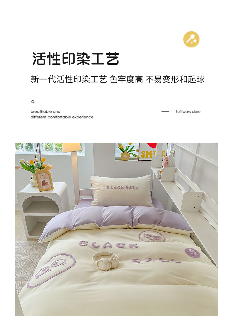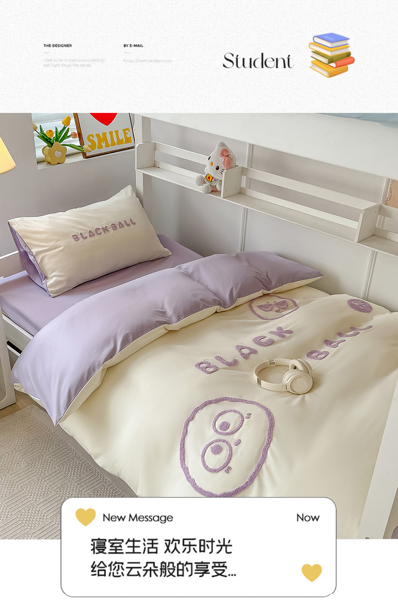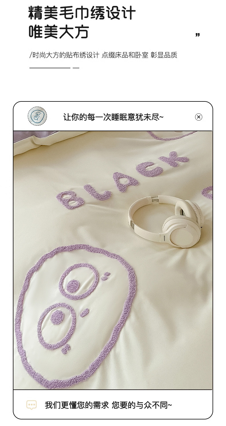 当前位置: 91家纺网 > 商品网购 > 床品套件 > 四件套 > 水洗棉四件套 > 眠帛 2023新款水洗棉毛巾绣煤球系列学生三件套六件套 煤球浅紫