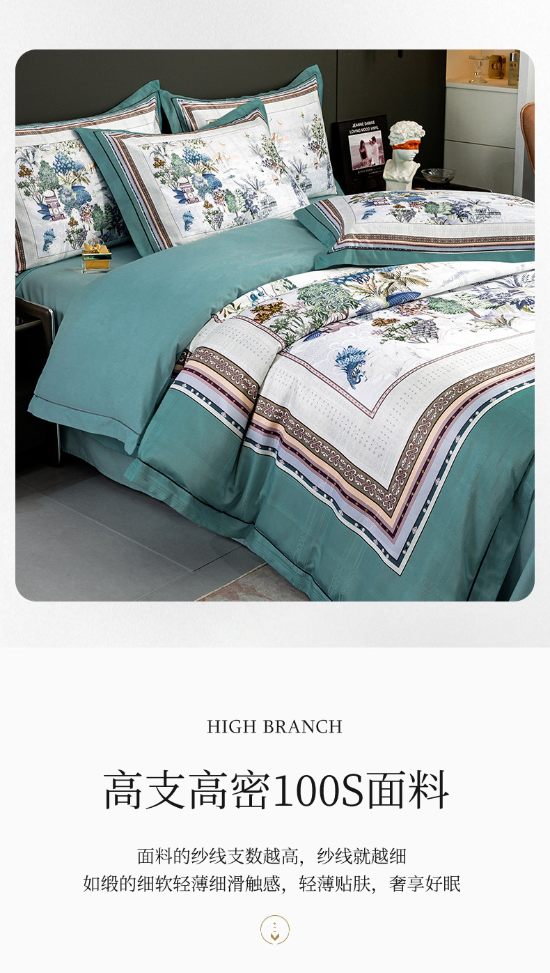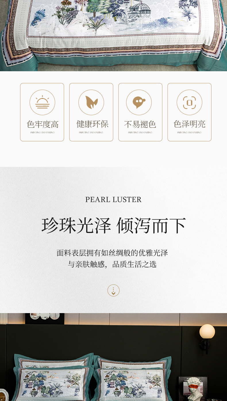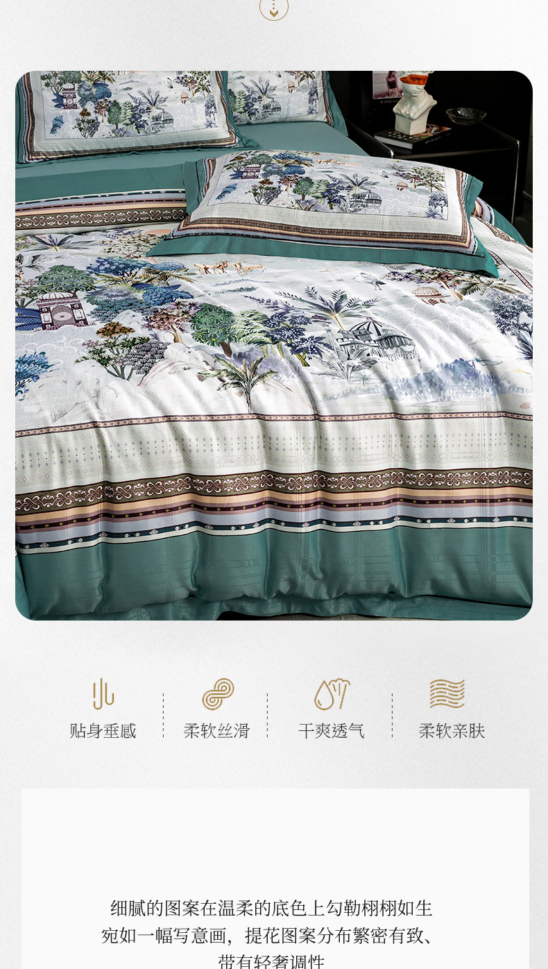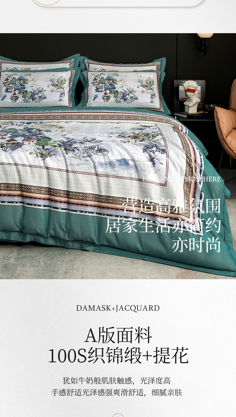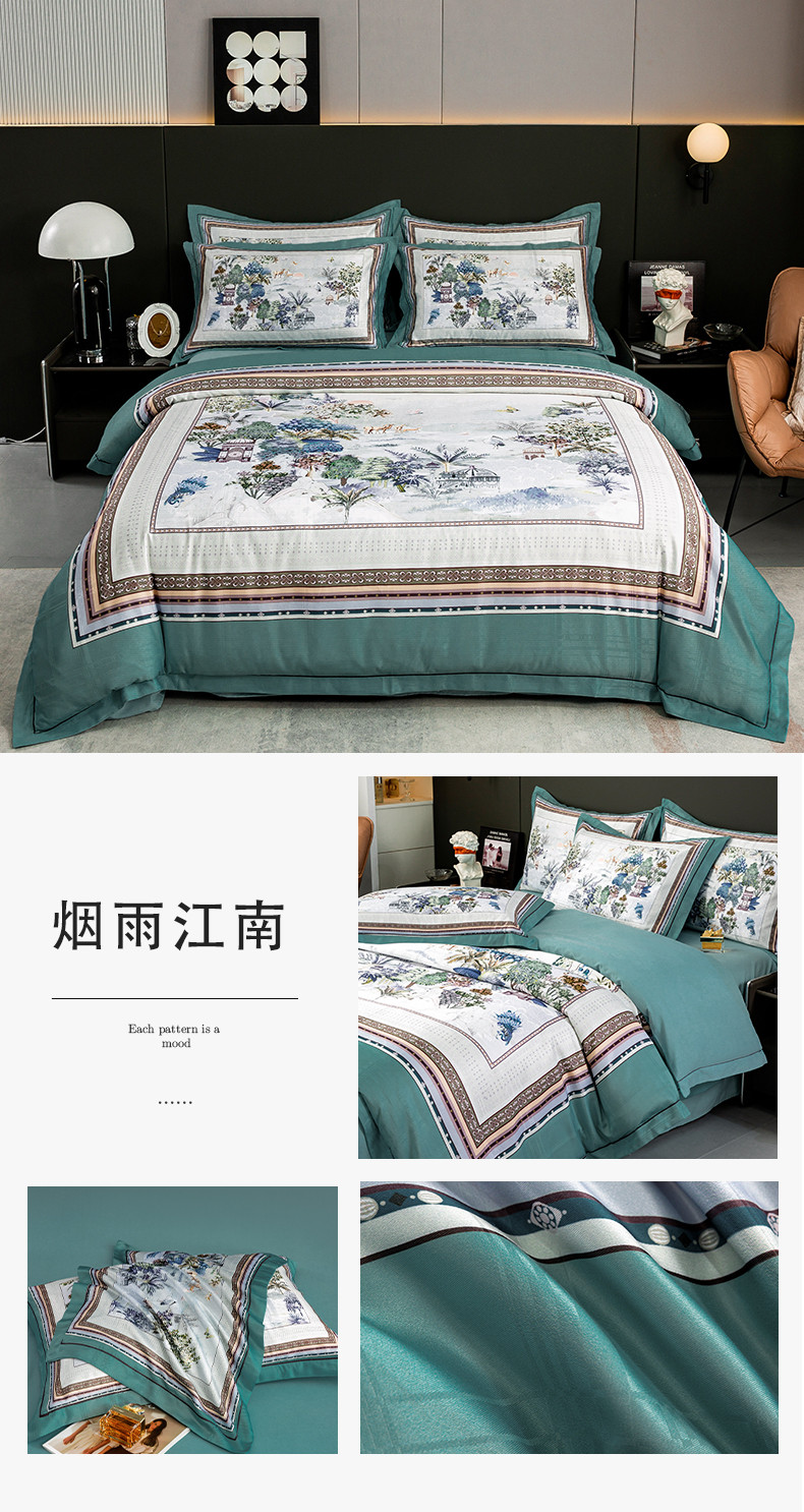 莱欧纳 2025新款100s织锦缎大版提花四件套 烟雨江南