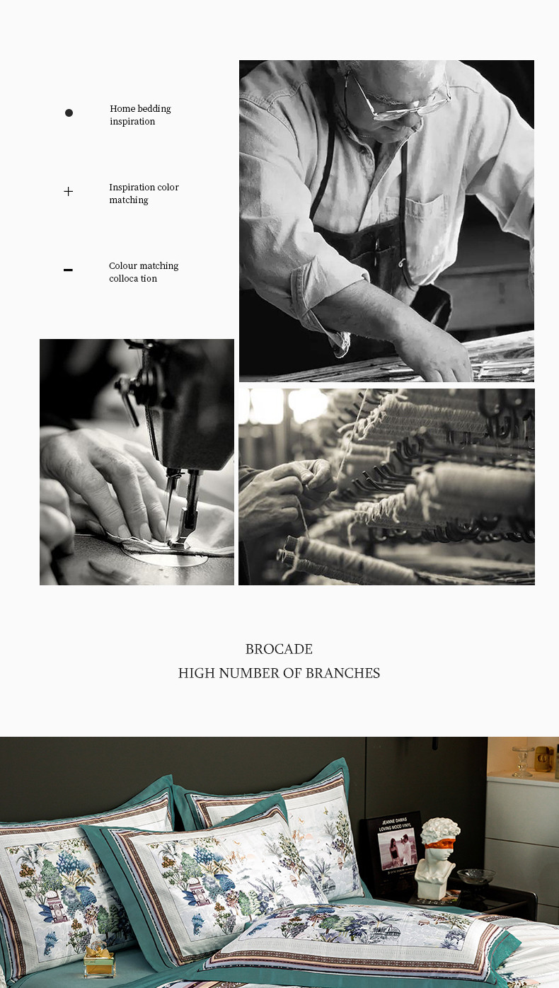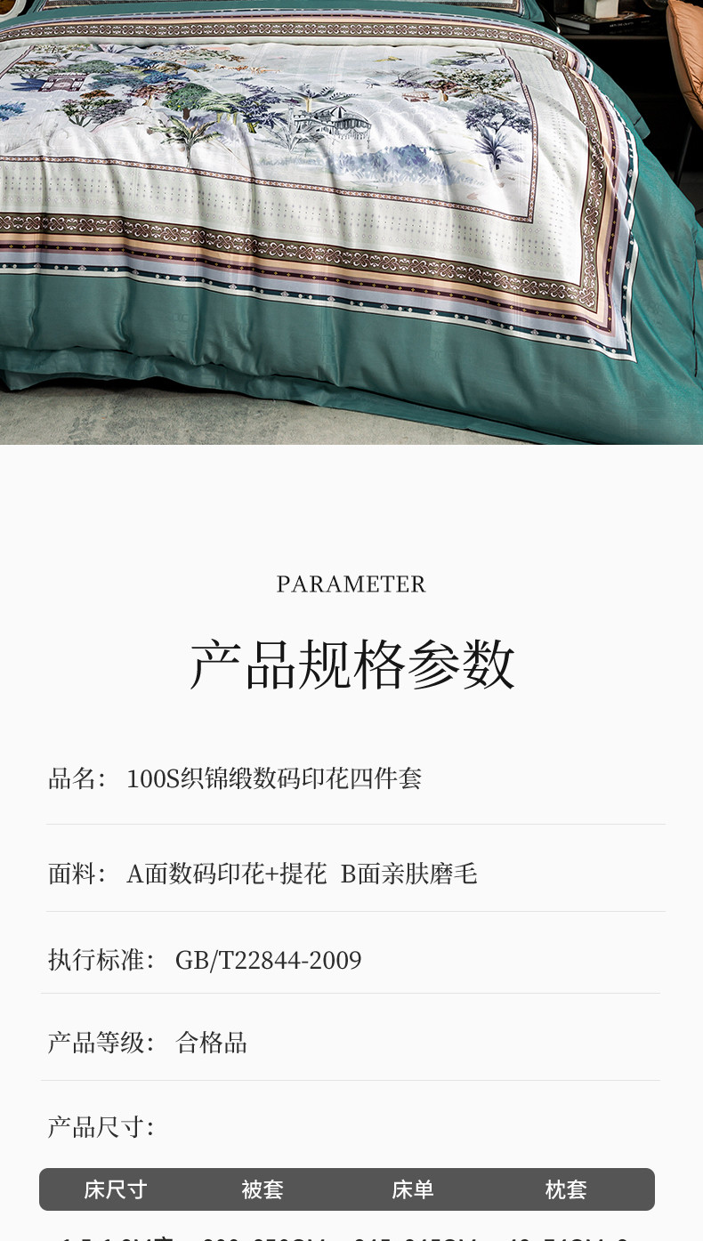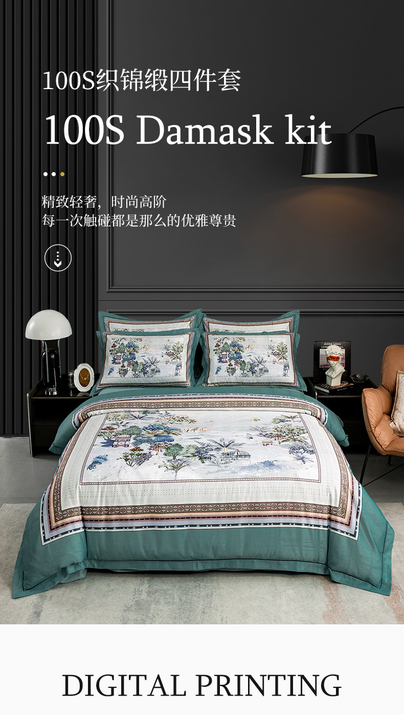 商品名称:莱欧纳 2025新款100s织锦缎大版提花四件套 烟雨江南