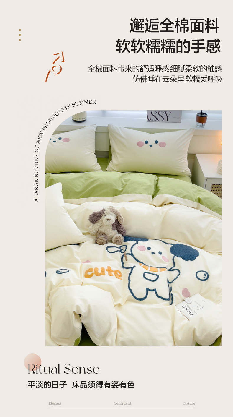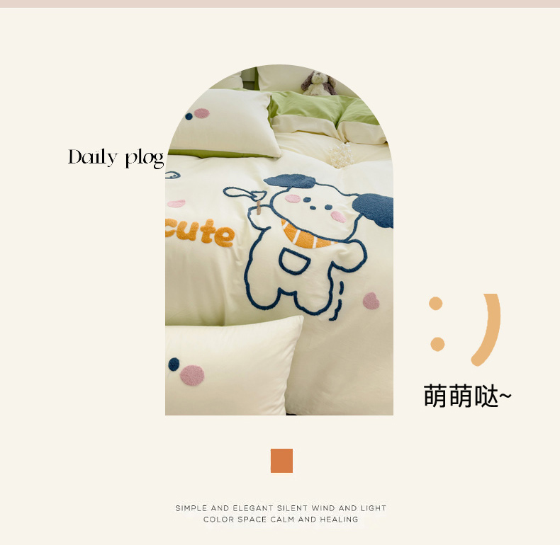 (总)丽涵家纺 2026新款50S全棉纯棉水洗棉毛巾绣花四件套幸运圣诞,动物乐园,可爱小狗-浅粉,小狗派对,幸运圣诞树,熊猫嘟嘟,可爱小狗-蓝