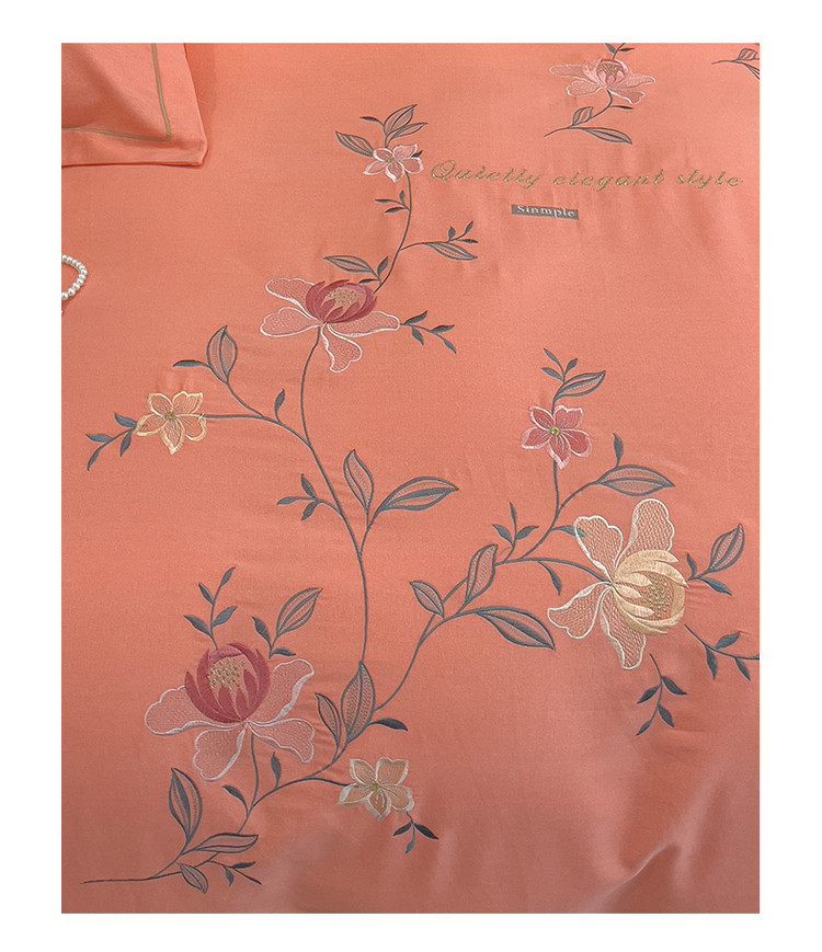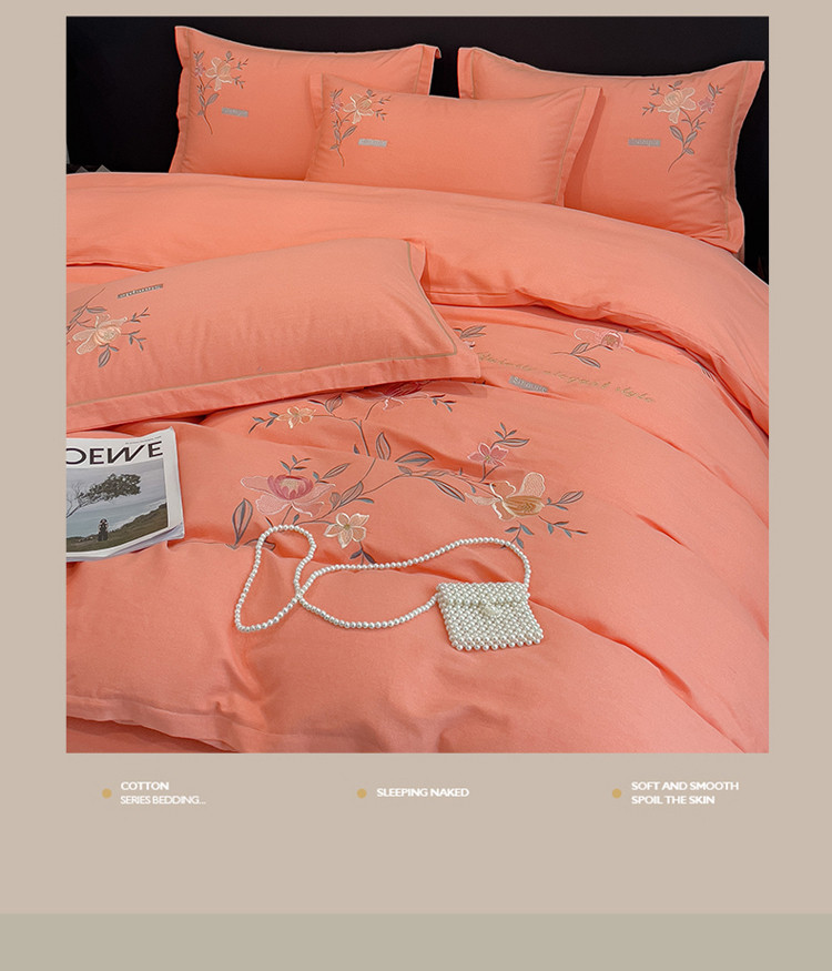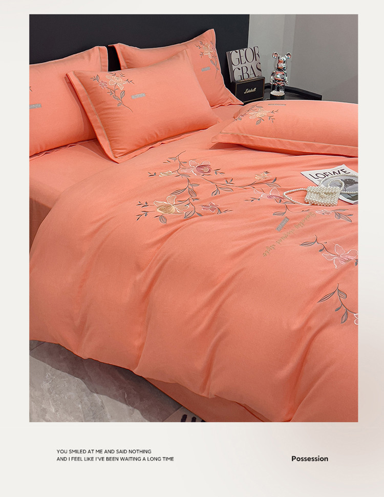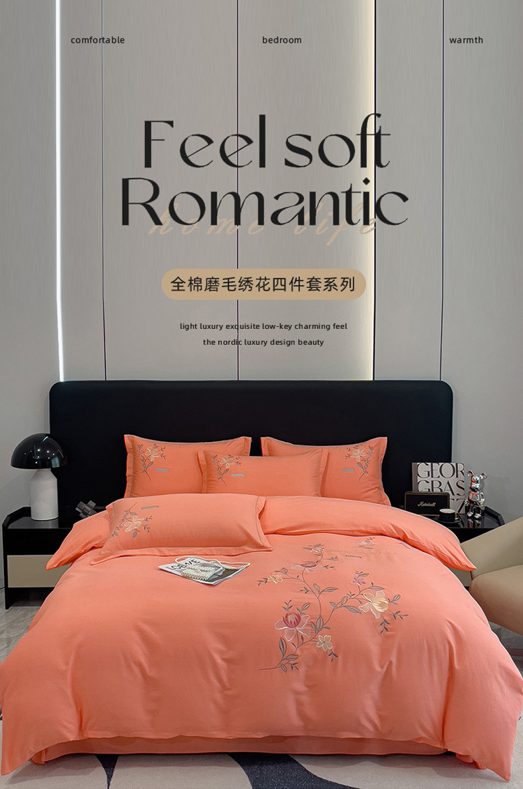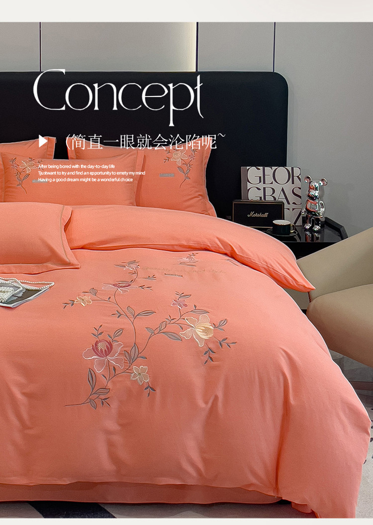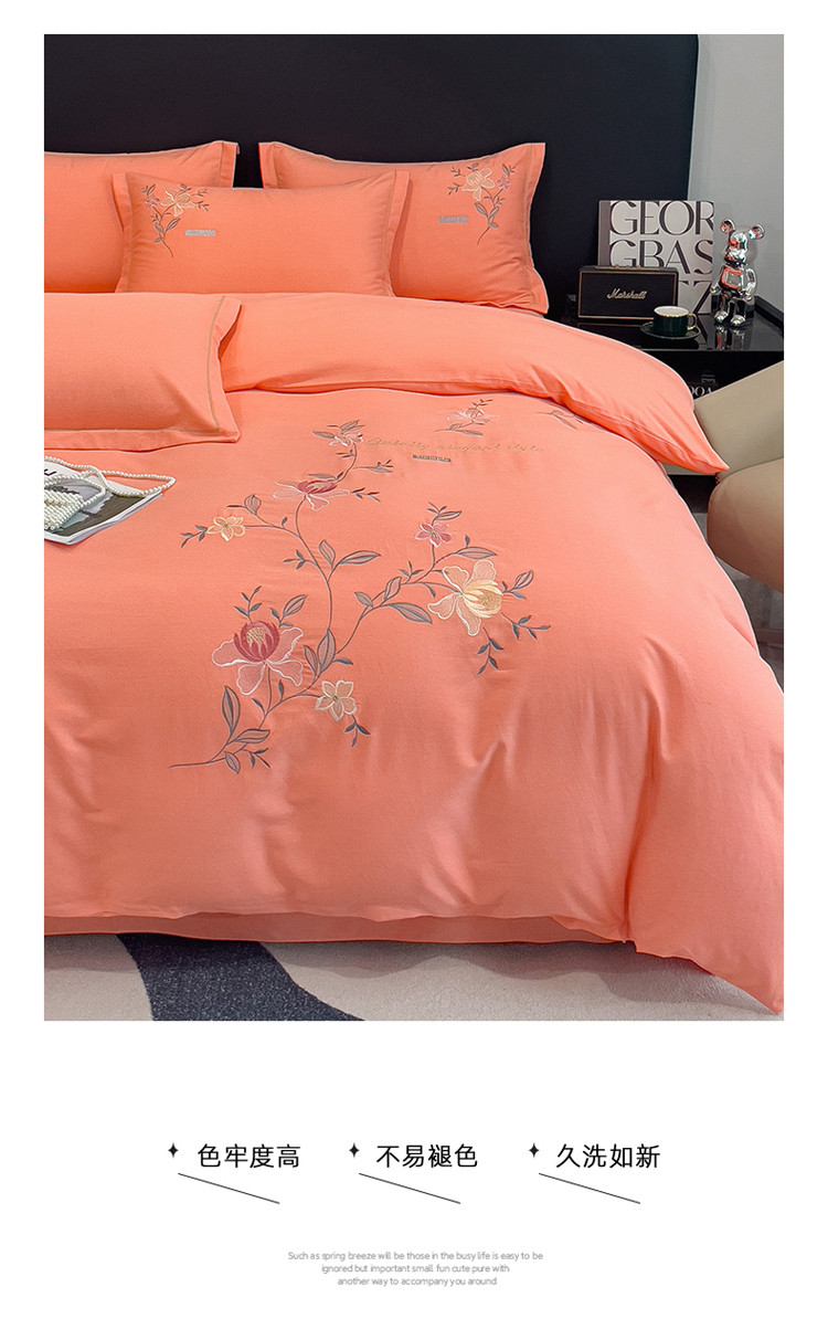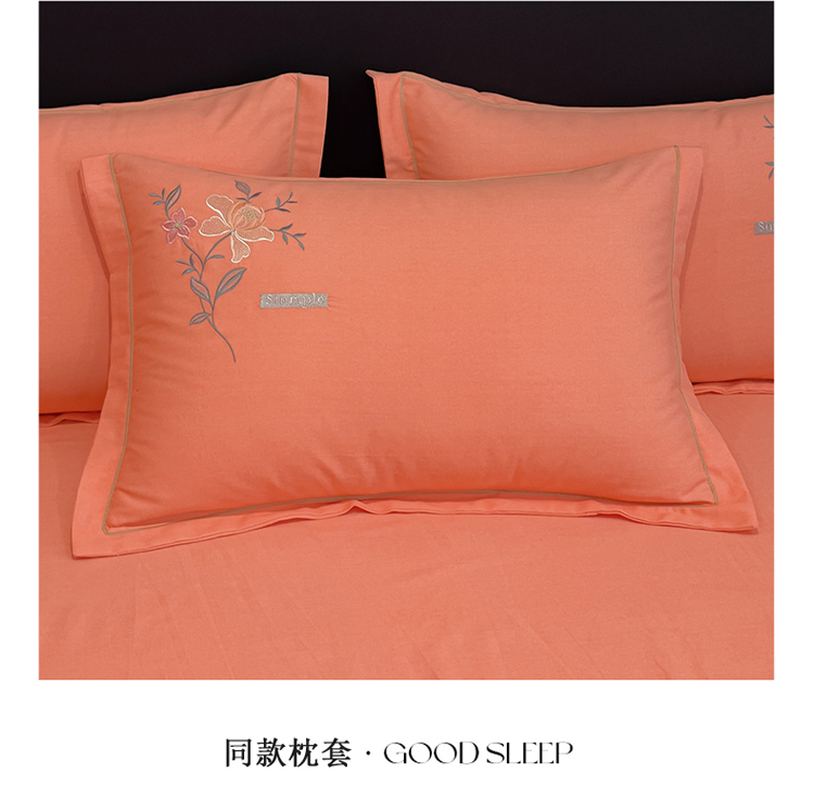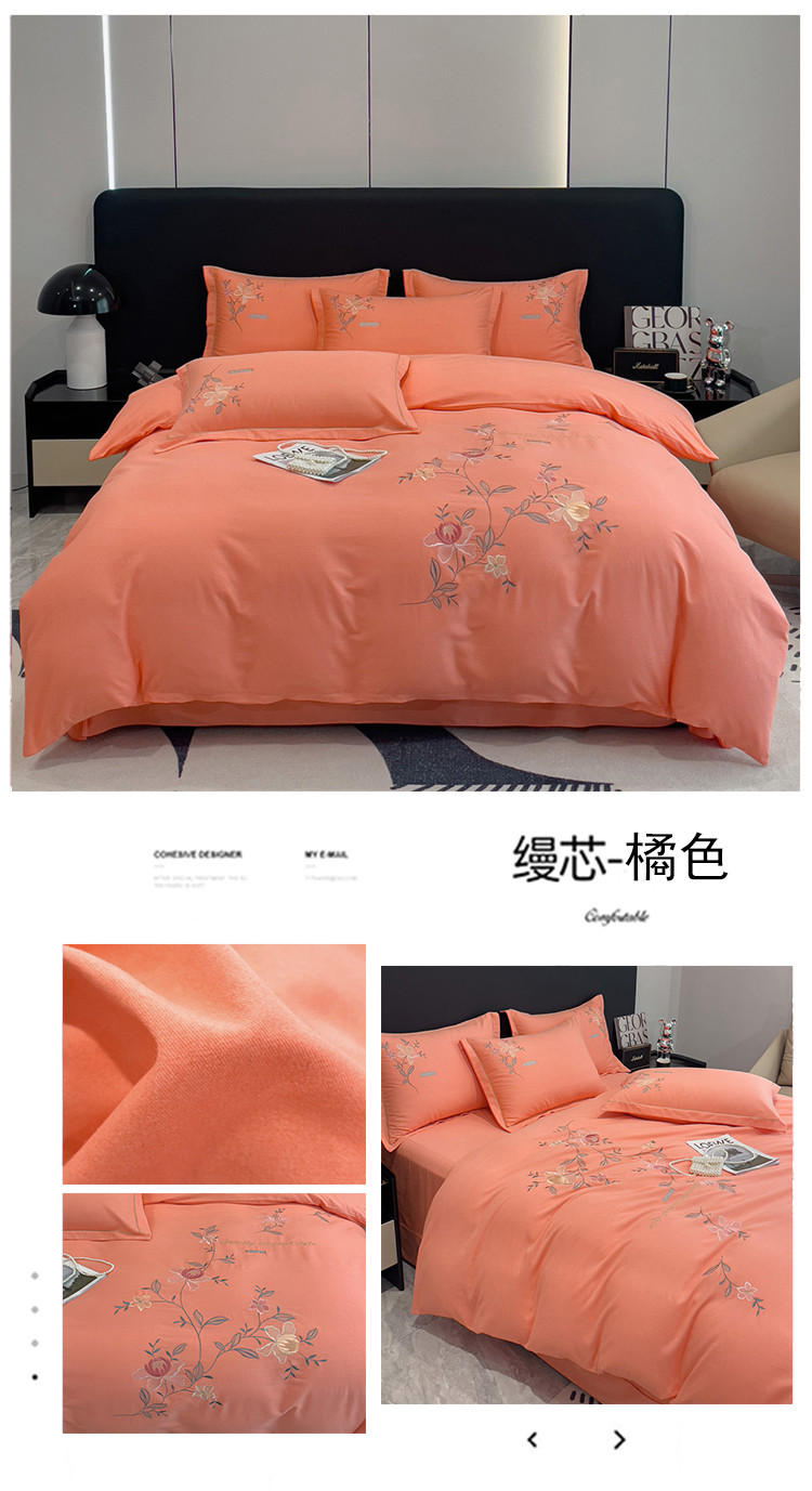 云锦2023秋冬新品全棉磨毛绣花四件套缦芯 缦芯橘