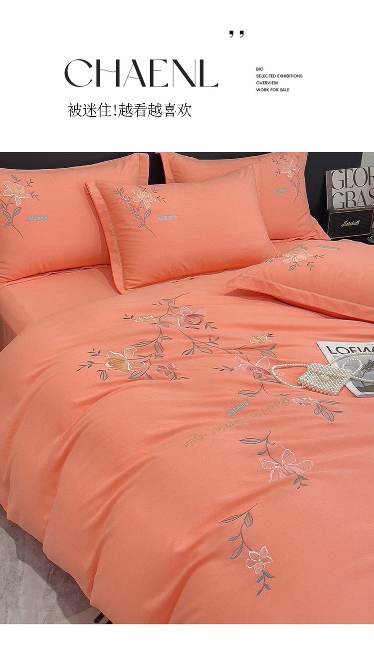 商品名称:云锦2023秋冬新品全棉磨毛绣花四件套缦芯 缦芯橘