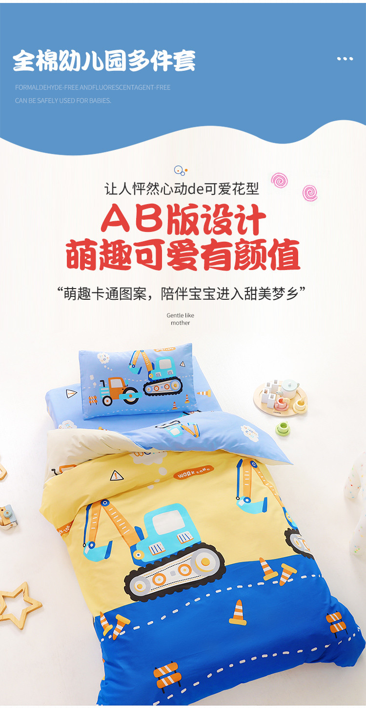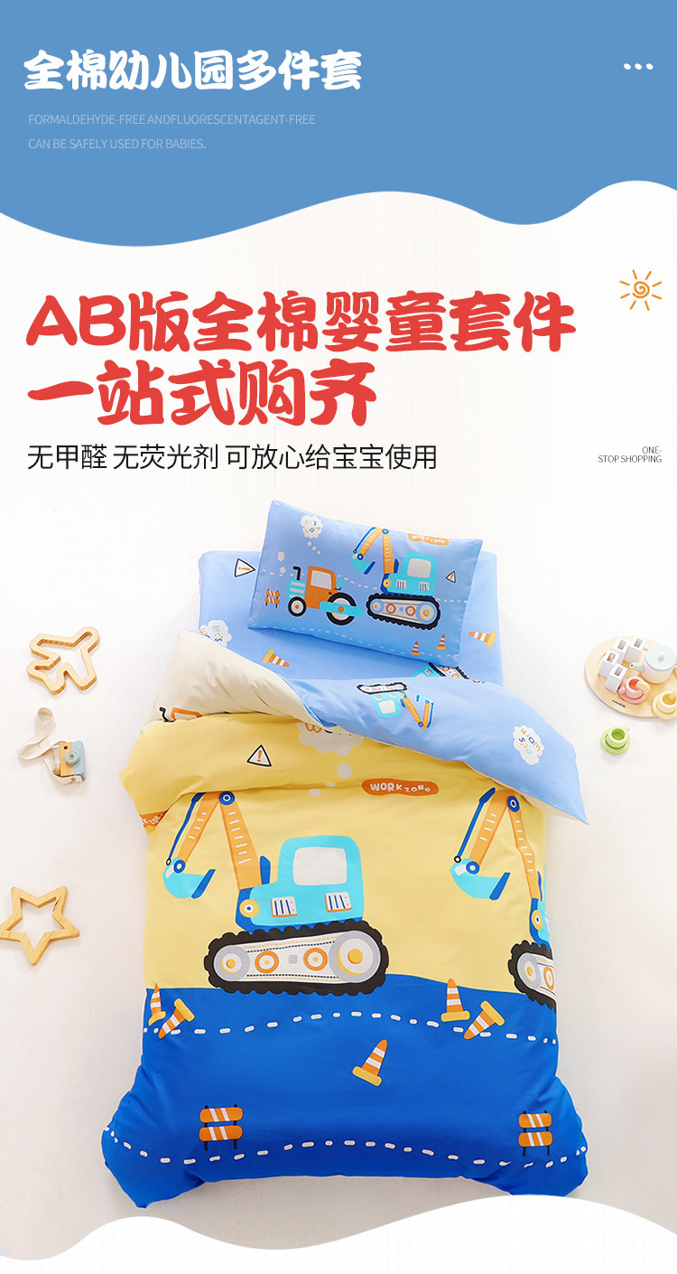当前位置: 91家纺网 > 商品网购 > 床品套件 > 三件套 > 嗨生活 2023新款全棉卡通儿童幼儿园三件套 开心挖机