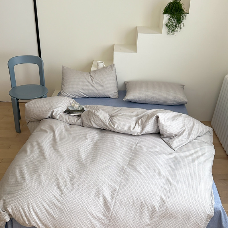 (总)昔可 2023新款全棉ins格子混搭系列四件套,ins简约绿格,粉蓝格,开心果格,学院格纹,粉绿格,海盐兰格,黄绿格,夏日蓝条,芝士黄条,紫芋泥芝士格