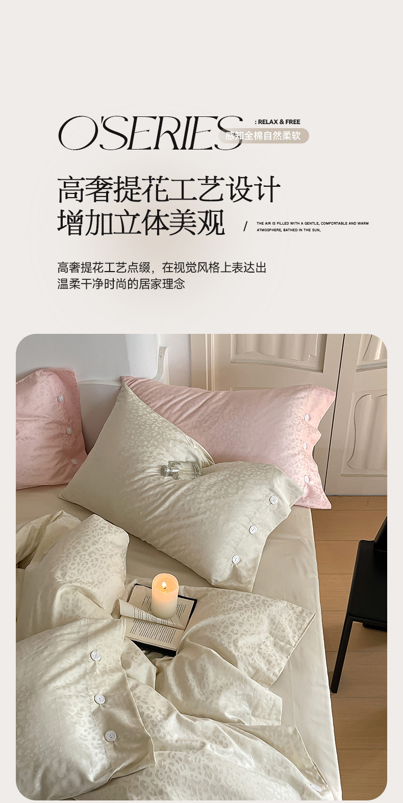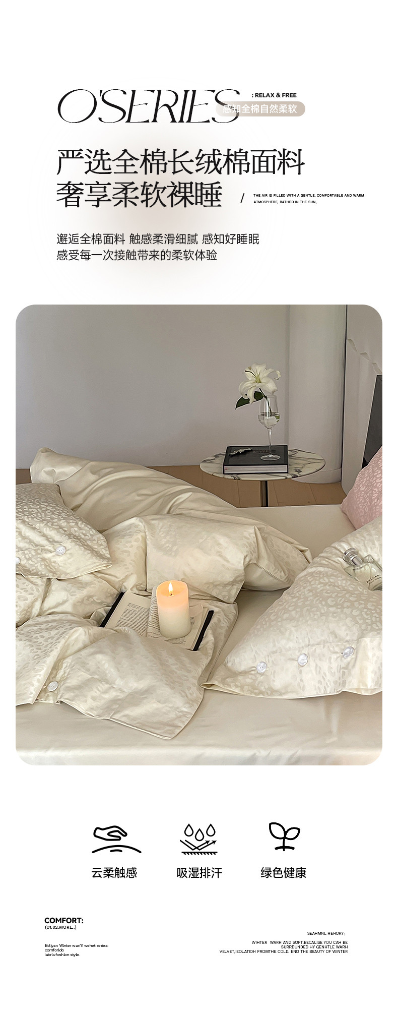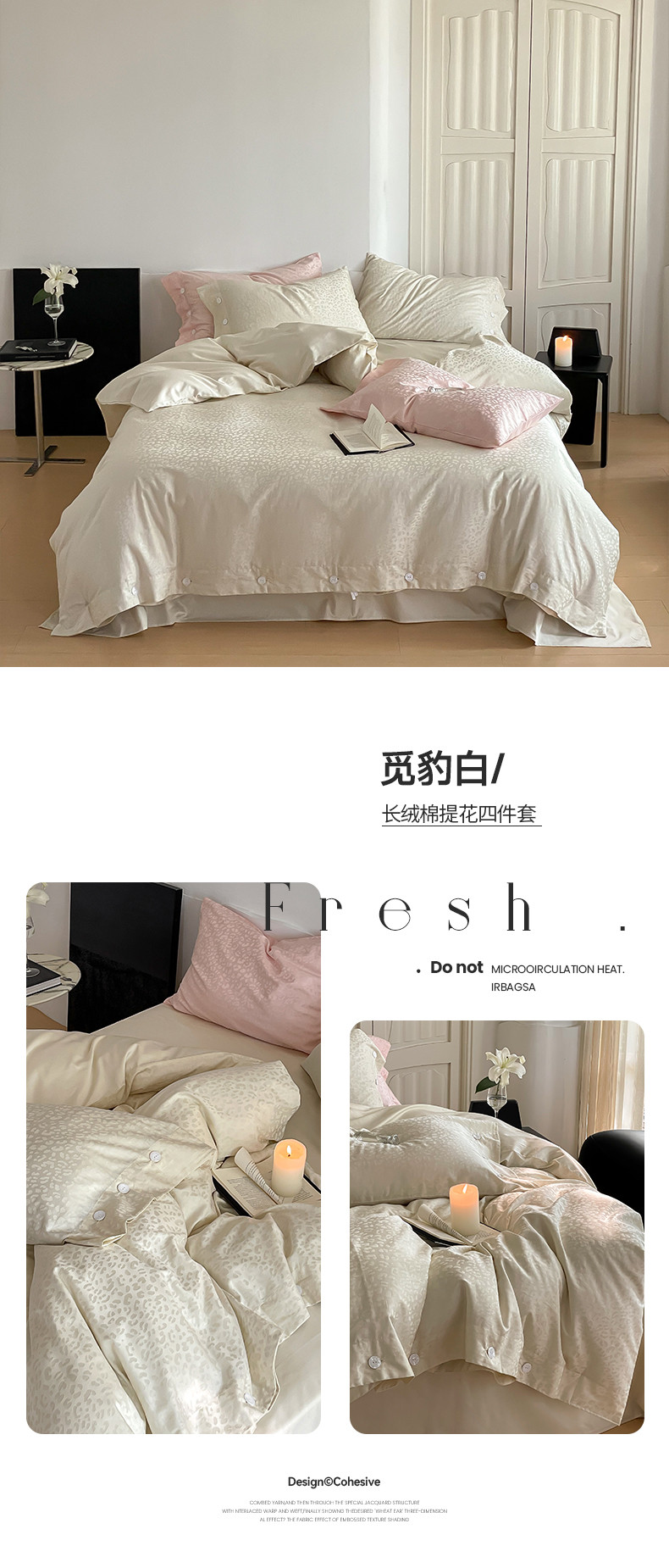 当前位置: 91家纺网 > 商品网购 > 床品套件 > 四件套 > 长绒棉四件套 > 华超针织 2023新款觅豹系列100支长绒棉提花四件套 觅豹白