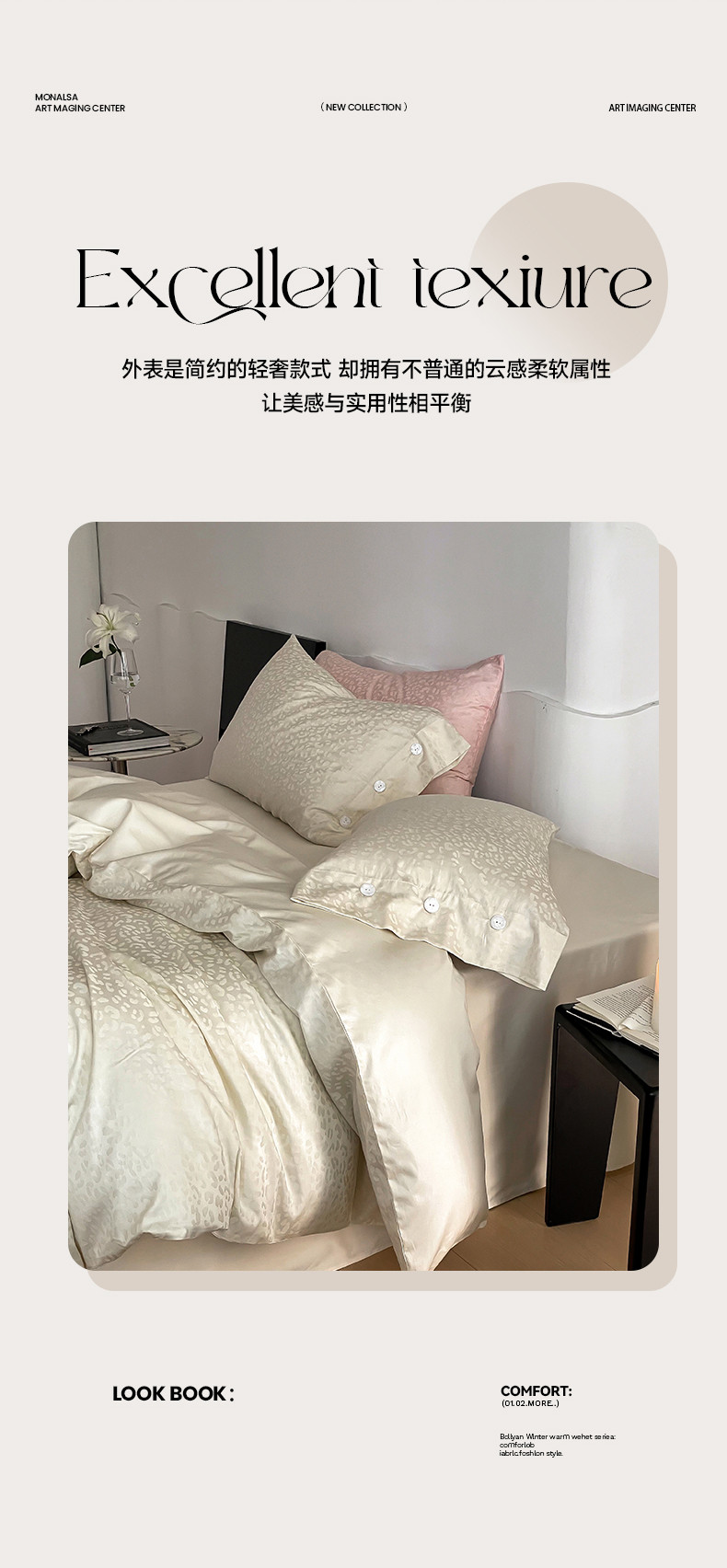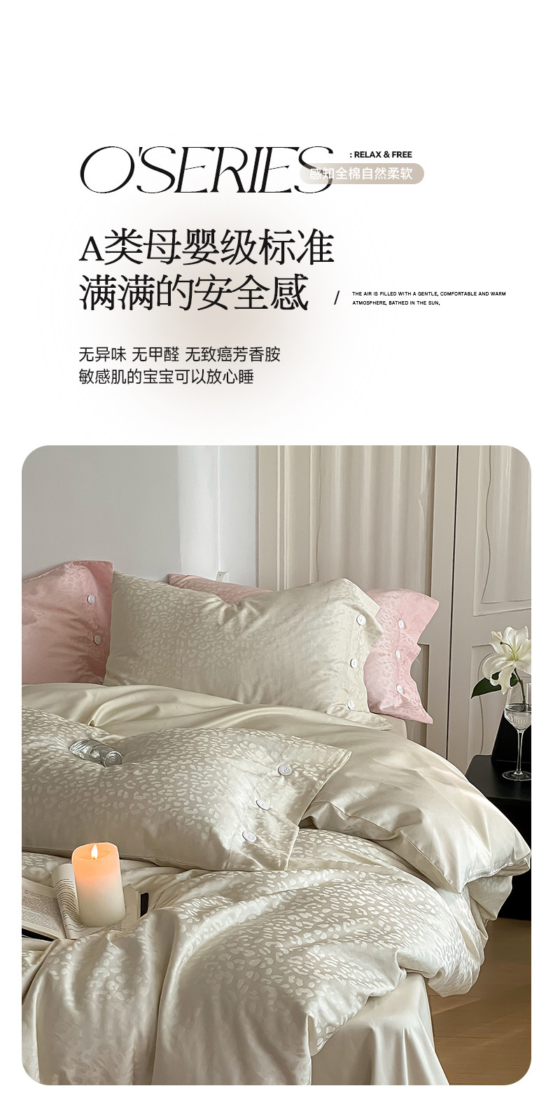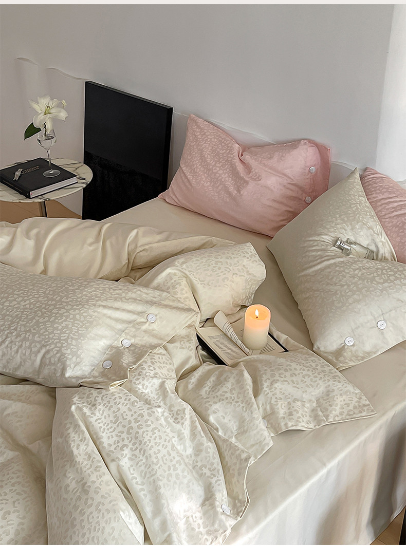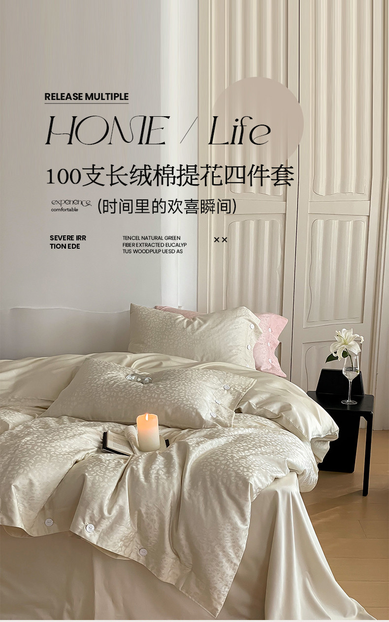 当前位置: 91家纺网 > 商品网购 > 床品套件 > 四件套 > 长绒棉四件套 > 华超针织 2023新款觅豹系列100支长绒棉提花四件套 觅豹白