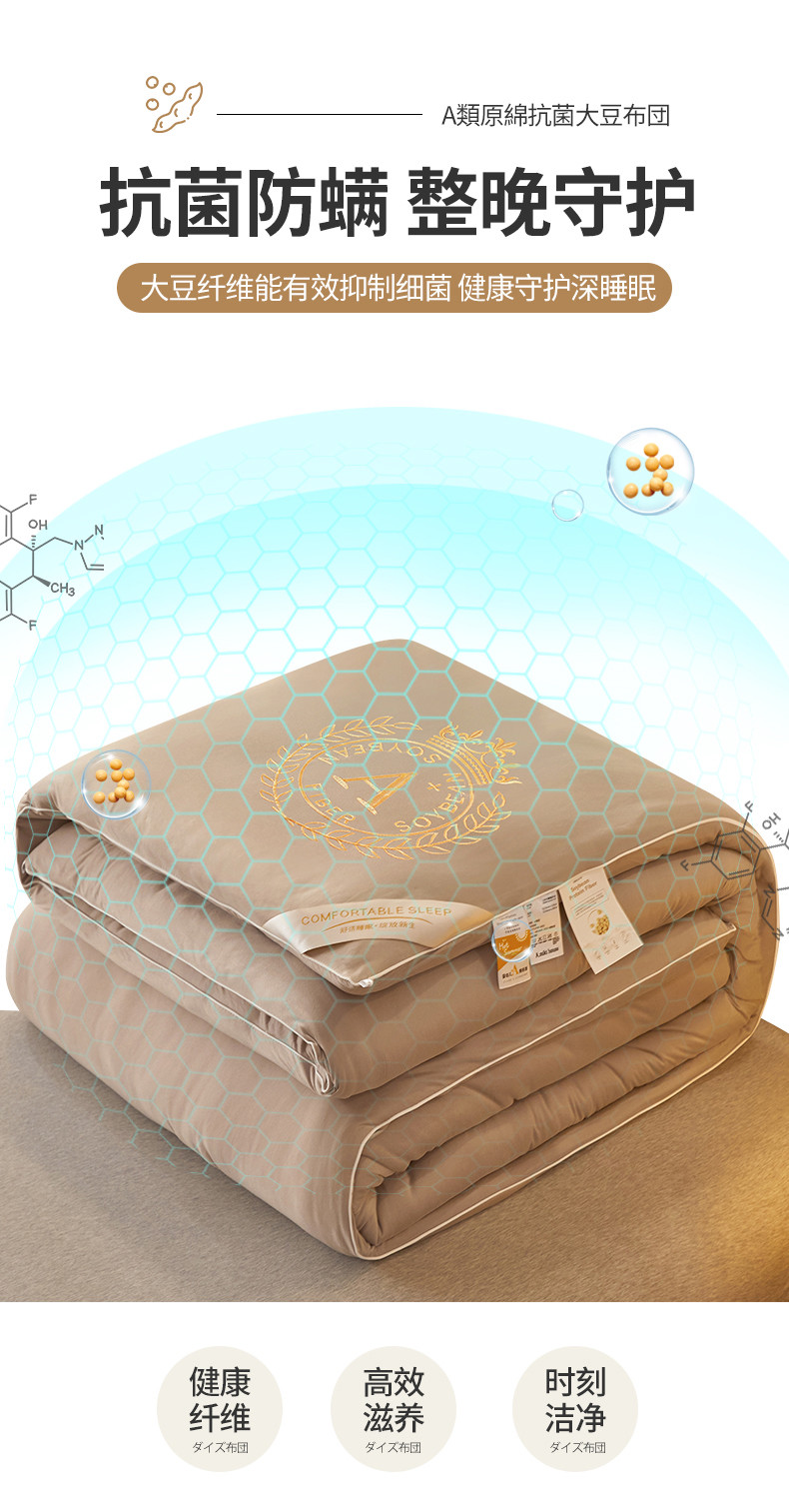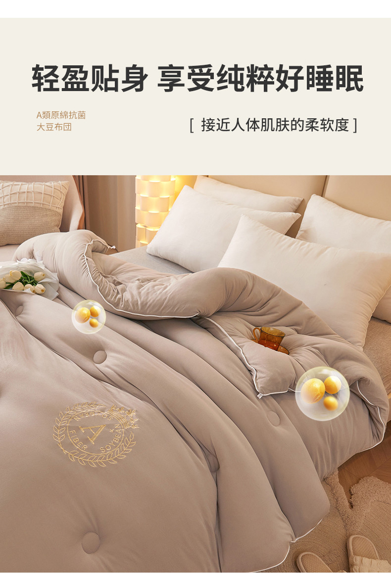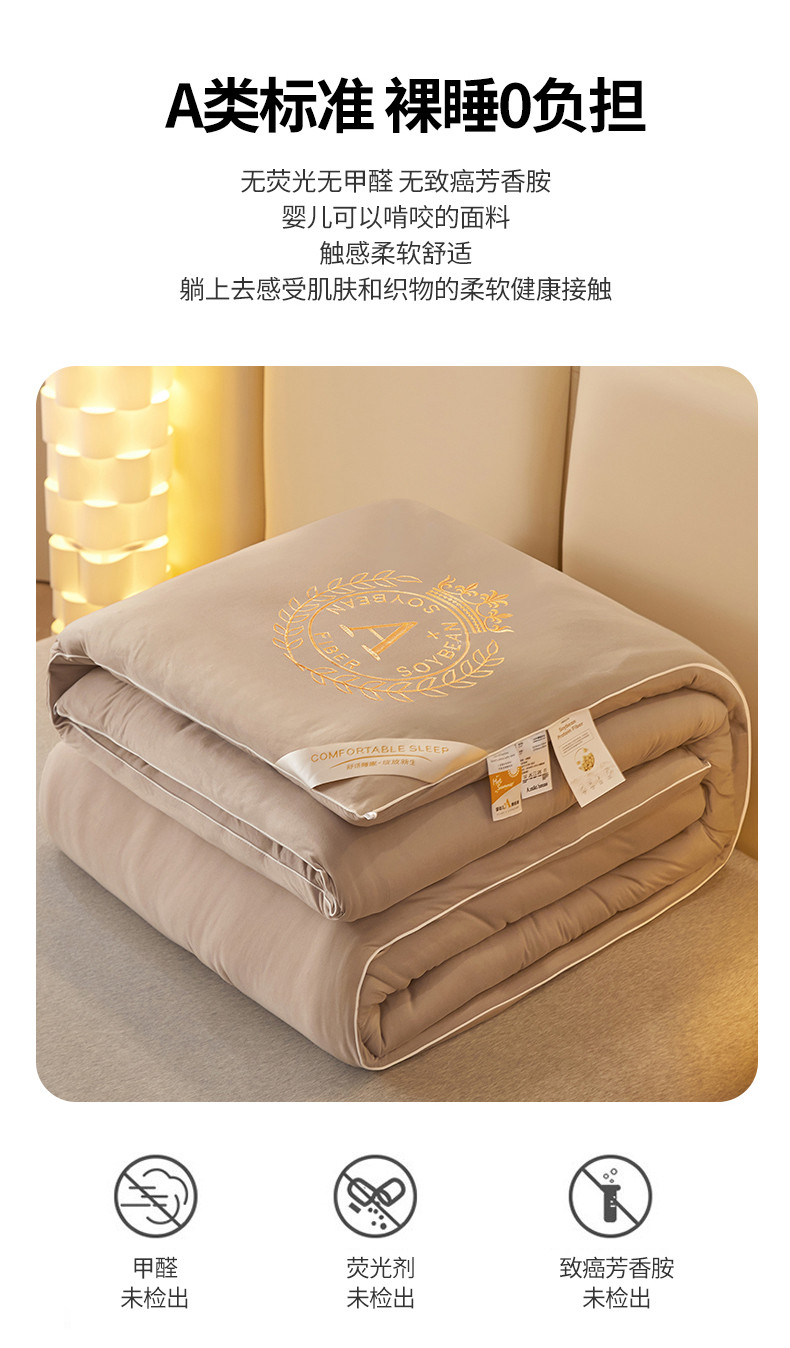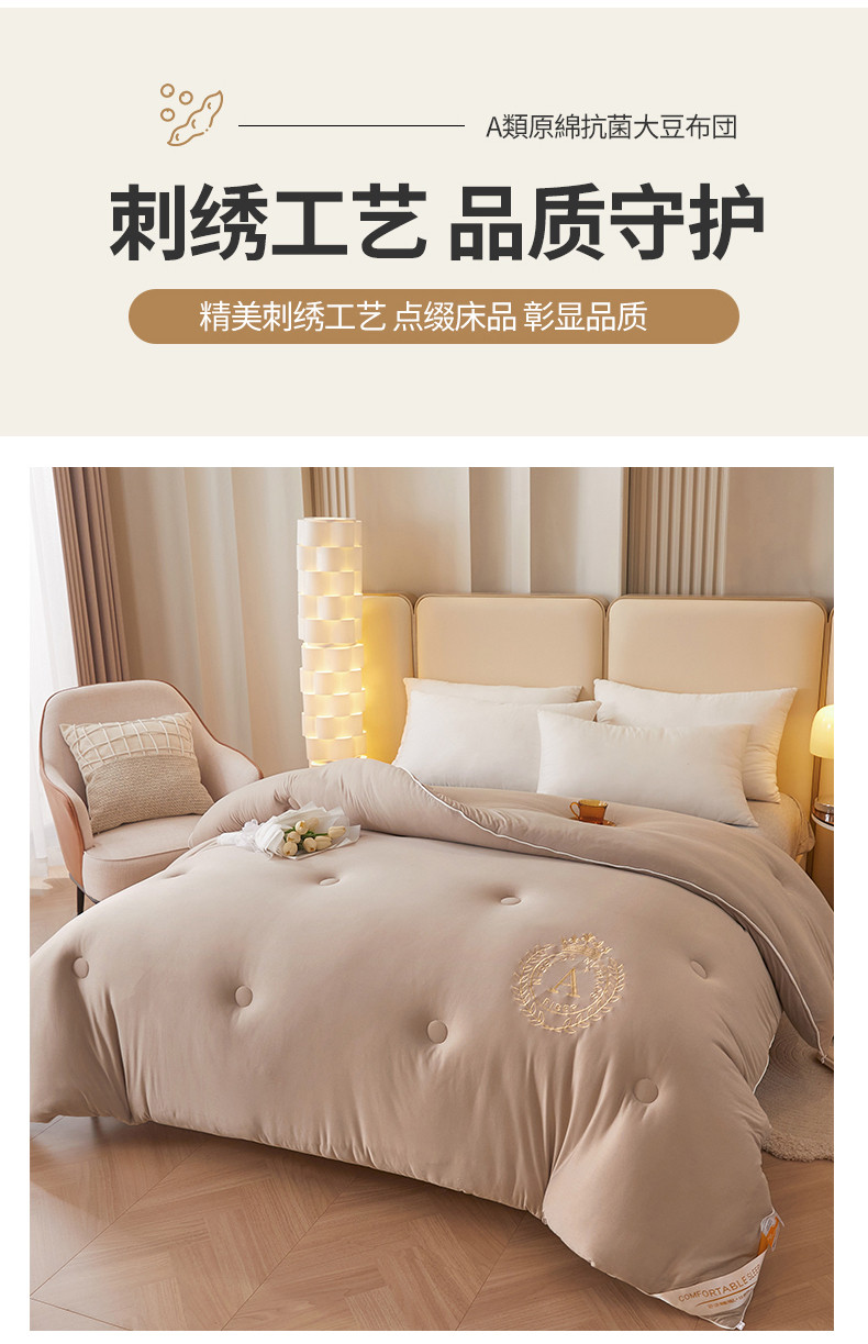 商品名称:恒畅 2023新款A类针织棉大豆刺绣秋冬被冬被 浅咖色