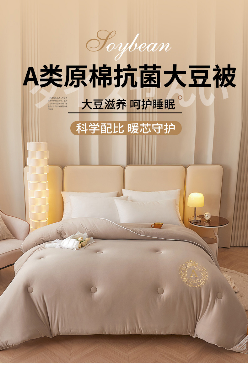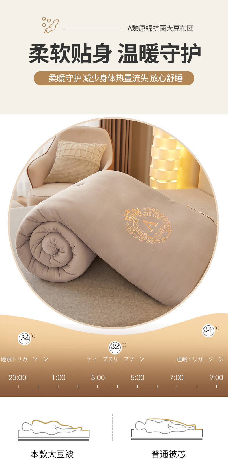 (总)恒畅 2025新款A类针织棉大豆被系列,冬被-抹茶绿,冬被-豆沙粉,冬被-奶昔白