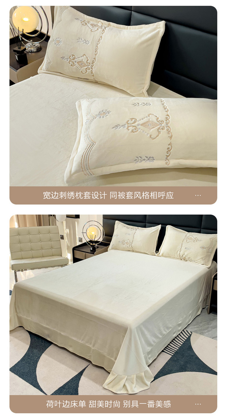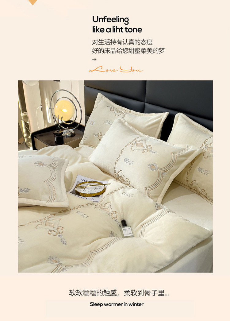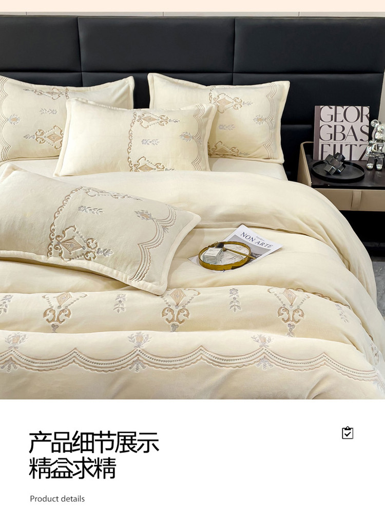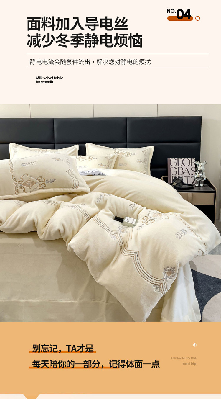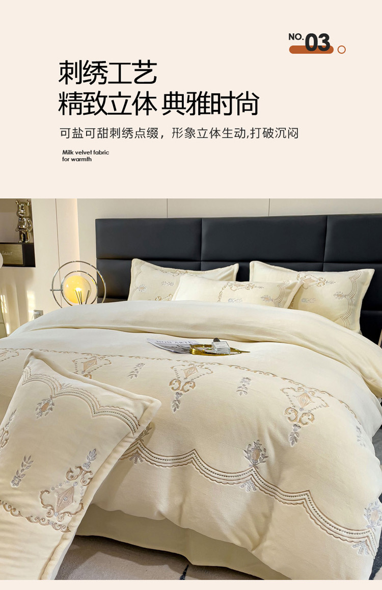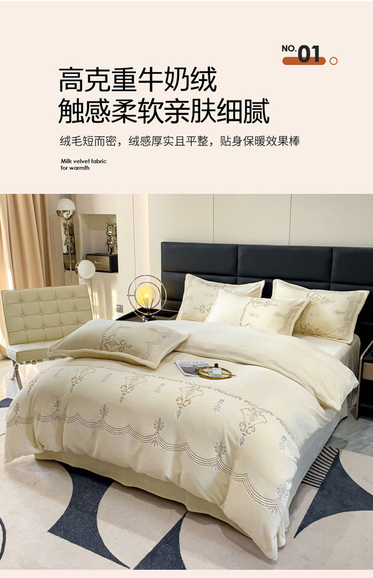 (总)星尚家纺 2024全消光A类230g牛奶绒绣花保暖绒四件套-豹纹,卡其色,奶昔白,时尚灰,芝芝粉