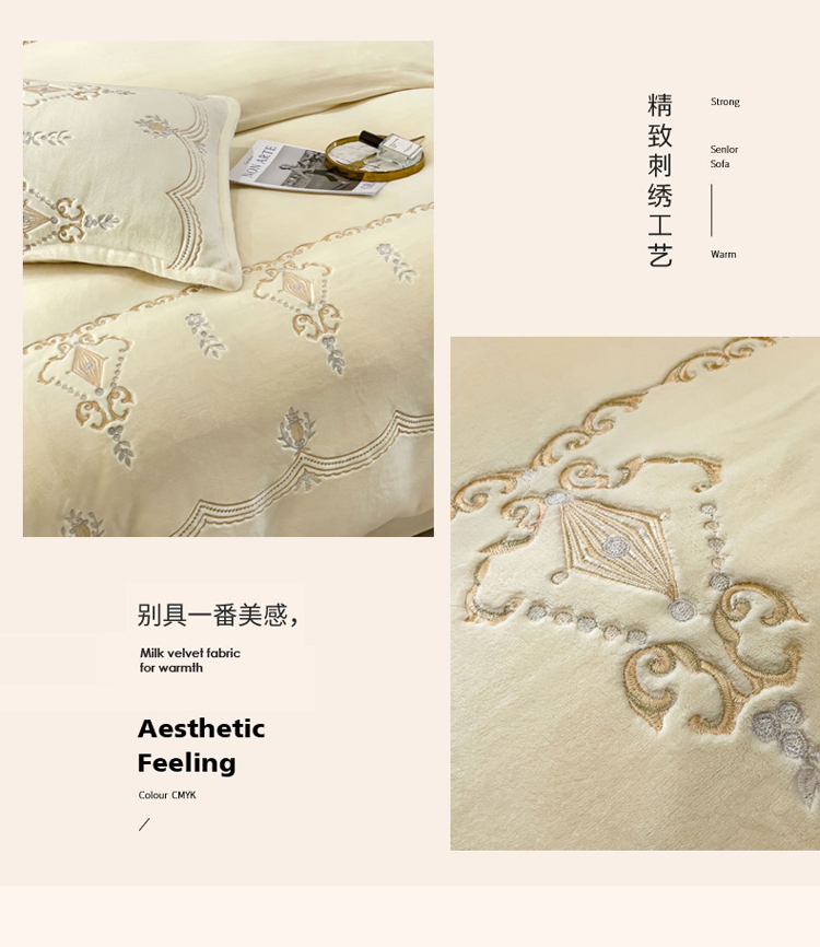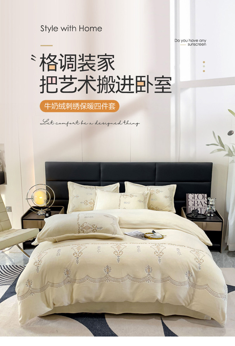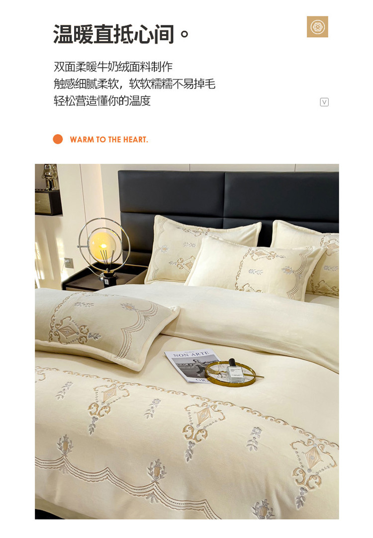 (总)星尚家纺 2025新款全消光A类母婴级加厚保暖牛奶绒绣花刺绣四件套,豆沙粉,卡其棕,梵星绿,孔雀蓝,高级灰,香芋紫,樱花粉