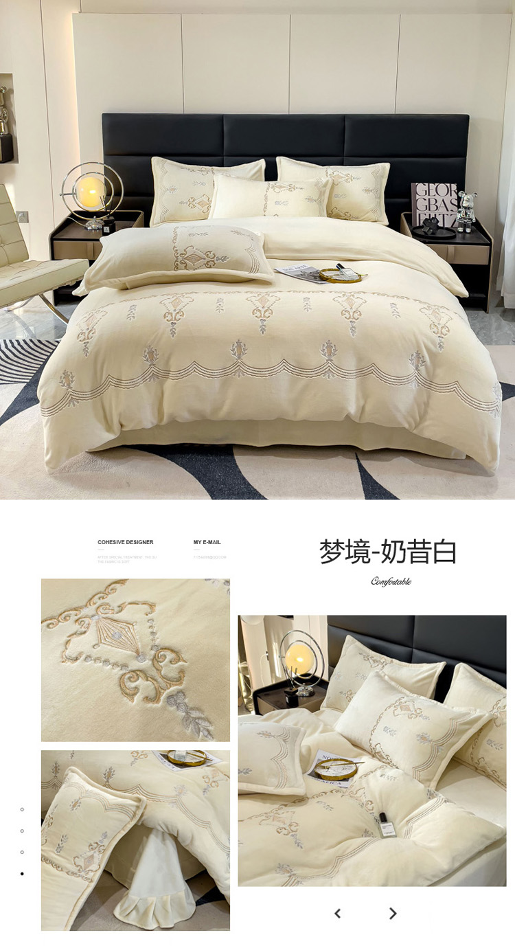 (总)星尚家纺 2024新款全消光230g牛奶绒刺绣保暖四件套-花漾,晨雾绿,豆沙粉,樱花粉