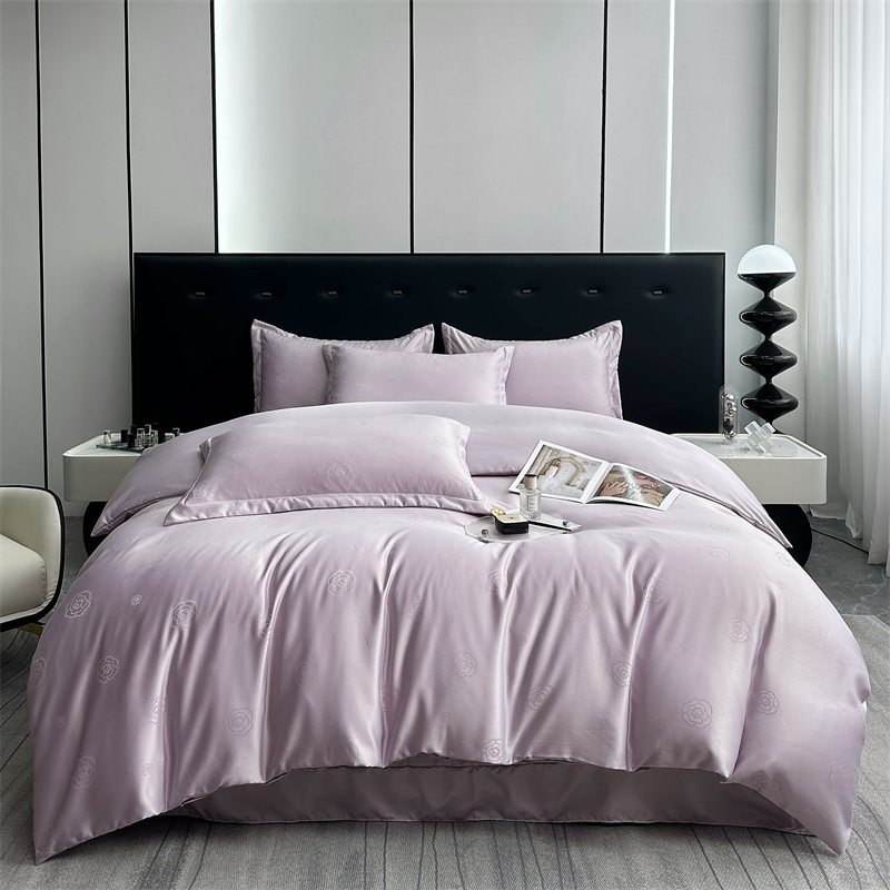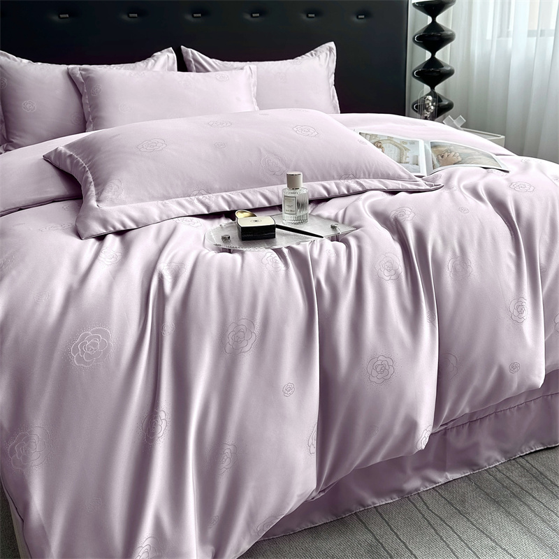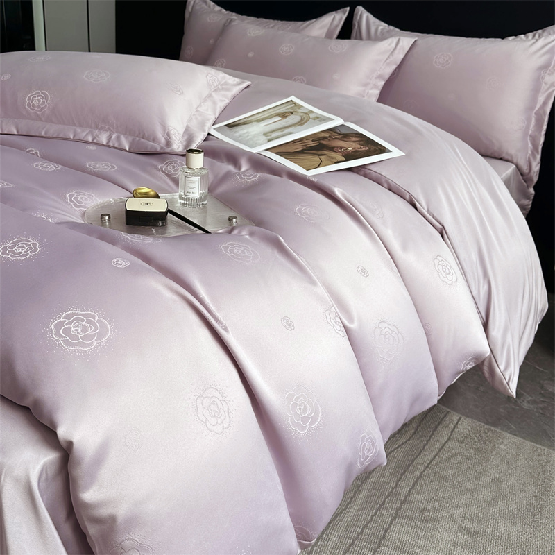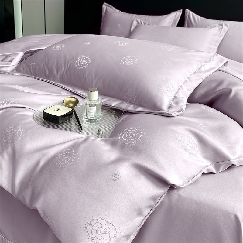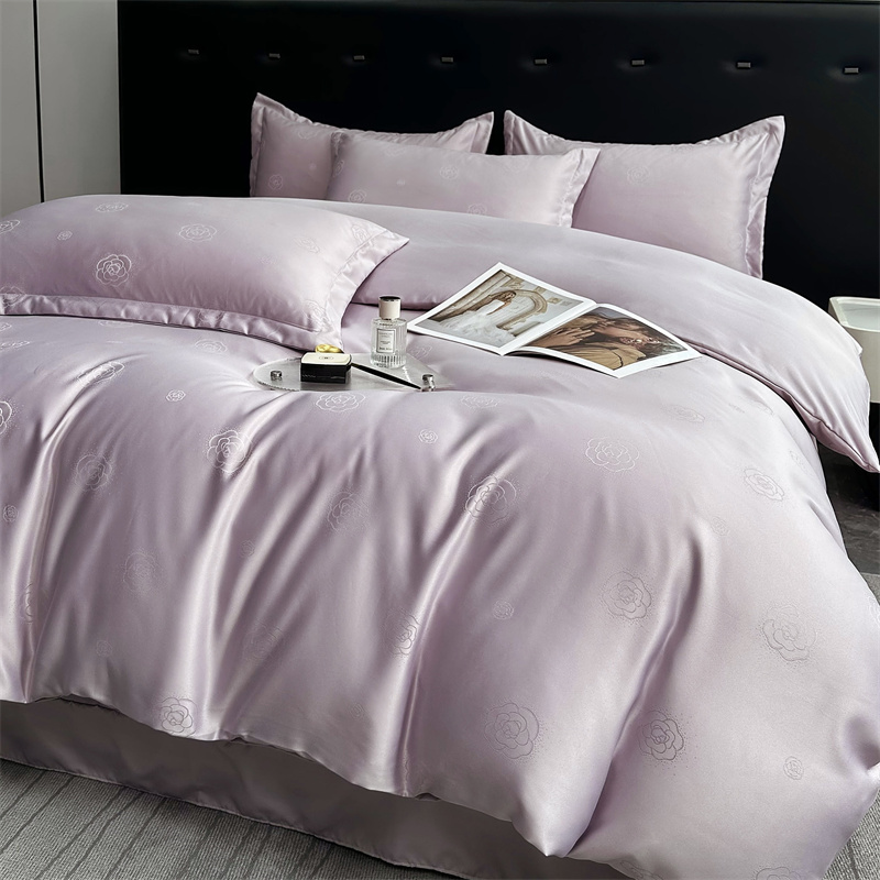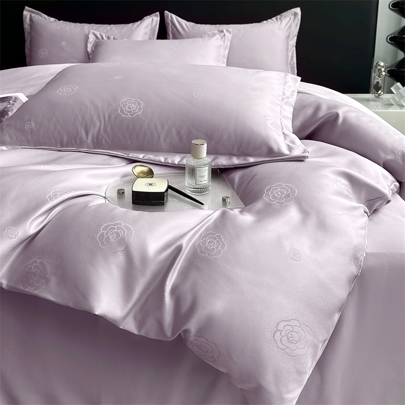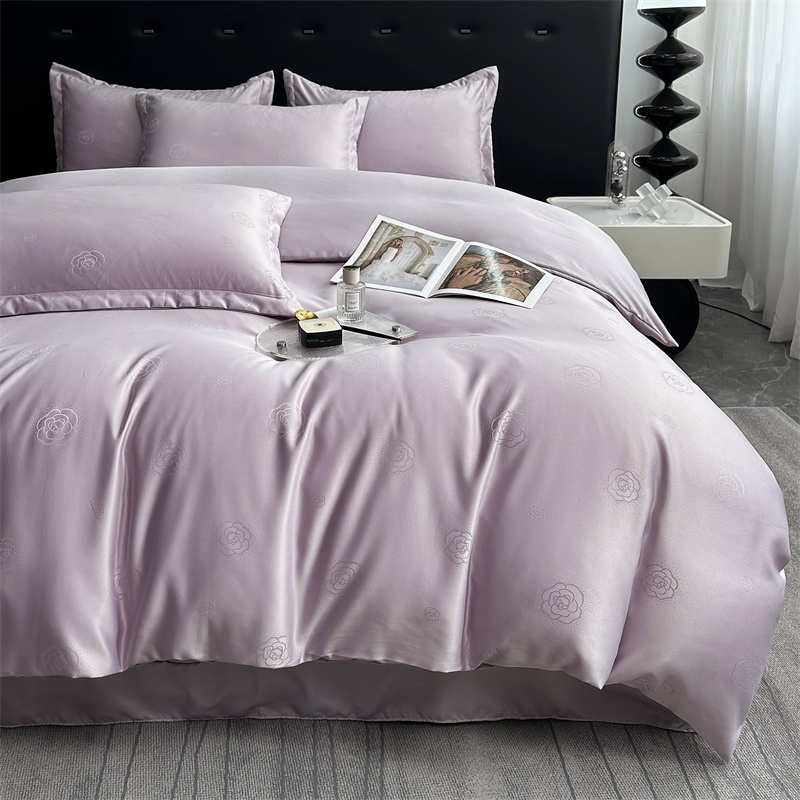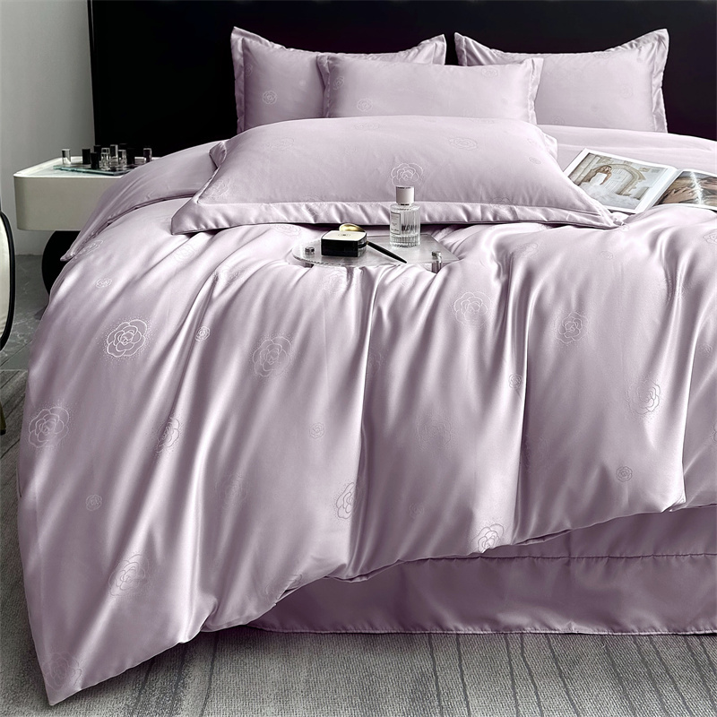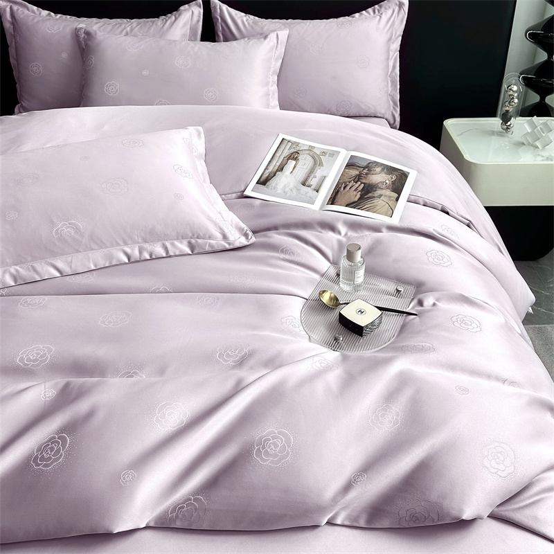 商品名称:宅家居 2023新款轻奢高精密贡缎提花臻品真丝四件套 山茶花-浅紫