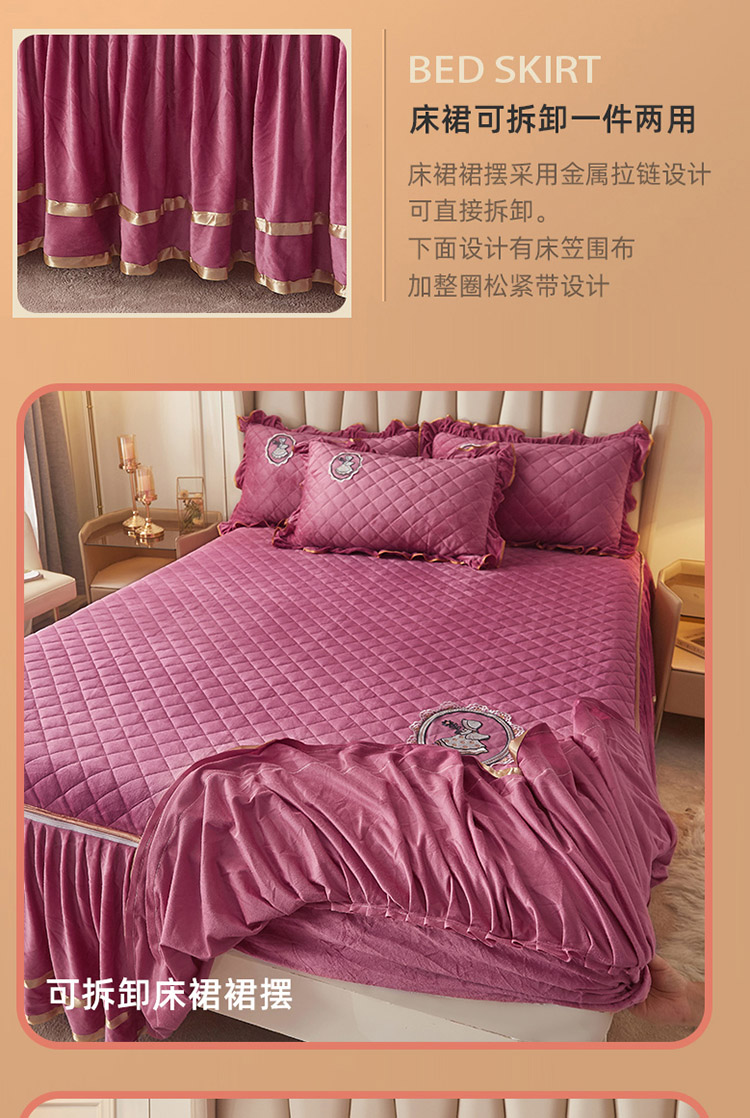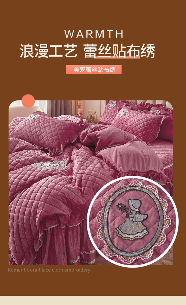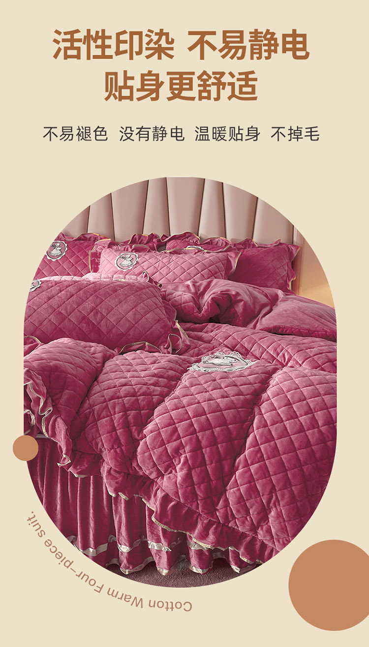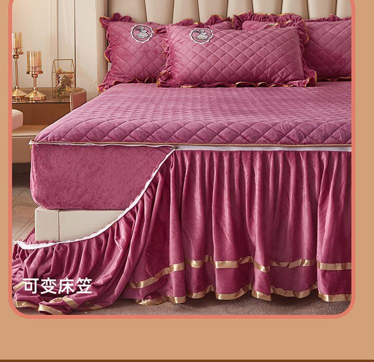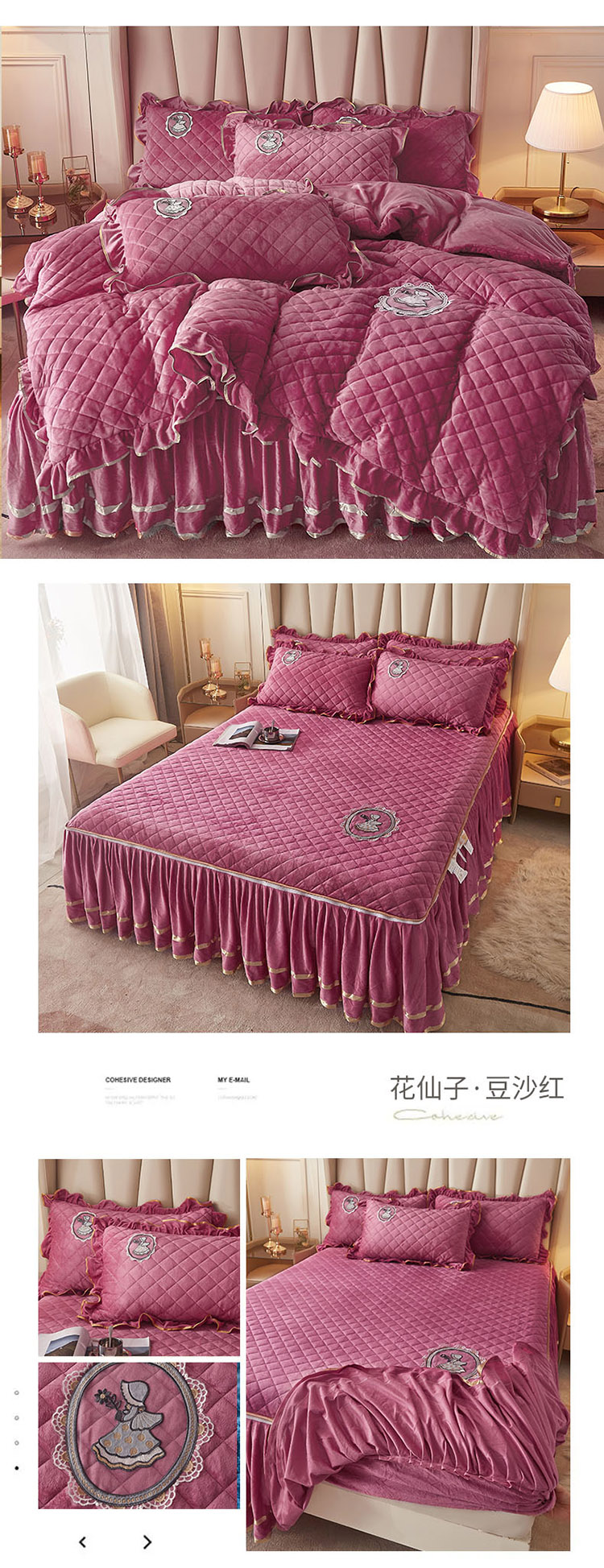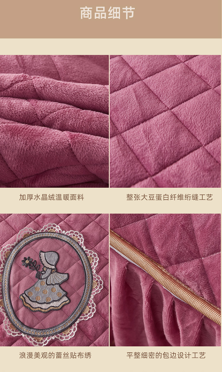 当前位置: 91家纺网 > 商品网购 > 床品套件 > 四件套 > 水晶绒四件套 > 恋尚 2023新款水晶绒大豆蛋白棉床笠床裙可脱卸四件套花仙子 花仙子豆沙红