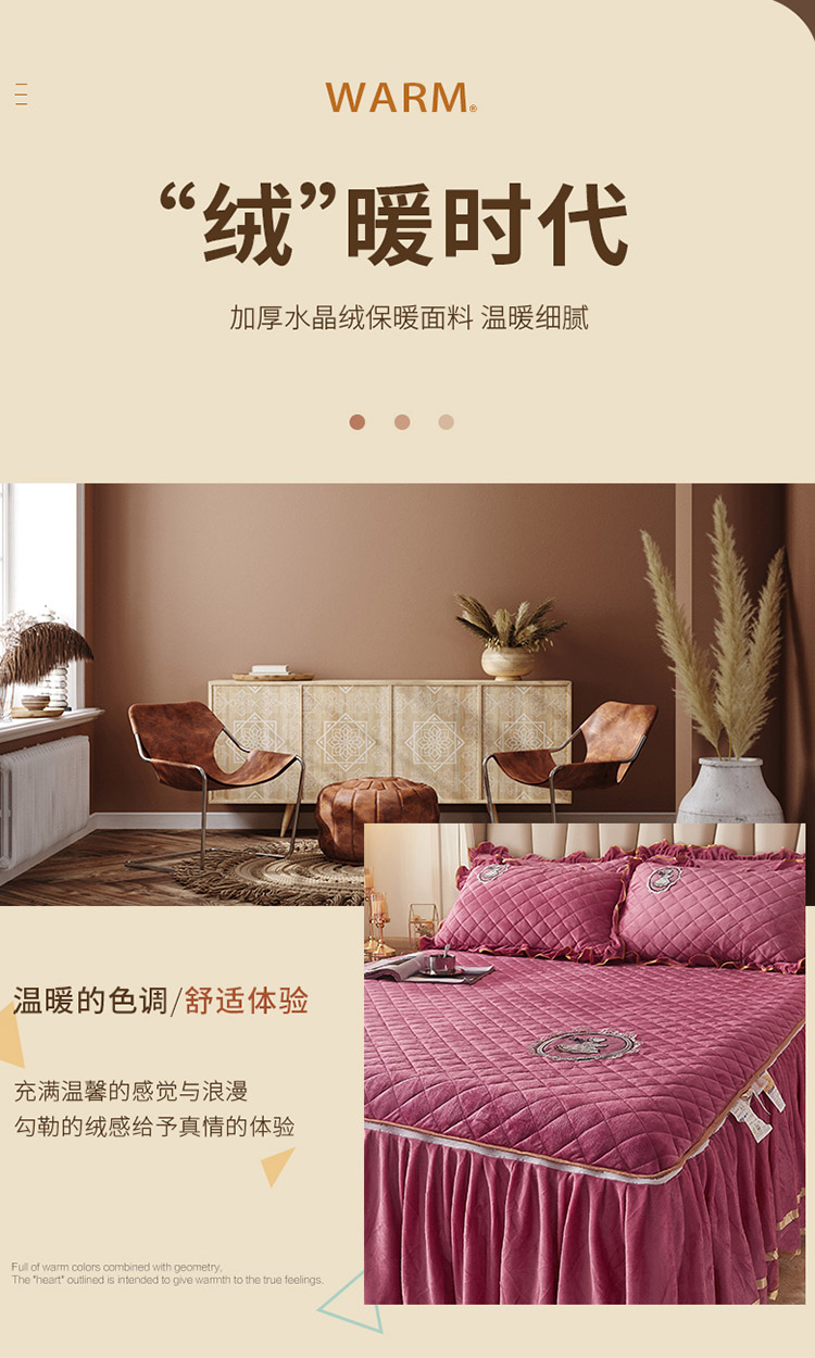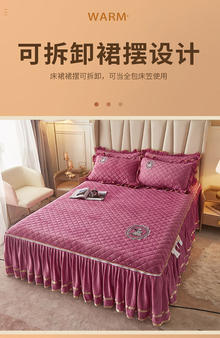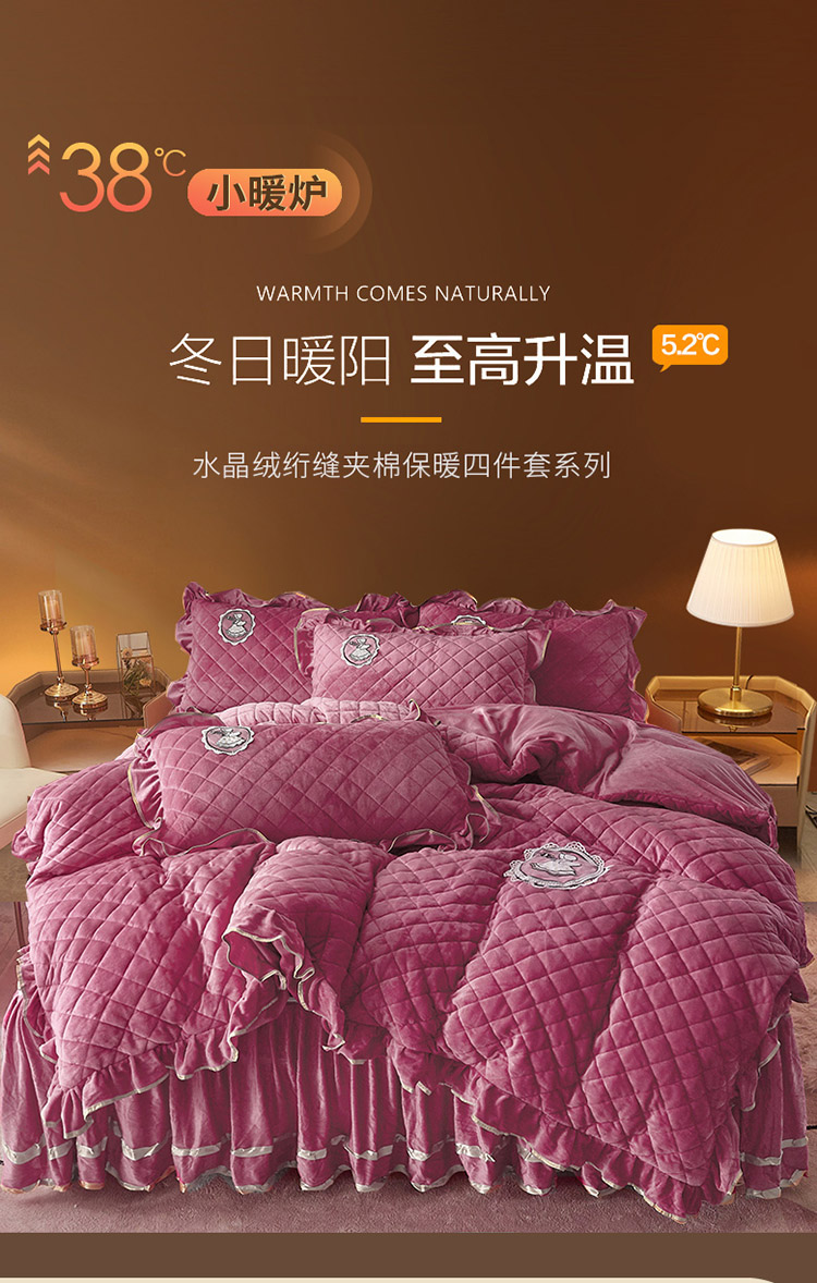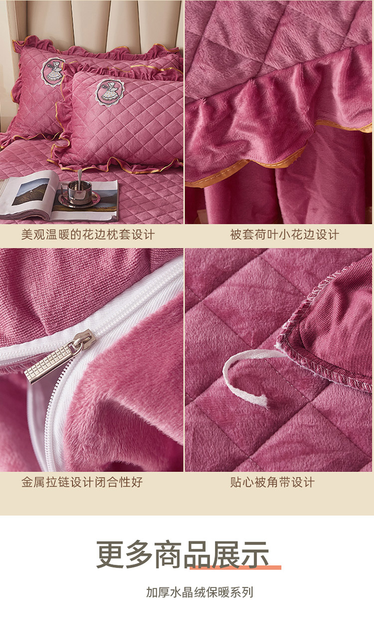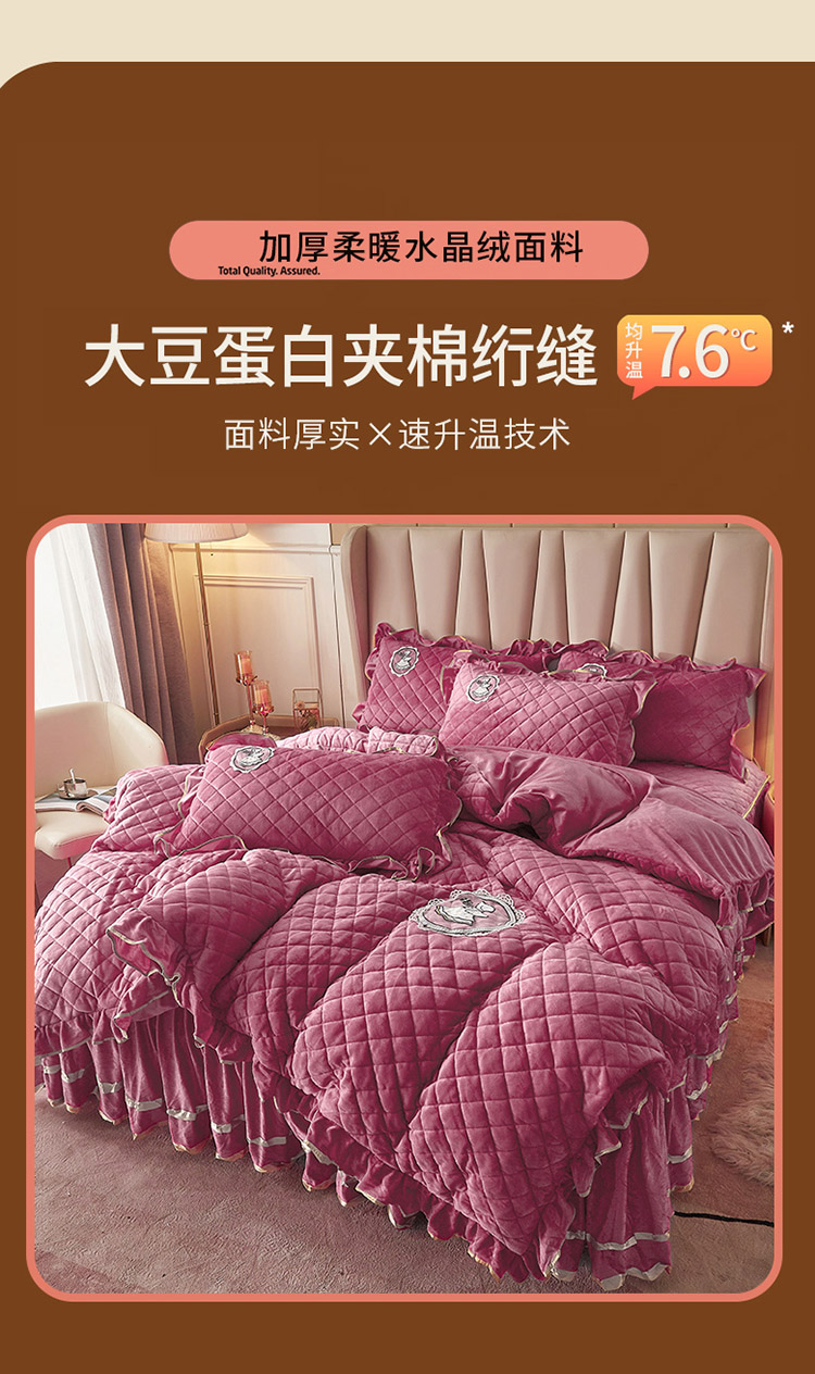 当前位置: 91家纺网 > 商品网购 > 床品套件 > 四件套 > 水晶绒四件套 > 恋尚 2023新款水晶绒大豆蛋白棉床笠床裙可脱卸四件套花仙子 花仙子豆沙红