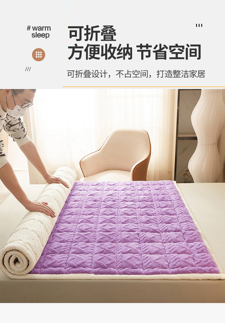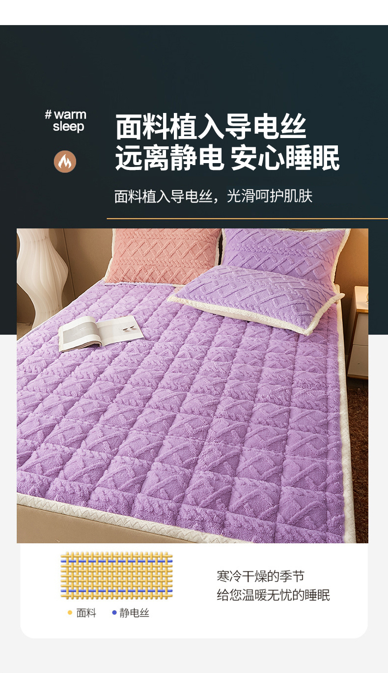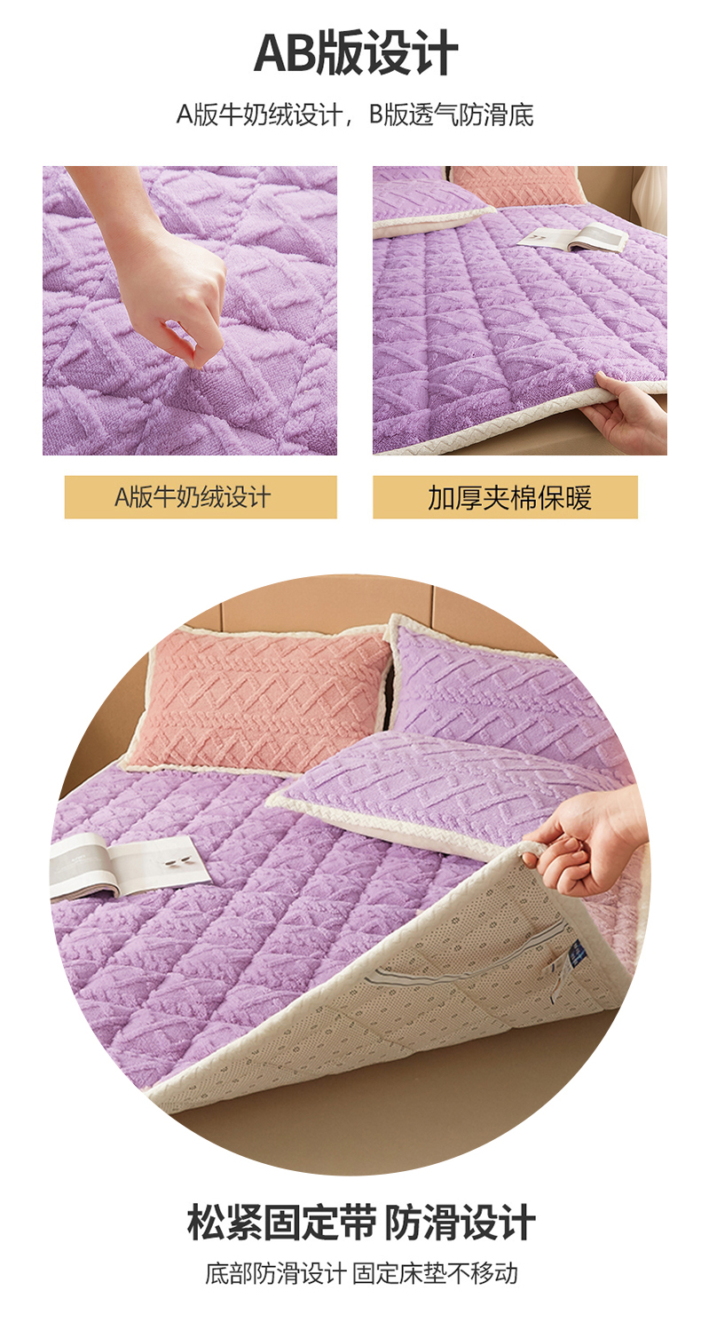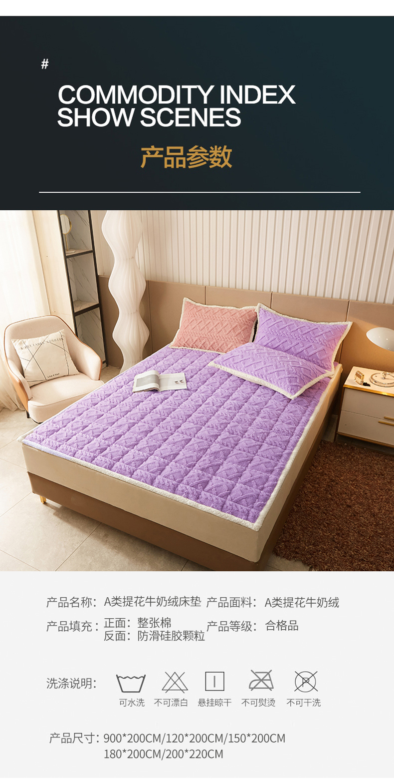 商品名称:东宇 2024新款A类提花牛奶绒床垫 莫奈紫