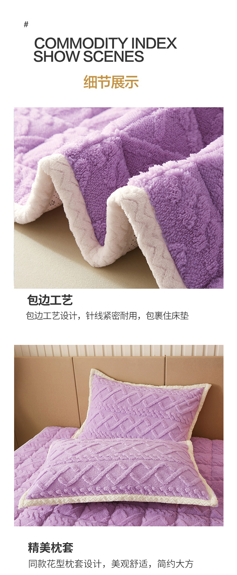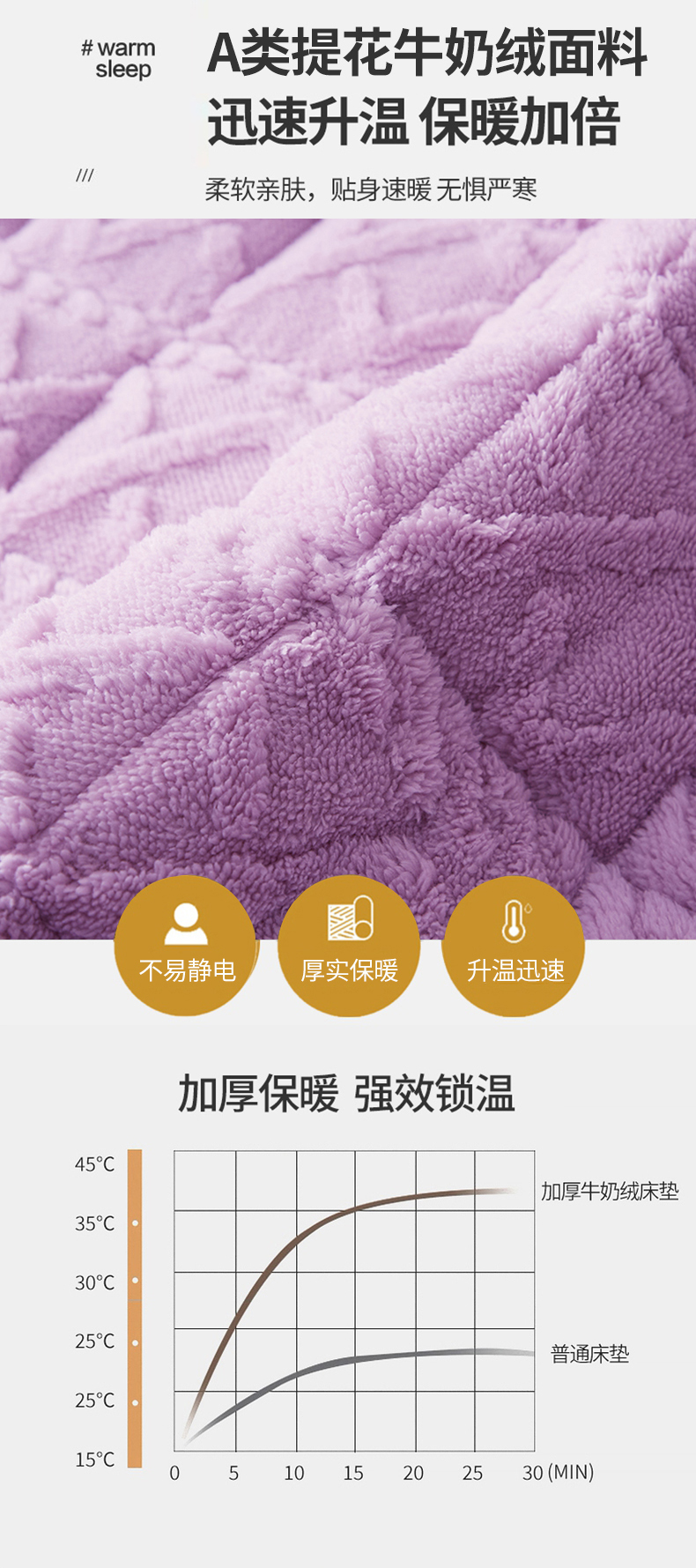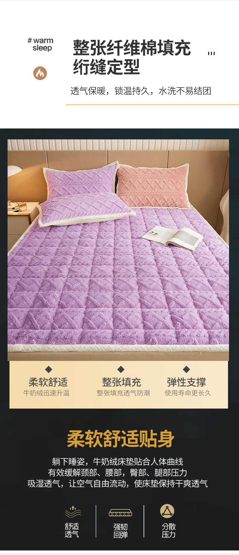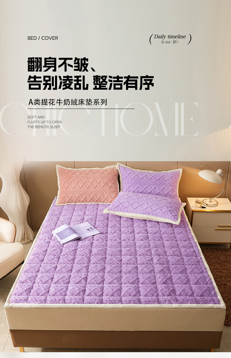 商品名称:东宇 2024新款A类提花牛奶绒床垫 莫奈紫