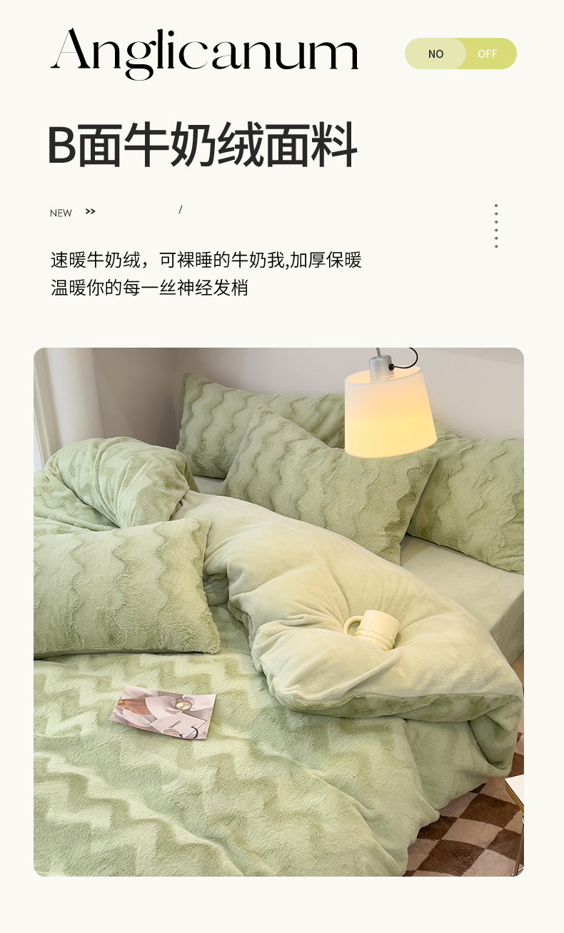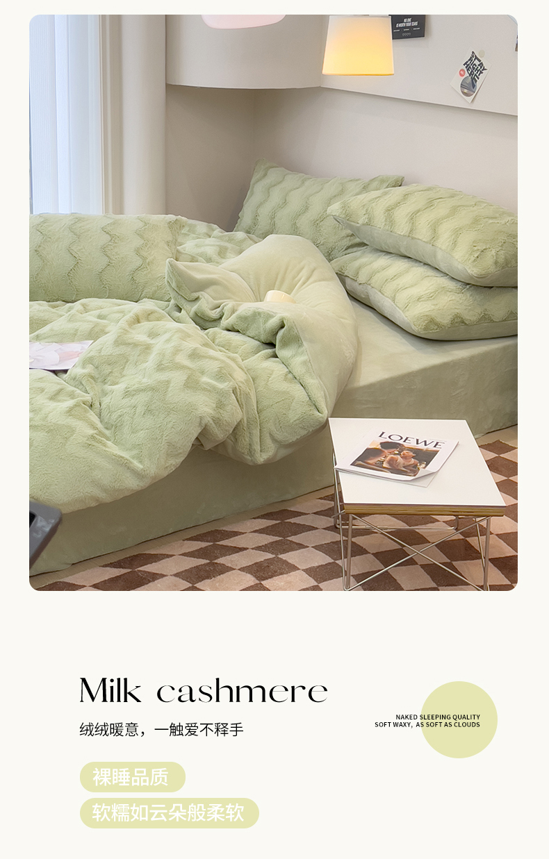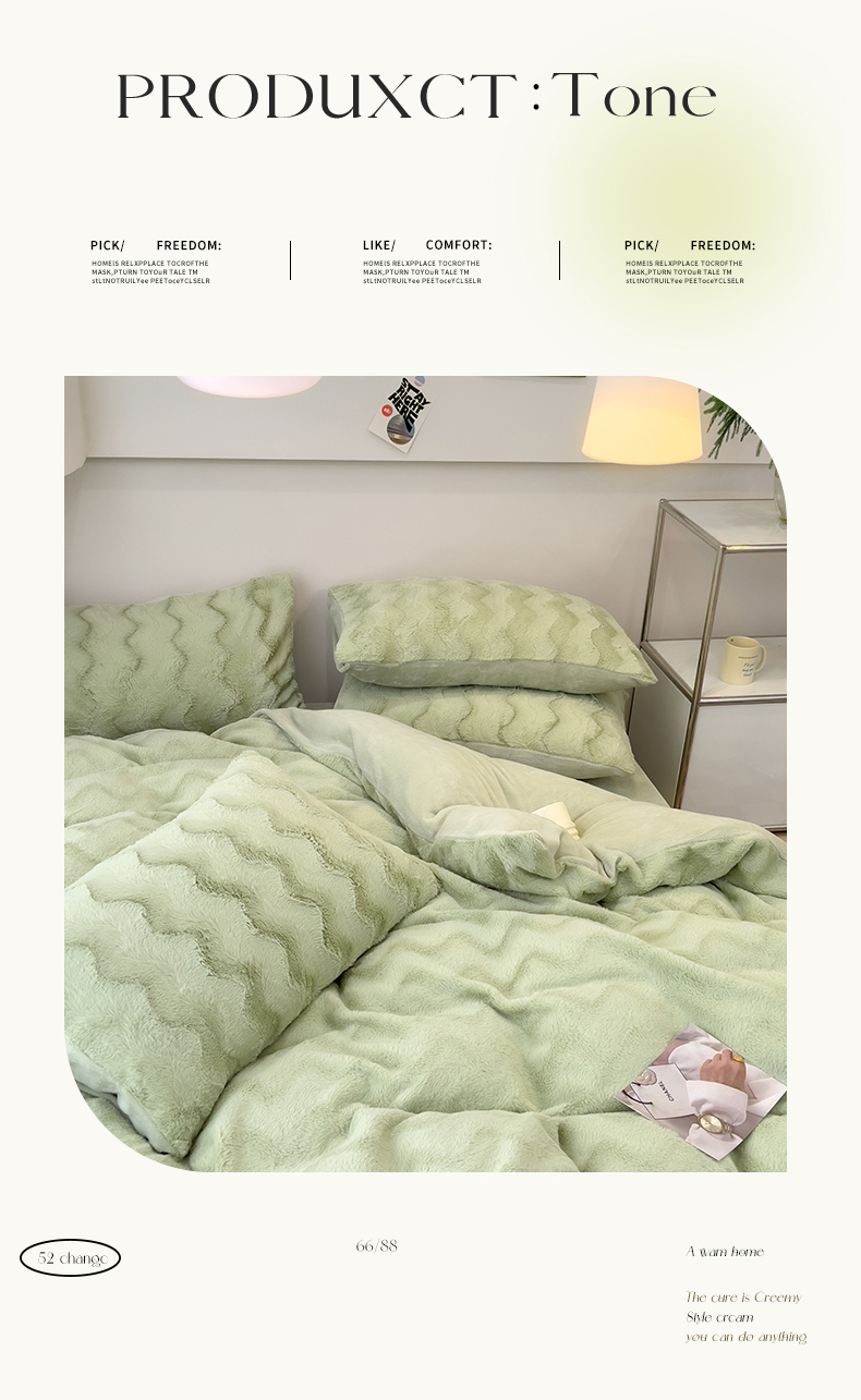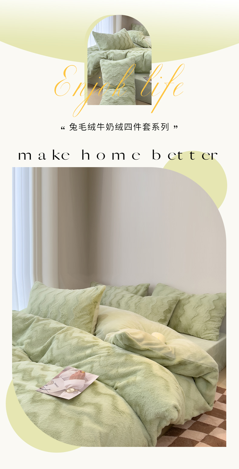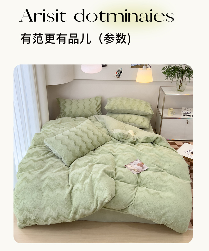 当前位置: 91家纺网 > 商品网购 > 床品套件 > 四件套 > 牛奶绒四件套 > 韩都 2023新款直播爆款320克A类波浪兔毛绒立体剪花纯色牛奶绒四件套-暖冬 暖冬-清新绿