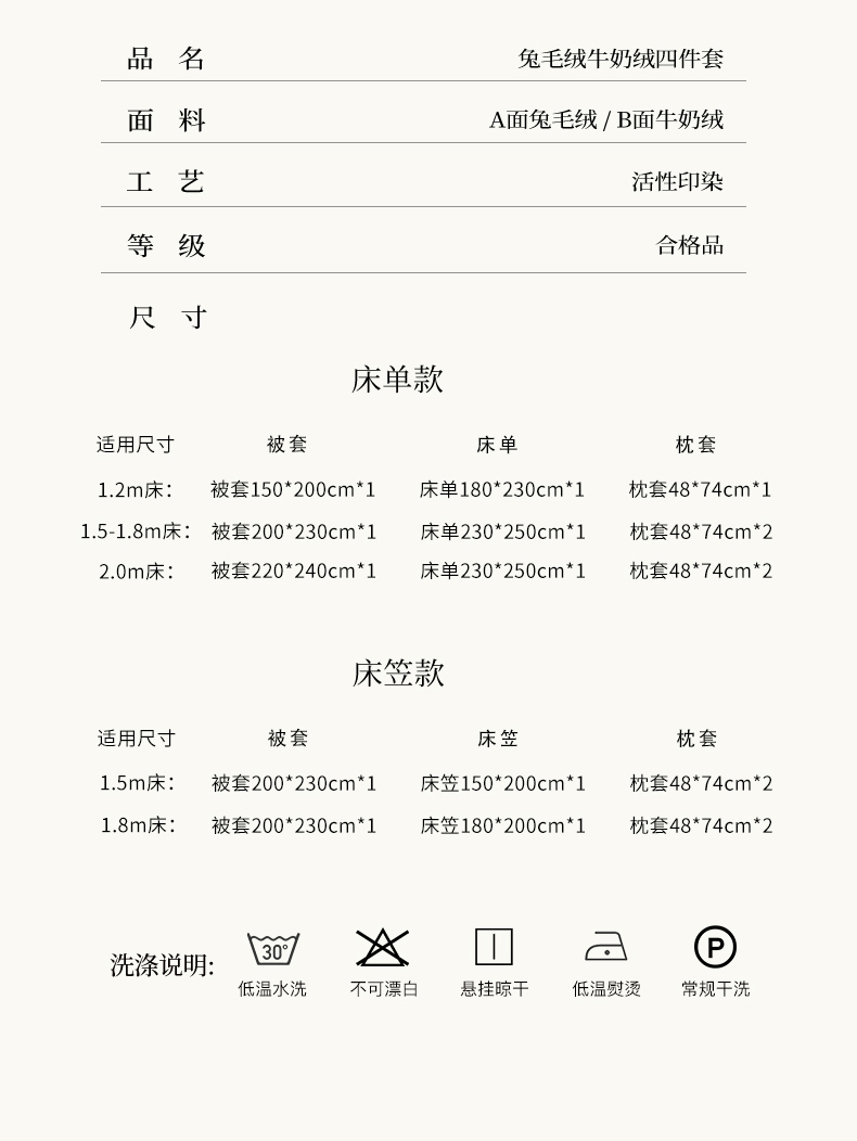 1.5床笠款:被套200x230 床笠150x200 枕套2只 | ¥140.00 |