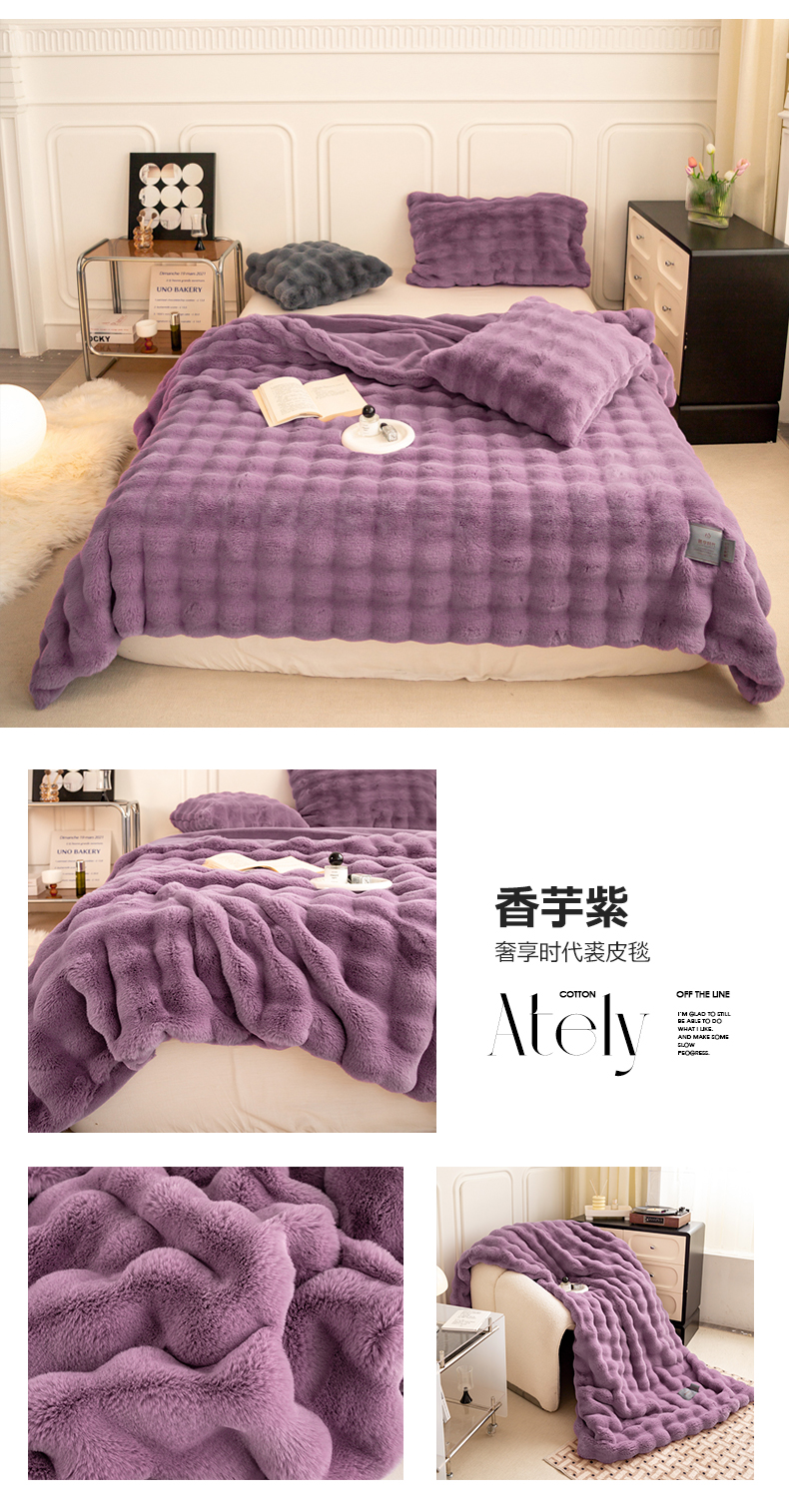 商品名称:尚品绵羊毛毯 2025新款仿裘皮皮草貂皮毛毯轻奢高端婚庆加厚双层拉舍尔毛毯 香芋紫