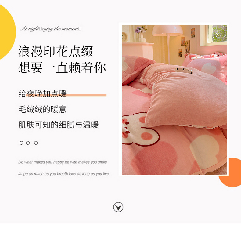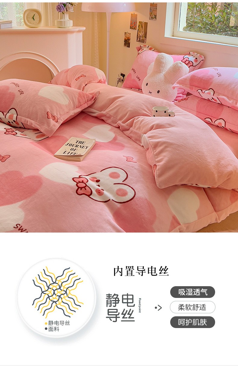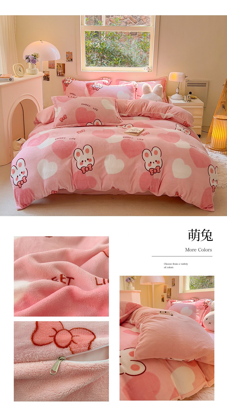 商品名称:慕尚 2025新款高克重加厚牛奶绒印花单被套-田园花卉系列 萌兔