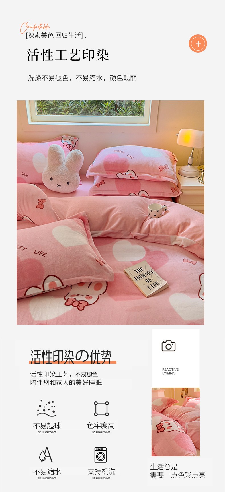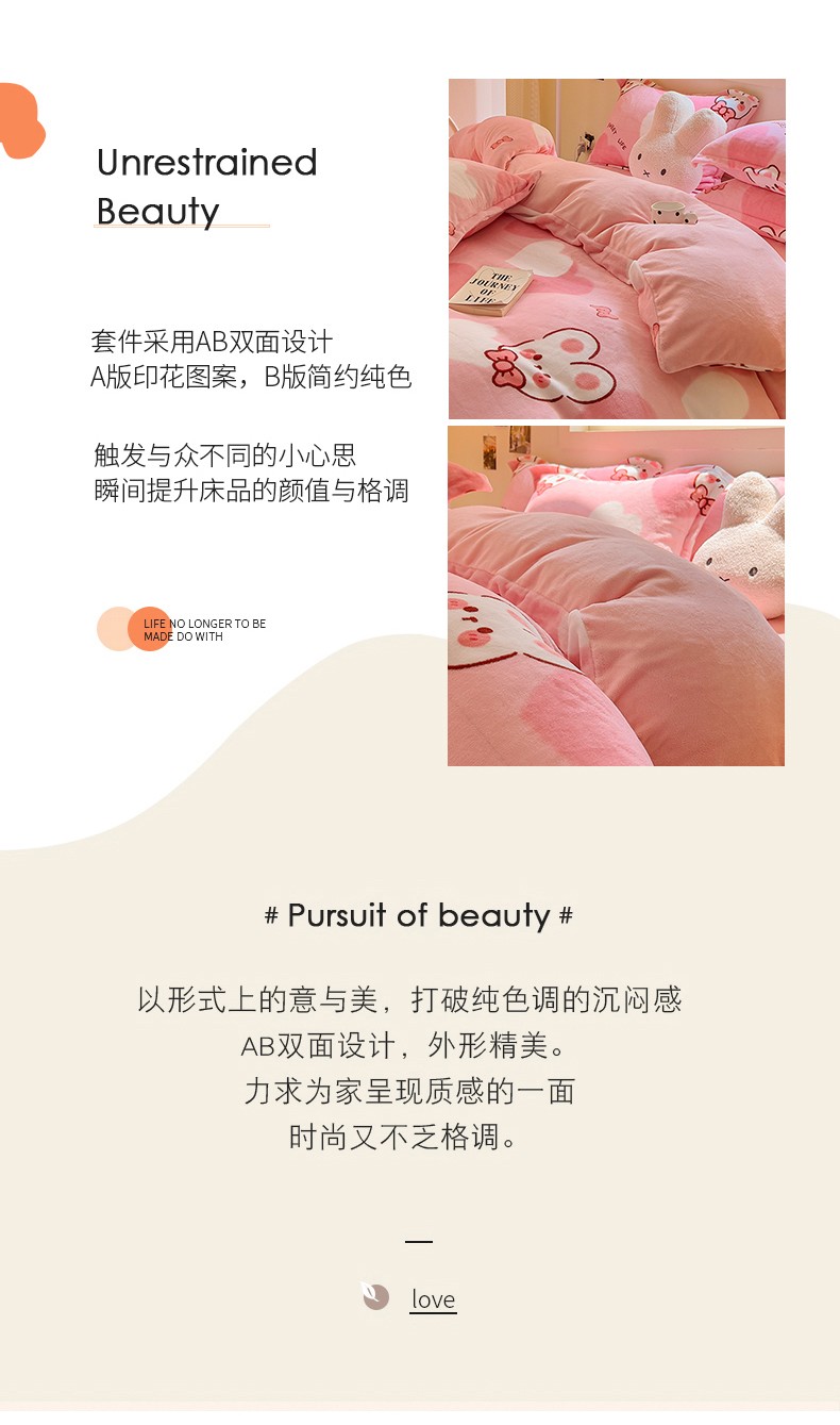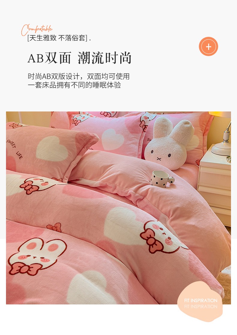 慕尚 2025新款高克重加厚牛奶绒印花单被套-田园花卉系列 萌兔