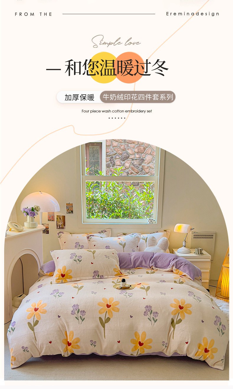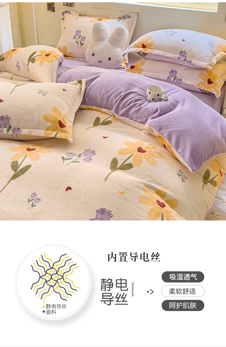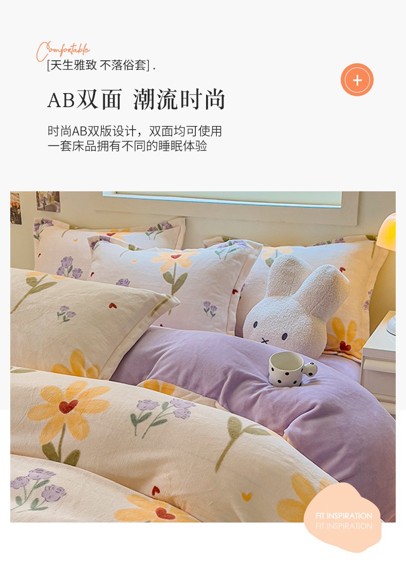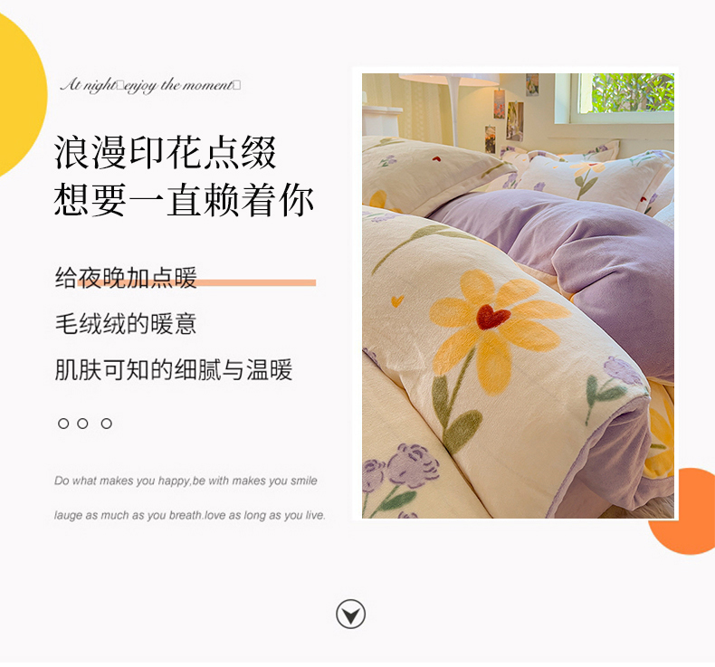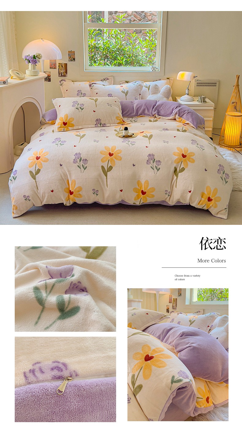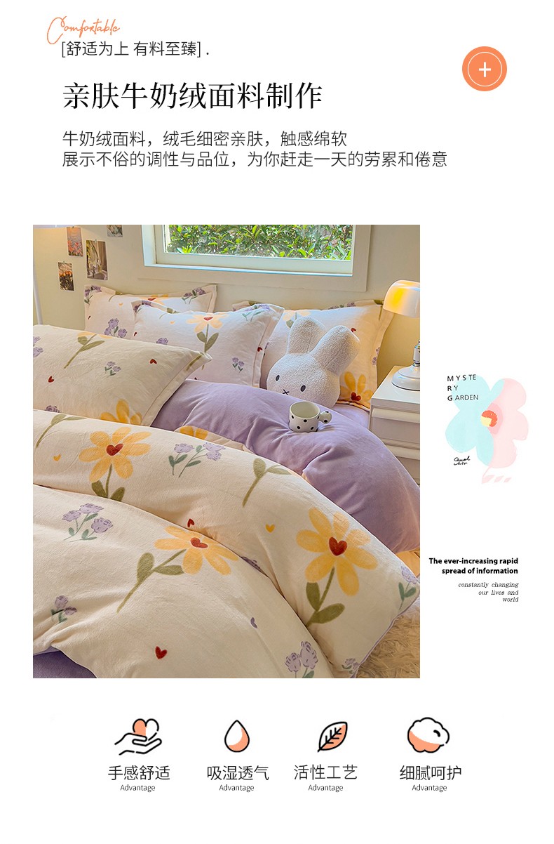 商品名称:慕尚 2025新款高克重加厚牛奶绒印花单被套-田园花卉系列 依恋