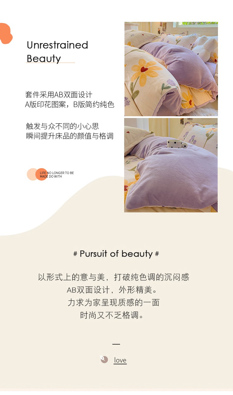慕尚 2025新款高克重加厚牛奶绒印花单被套-田园花卉系列 依恋