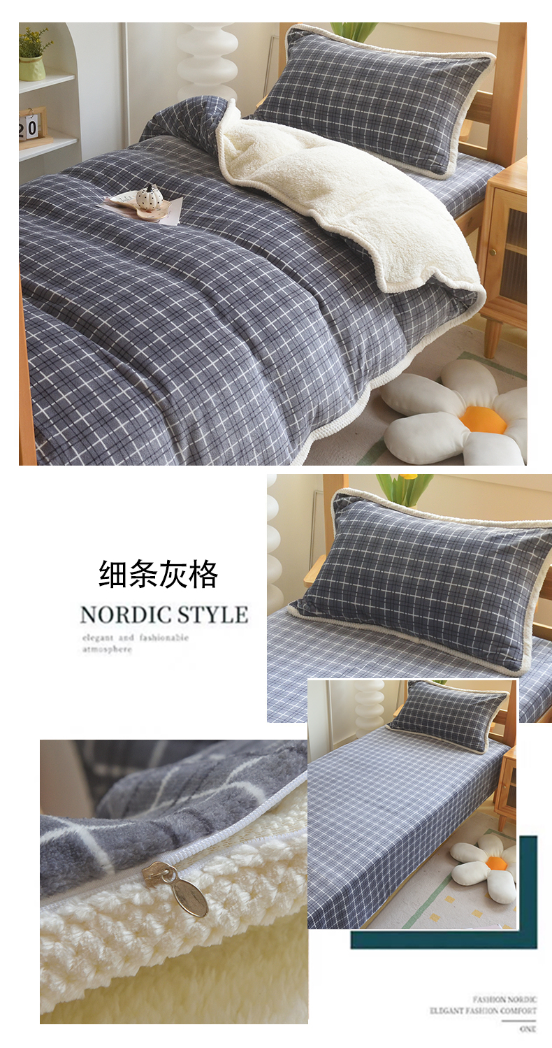 当前位置: 91家纺网 > 商品网购 > 床品套件 > 三件套 > 多乐家纺 2023年新款牛奶绒学生三件套 细条灰格