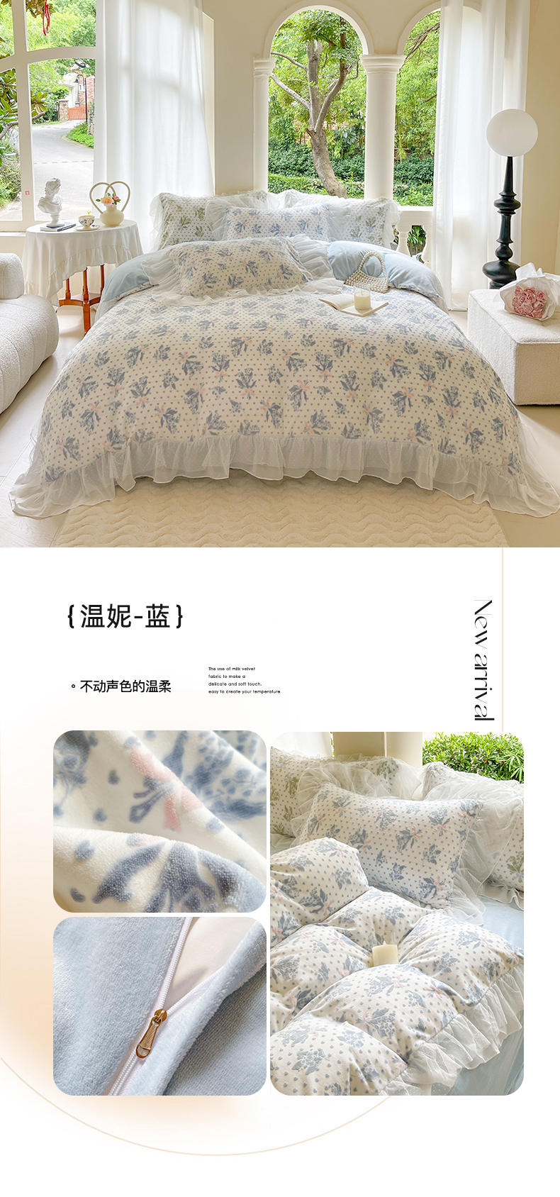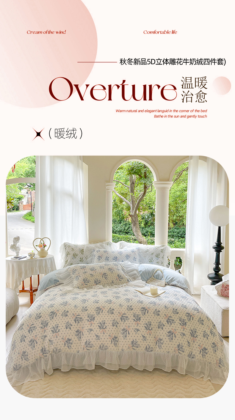 商品名称:玛奇朵2023新款秋冬新品5D立体雕花牛奶绒四件套 温妮-蓝