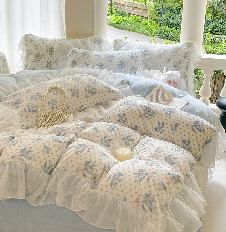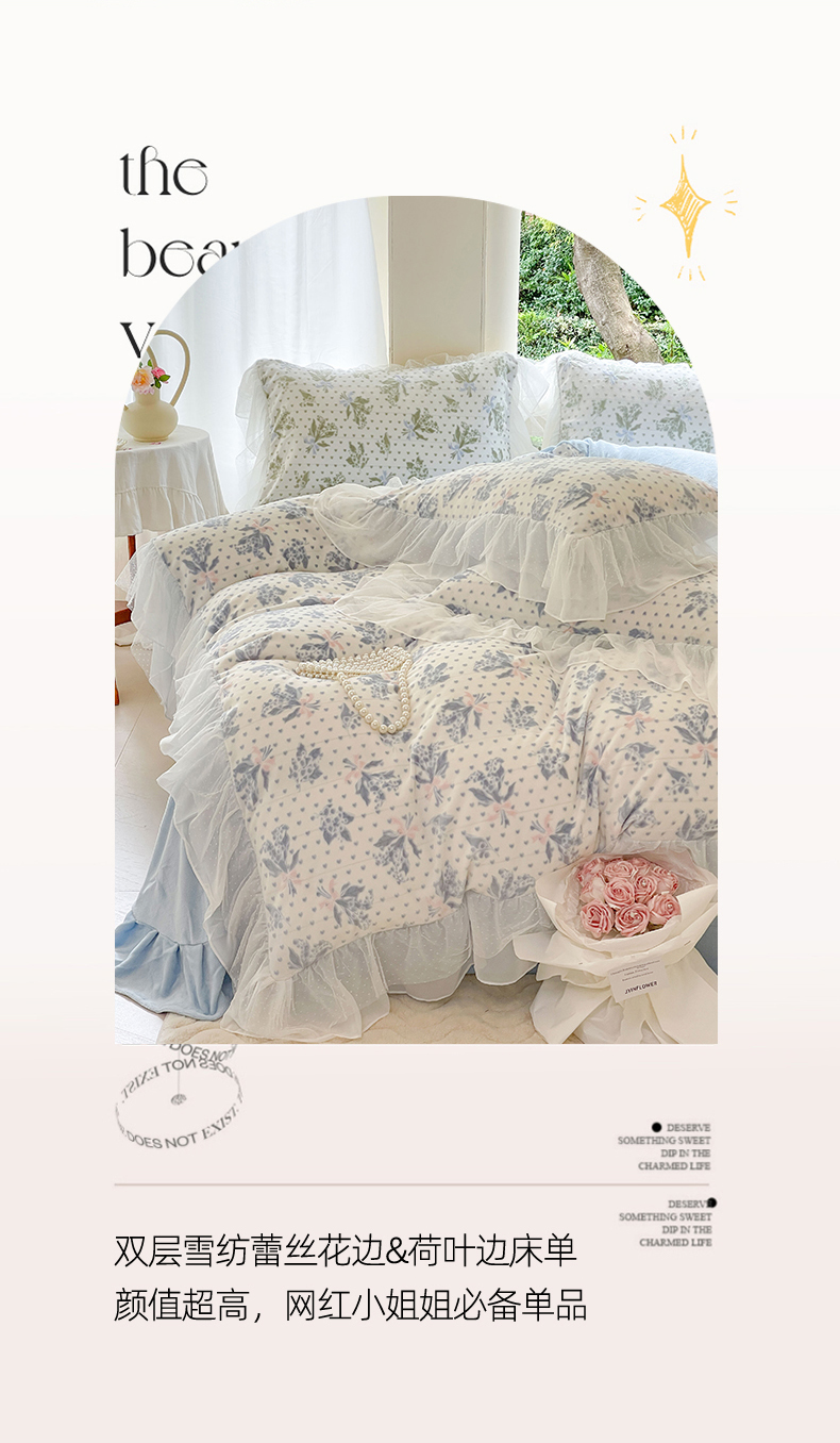 (总)玛奇朵 2025新款韩系少女全棉立体提花四件套-,青纱粉黛
