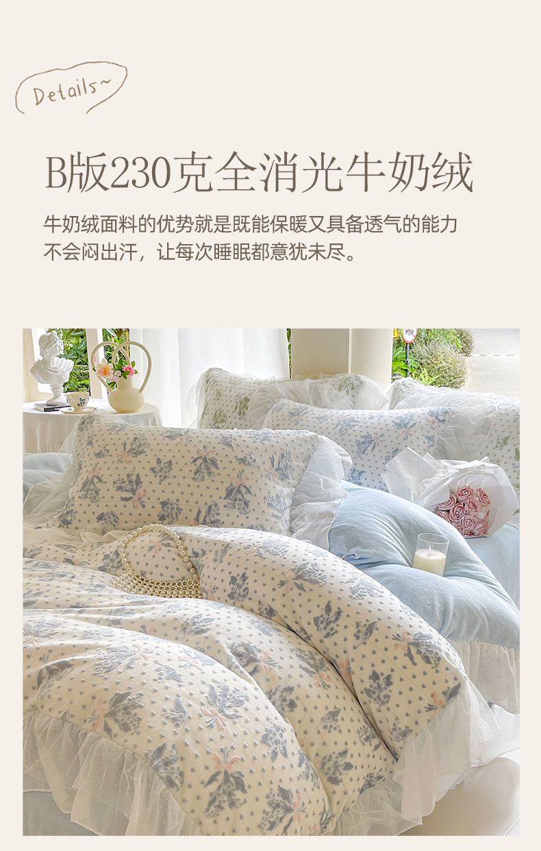 (总)玛奇朵 2025新款秋冬新品230克工艺立体雕花牛奶绒四件套 花满溪系列,花满溪-粉,花满溪-灰,花满溪-卡其