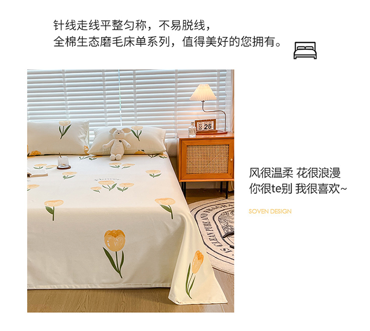 • 91家纺网 家纺一手货源 找家纺 芃成家纺 2023磨毛单床单 郁金香