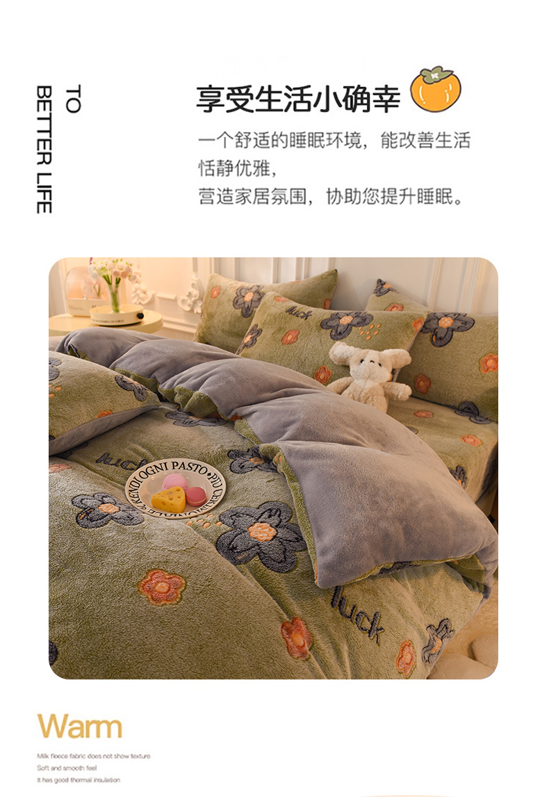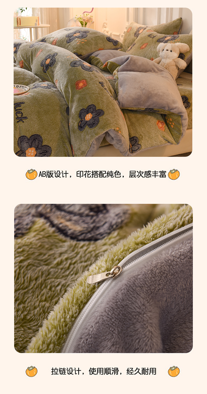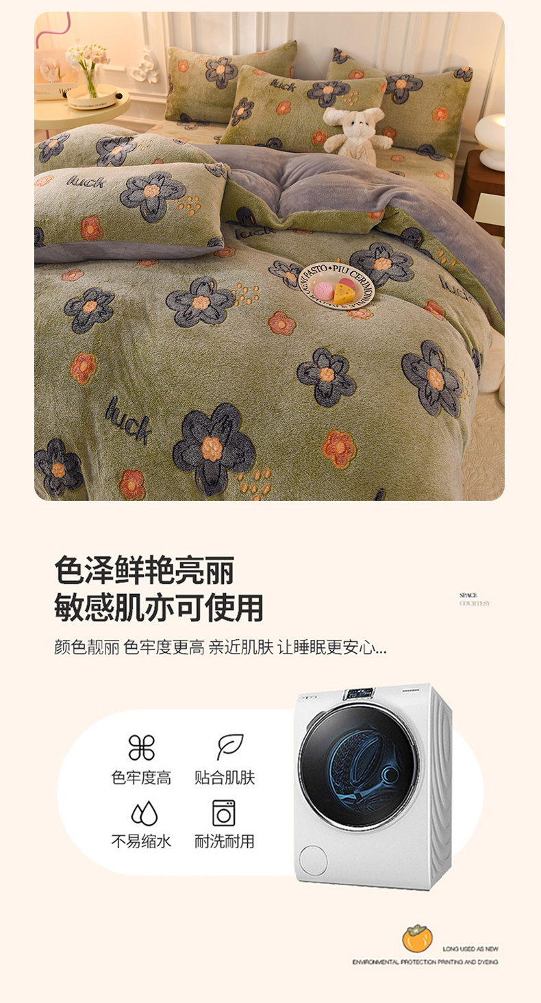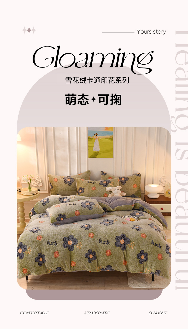 (总)慕梵家居 2024新款雪花绒四件套牛奶绒法莱绒套件,爱心兔,彩虹,草莓兔,繁花似锦,欢乐花朵,恐龙蓝,毛球,绅士熊,太空熊,泰迪熊,桃子少女,小波浪,小恐龙,小萝卜,小南瓜,心想事橙,星星熊,樱桃女孩,枝繁叶茂,字母熊
