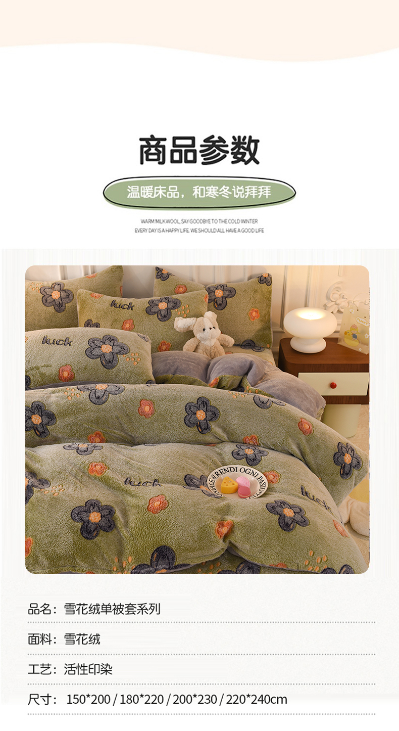 商品名称:慕梵 2023新款雪花绒单品被套 幸福花绿